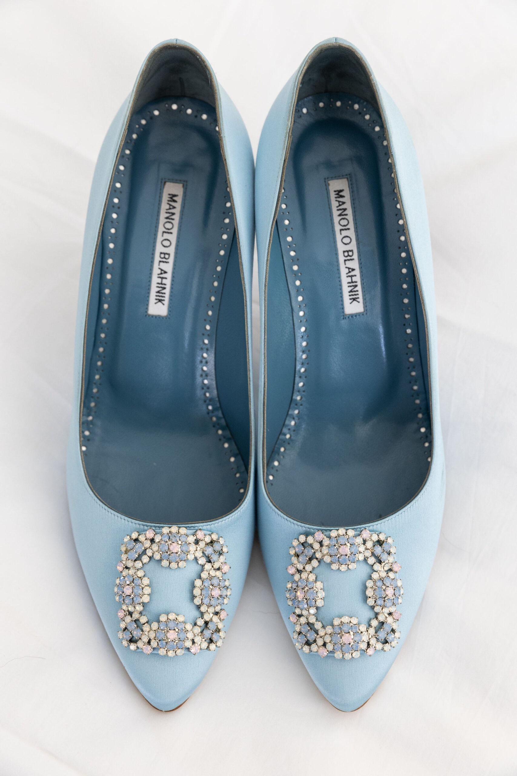 Hanna wore a necklace made from her late grandmother’s engagement ring, “something old.” Her “something new” was a pair of earrings given to her by her father for the special day. Her “something borrowed” was a diamond bracelet that belonged to Will’s great-grandmother. And her “something blue” was her shoes. Her wedding day gown was by Monique Lhuillier, a silk, strapless bodice gown with a trumpeted skirt.