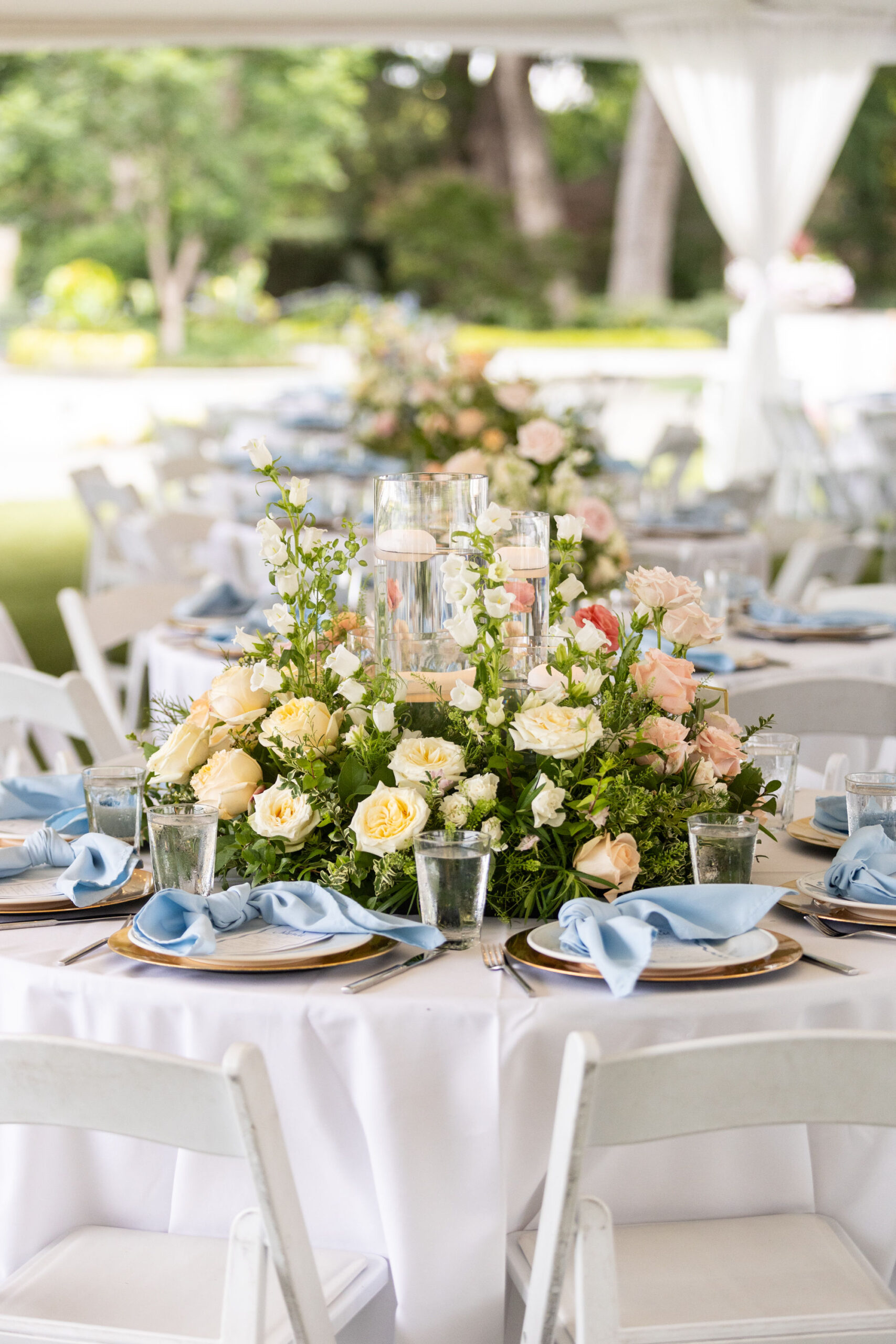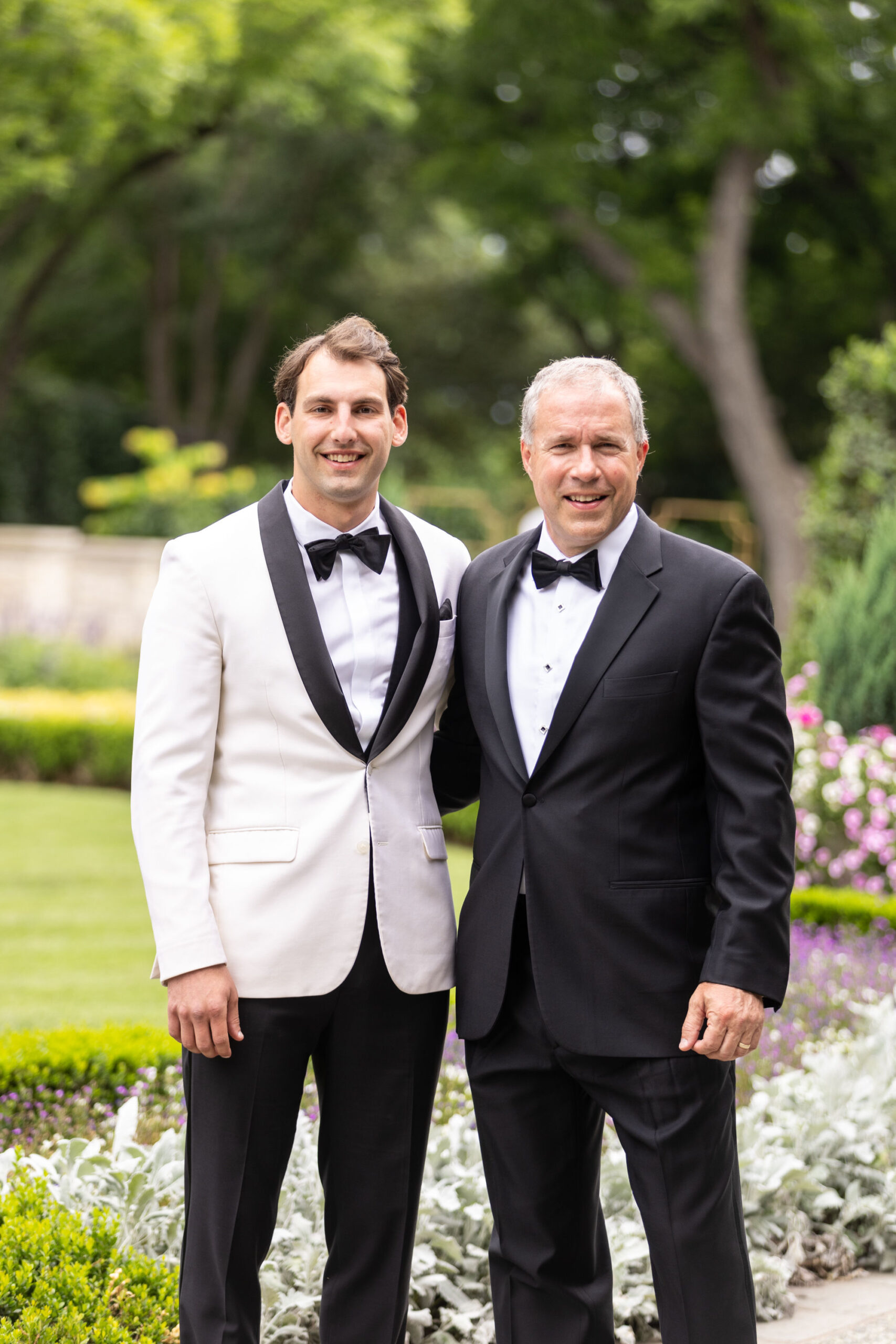 Kelly and Nick had their wedding at the Dallas Arboretum, with the ceremony in the Lay Family Garden and the reception in the Camp House. It was a nod to Kelly’s love for nature, with flowers filling the airy and light environment. She grew up going to the Arboretum with her mom and having picnics on the lawn.