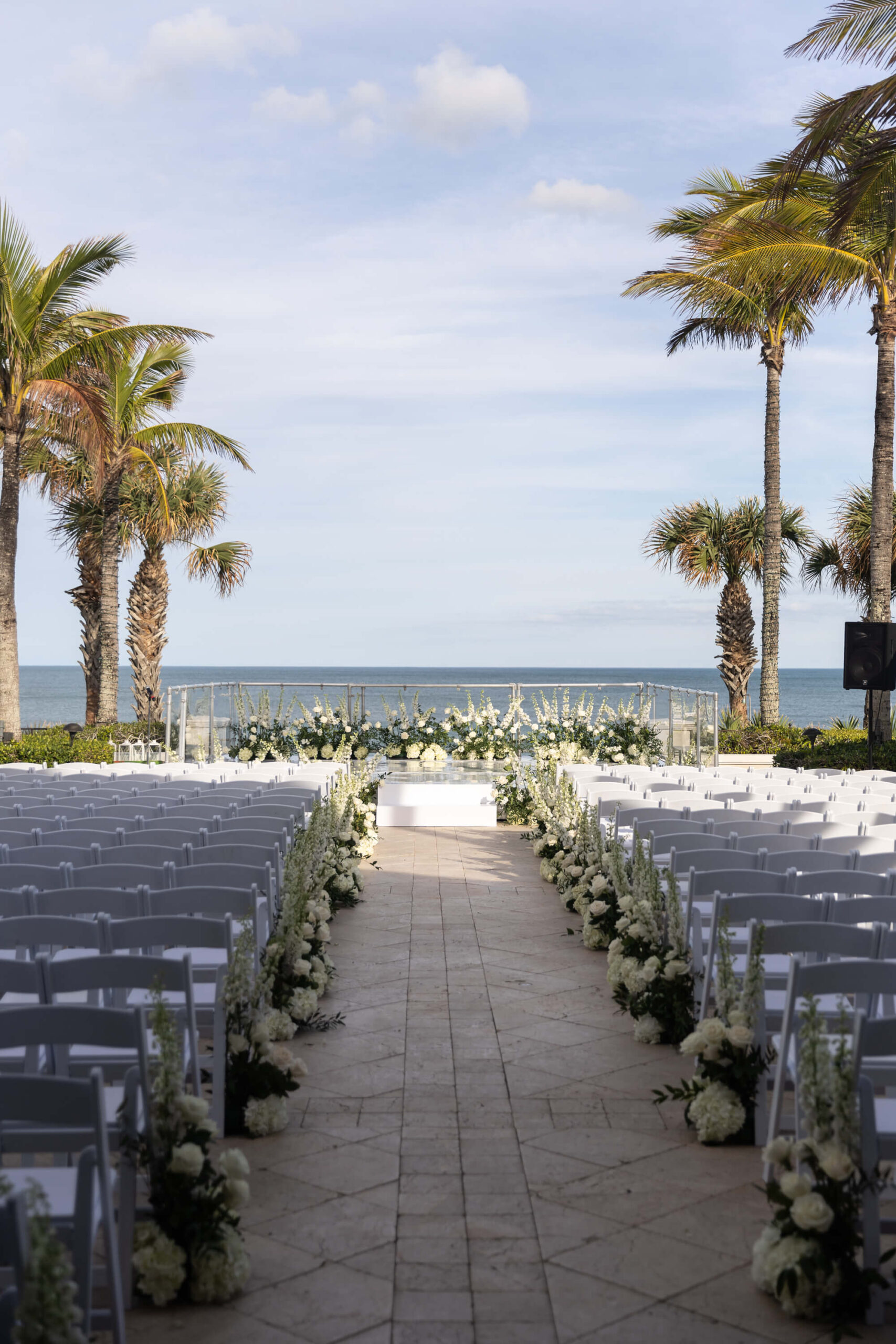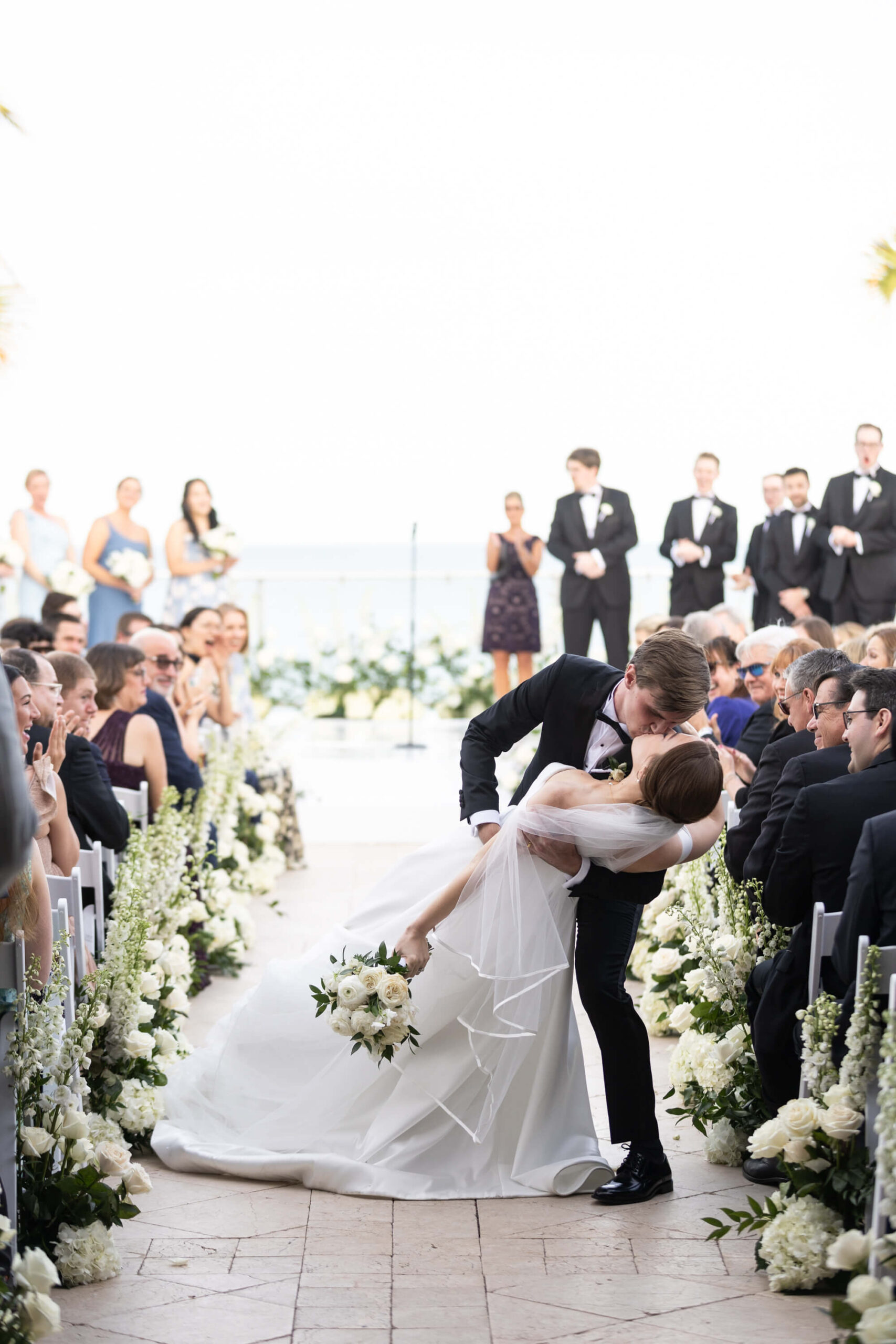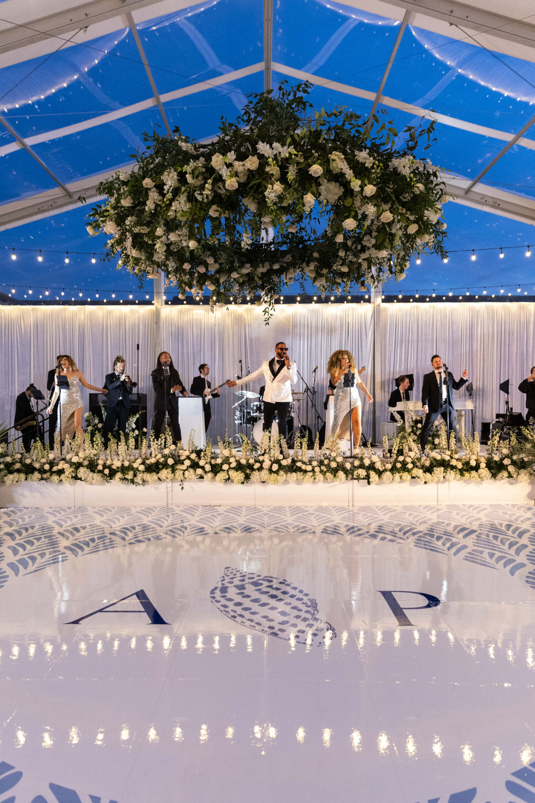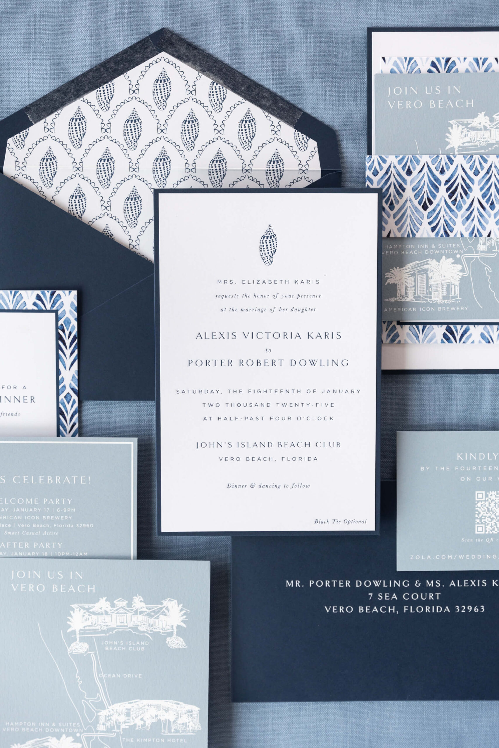 For Alexis and Porter, Vero Beach wasn’t just a picturesque wedding backdrop, it was a place woven into the fabric of their lives. Porter’s family had spent years vacationing there, and with the Atlantic coastline stretching behind them, Johns Island Club became the perfect setting to gather loved ones for an elegant January wedding. Blue accents and all-white florals filled the clear-top tent, creating the sensation of dancing beneath the stars, while the ocean breeze and cloudless sky made for a dreamlike day.
