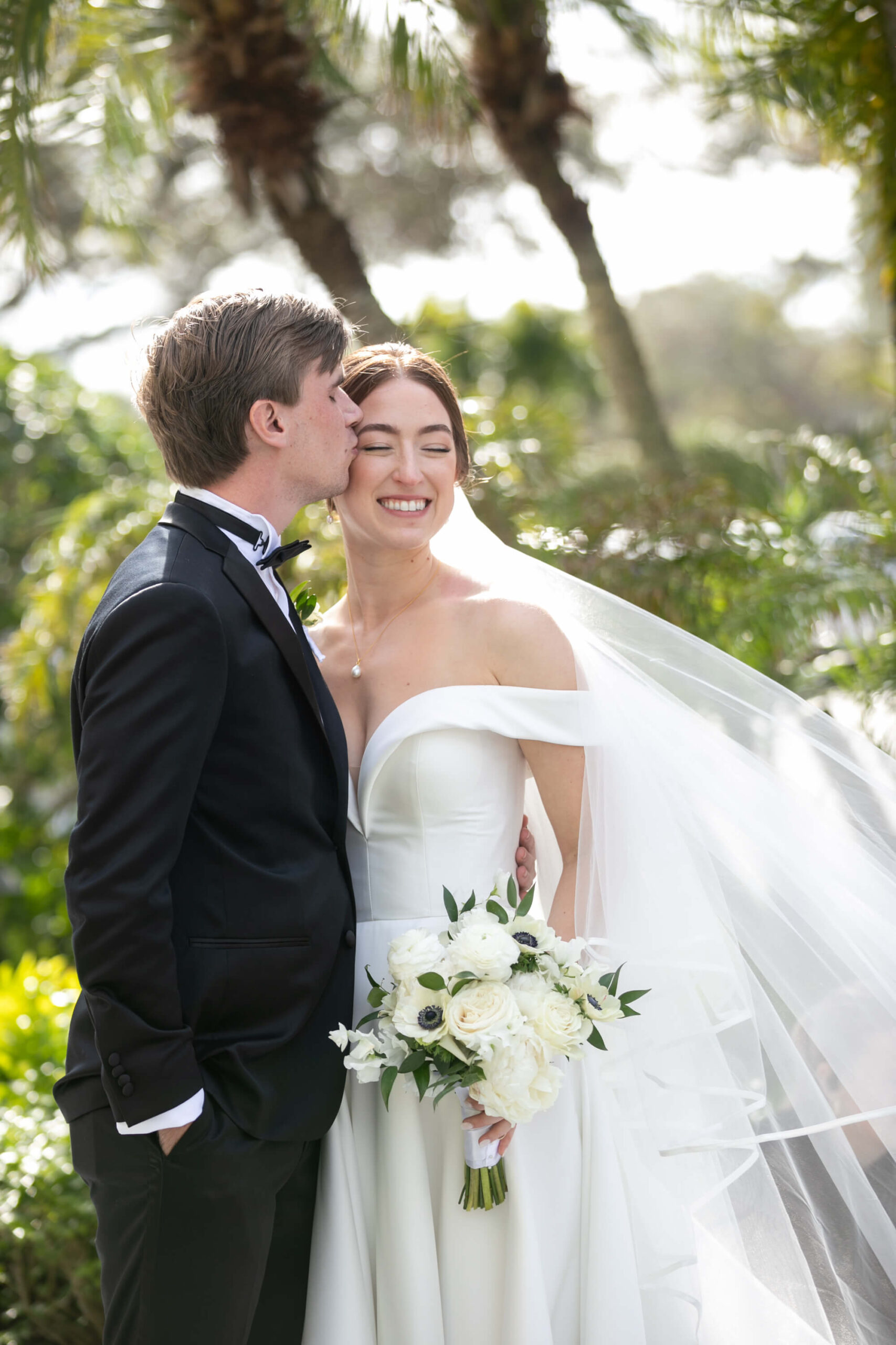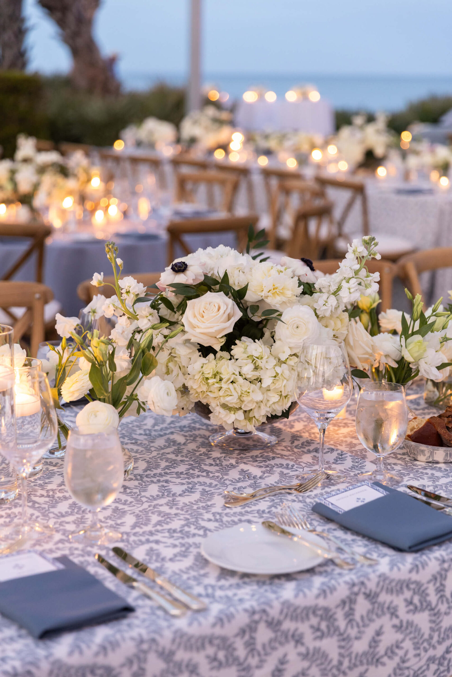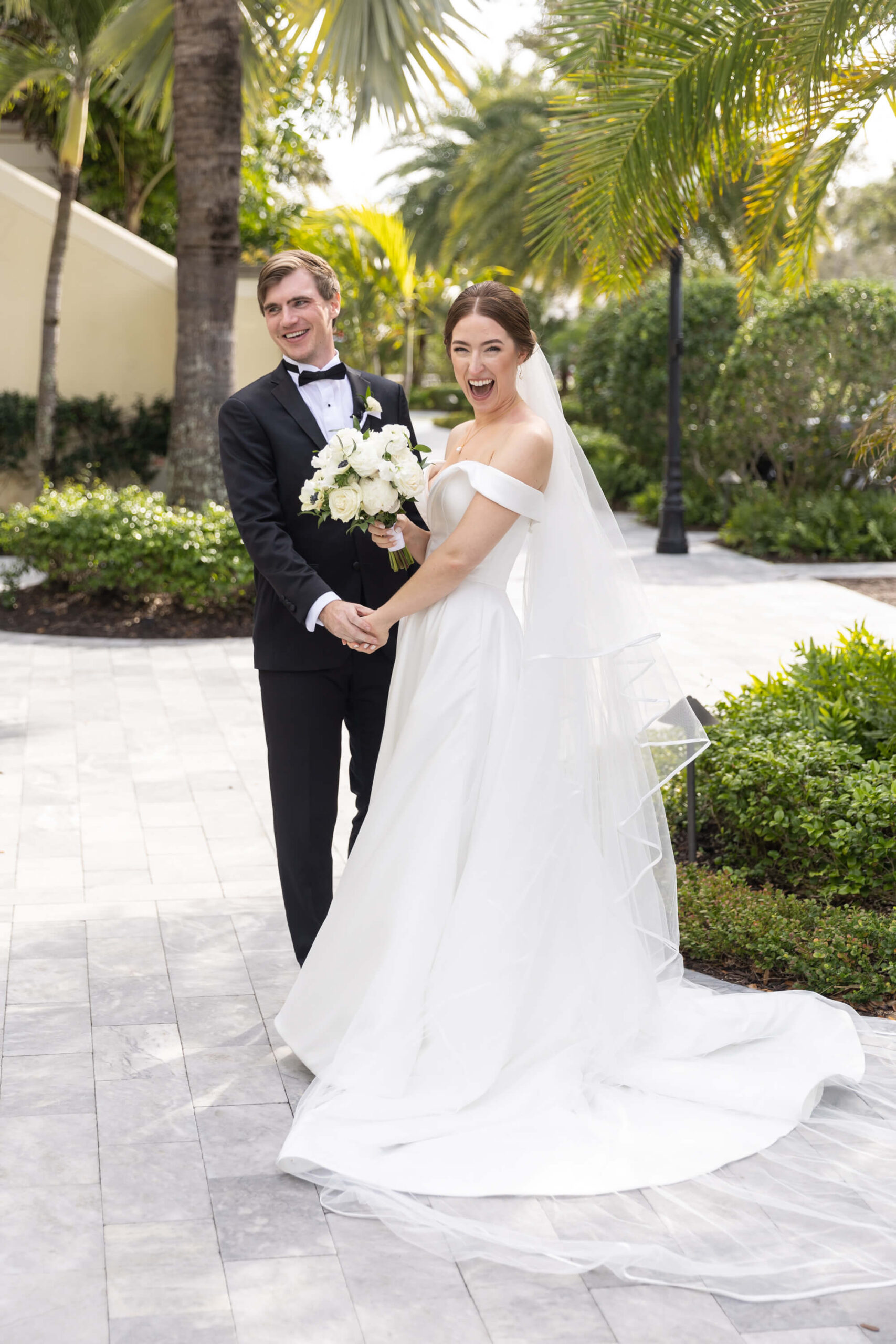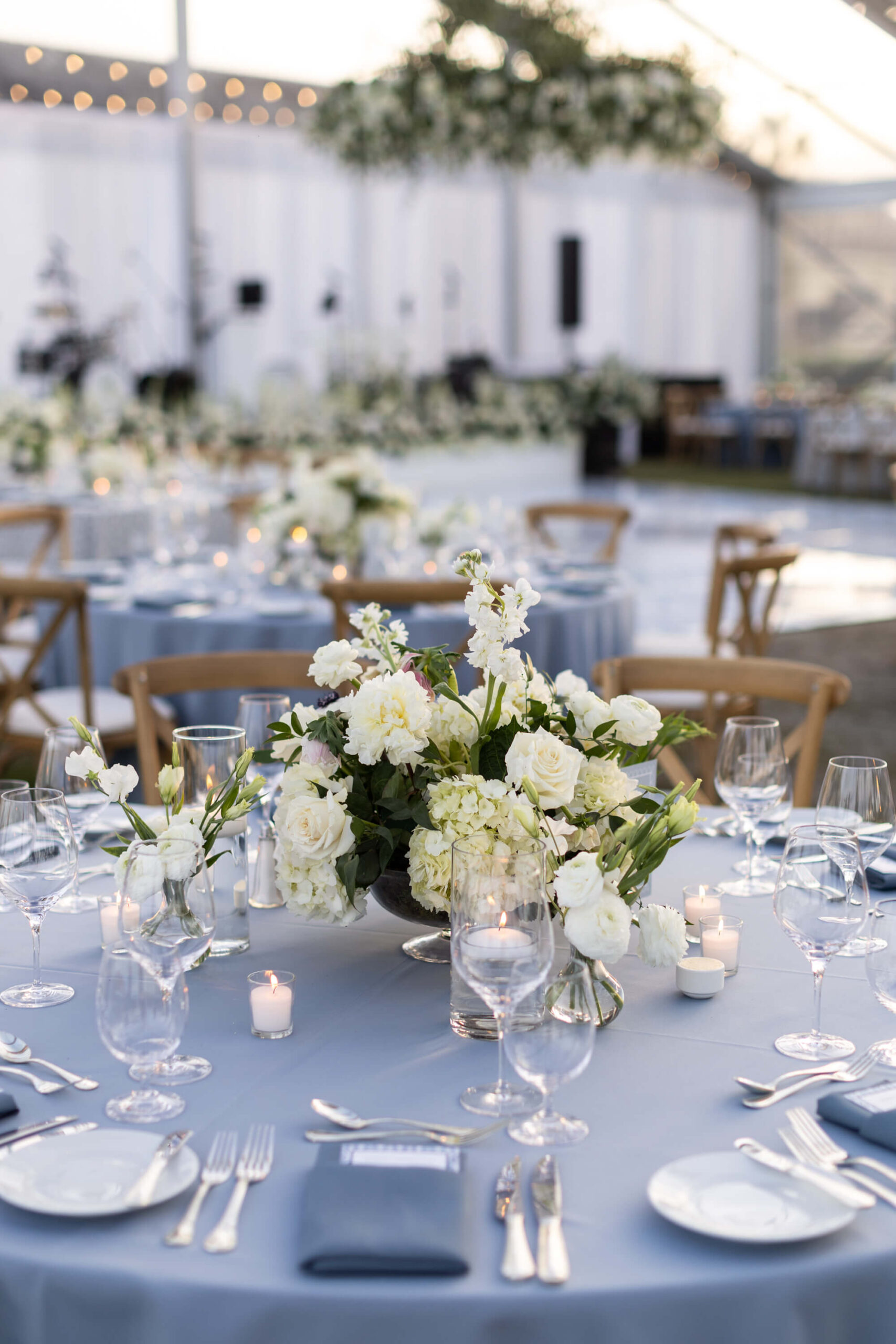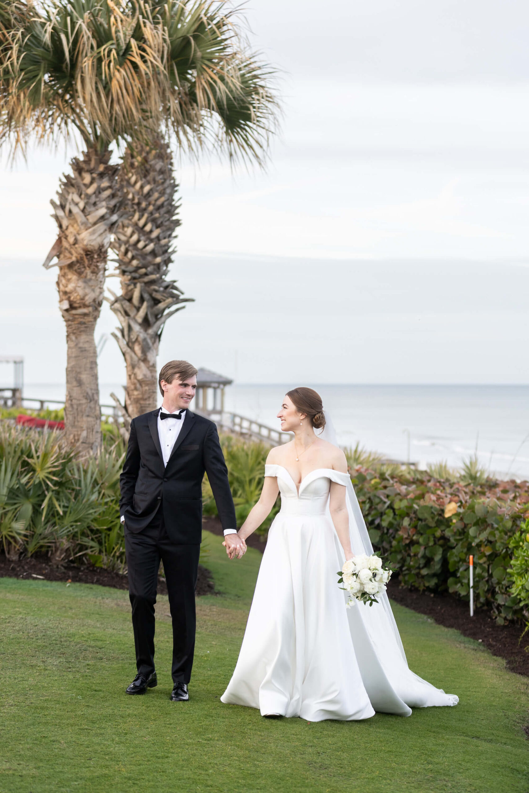 For Alexis and Porter, Vero Beach wasn’t just a picturesque wedding backdrop, it was a place woven into the fabric of their lives. Porter’s family had spent years vacationing there, and with the Atlantic coastline stretching behind them, Johns Island Club became the perfect setting to gather loved ones for an elegant January wedding. Blue accents and all-white florals filled the clear-top tent, creating the sensation of dancing beneath the stars, while the ocean breeze and cloudless sky made for a dreamlike day.