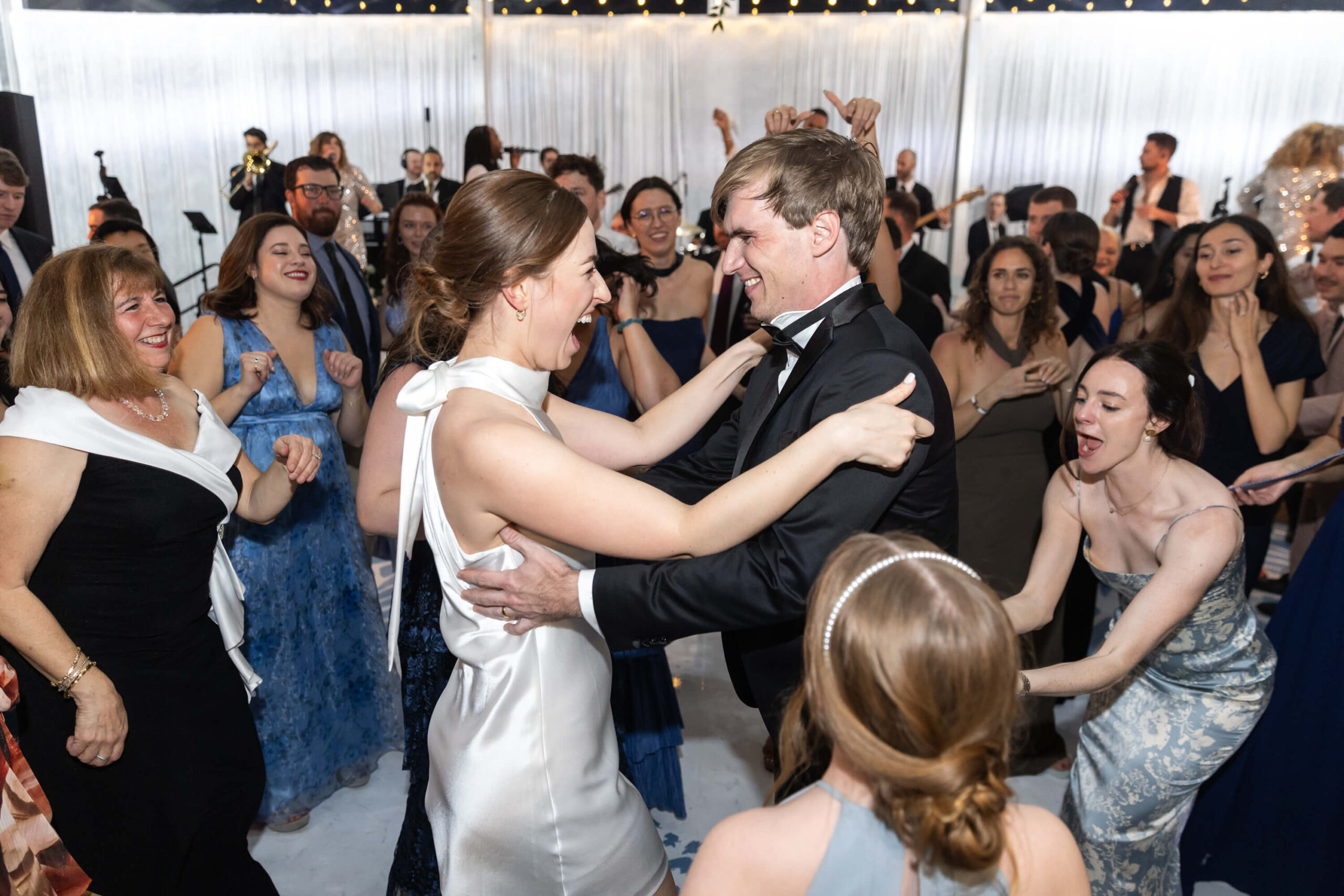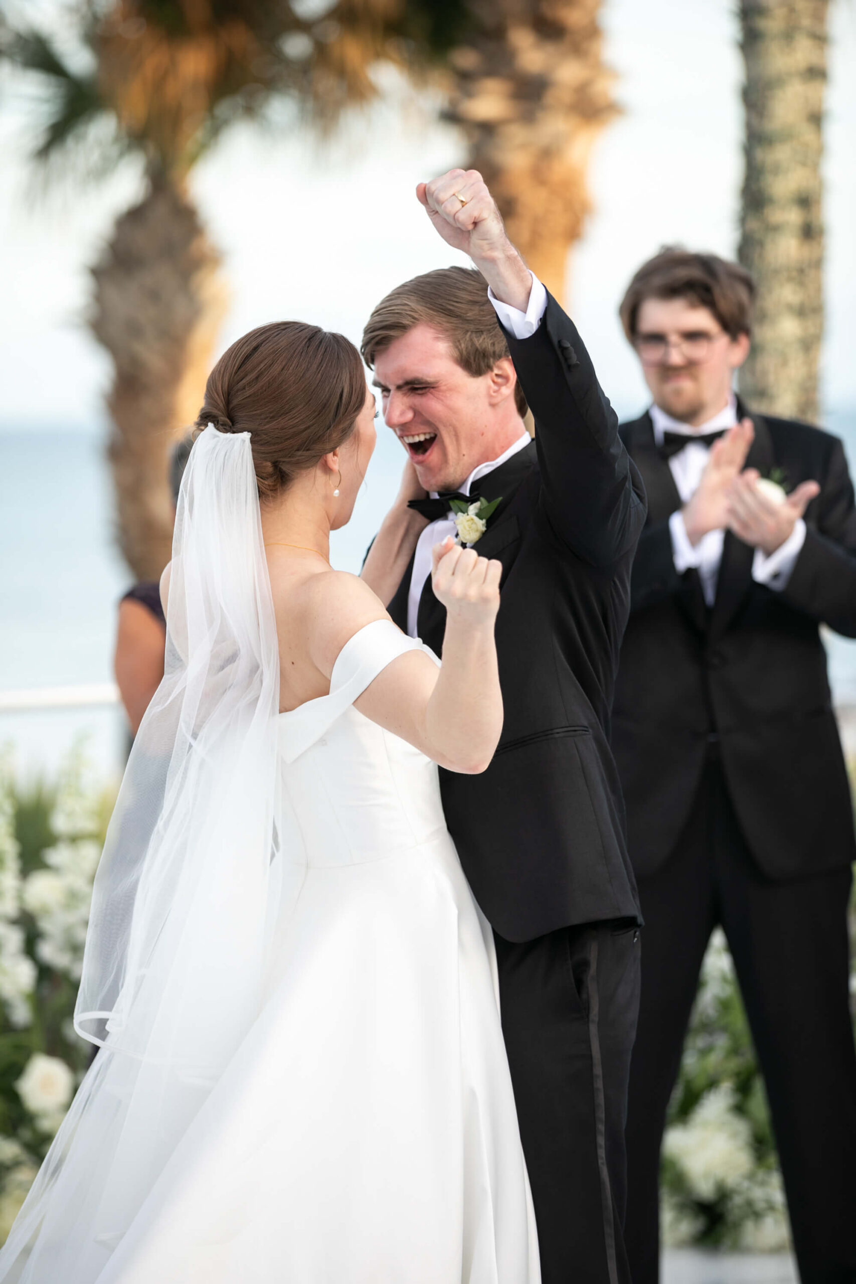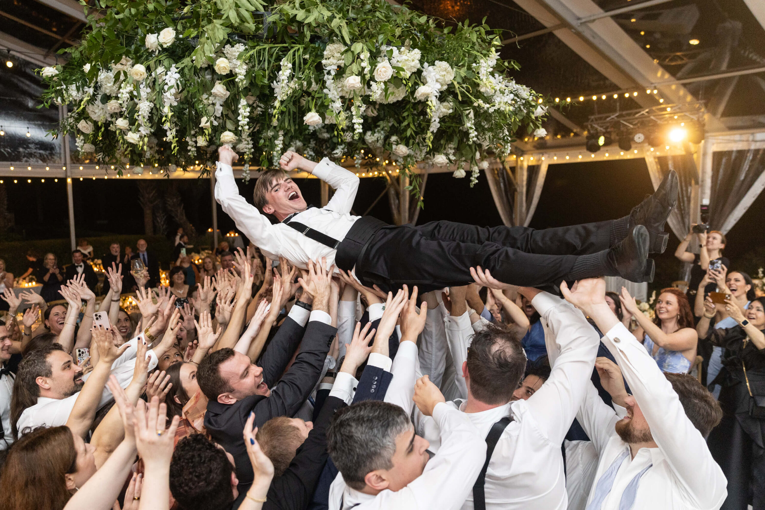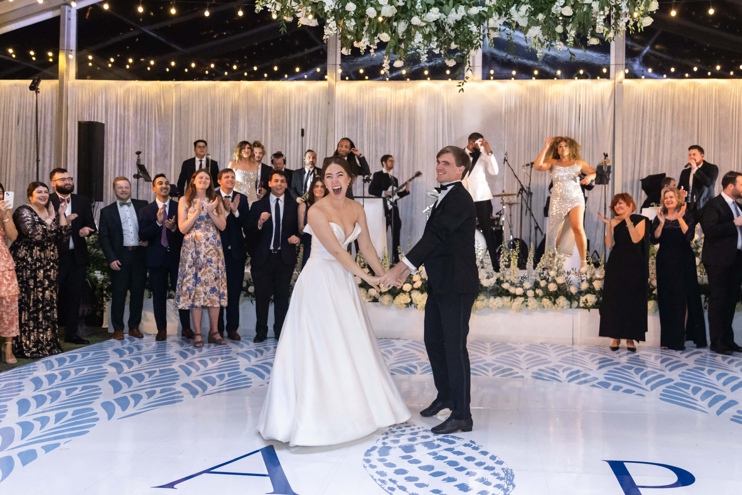 After practicing dance lessons for 8 months, Alexis and Porter’s first dance to “The Way You Look Tonight” segued to a lively swing to “Signed, Sealed, Delivered,” the couple’s choreography set the tone for an evening of nonstop energy. The band kept guests on their feet all night: even sparking an unforgettable moment when Alexis and Porter were lifted above the crowd, surfing to the beat of “Mr. Brightside.” With perfect weather, heartfelt tributes, and a celebration that blended coastal charm with unfiltered joy, their wedding was a wonderful reflection of love, family, and the magic of being surrounded by those who matter most in their new hometown.