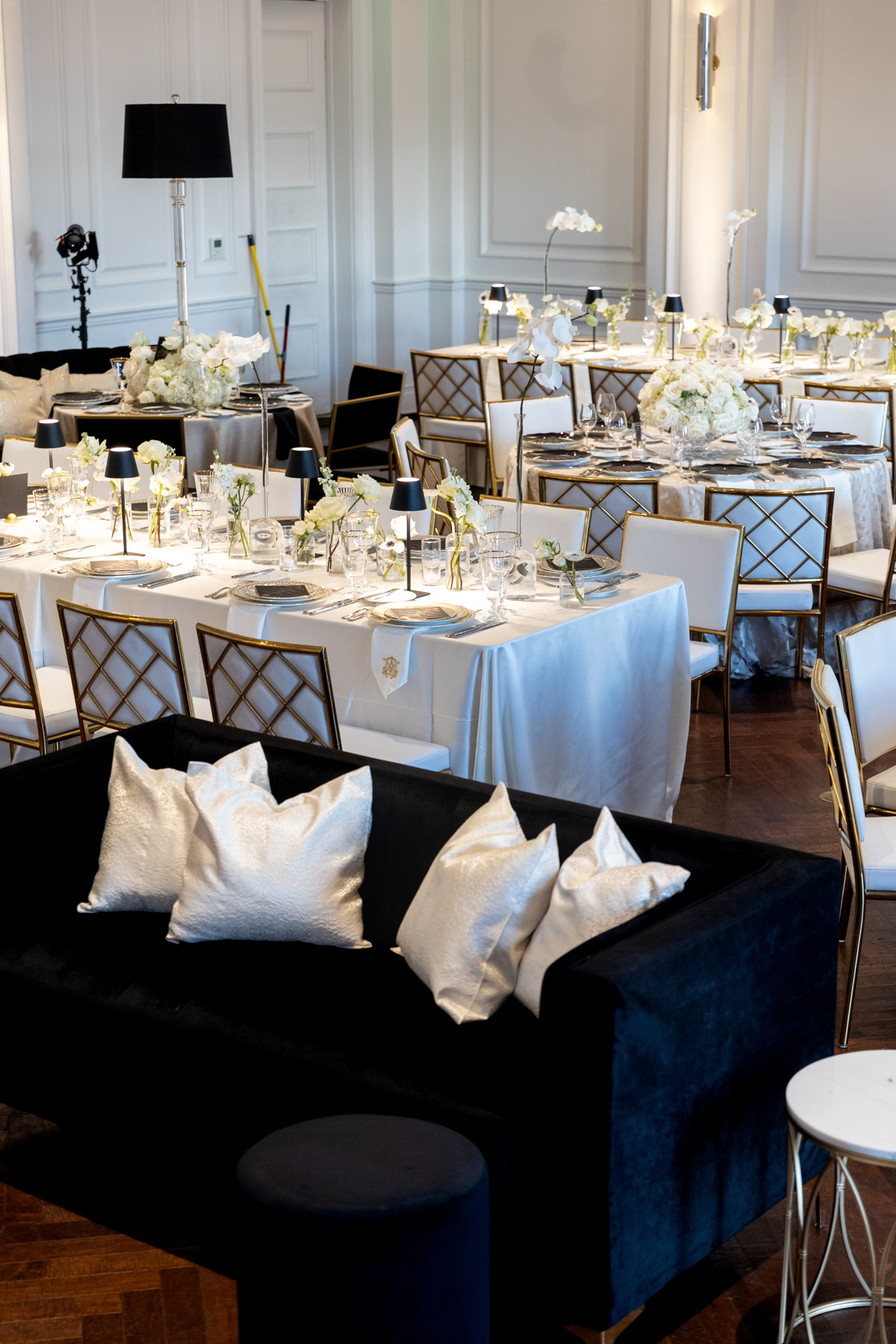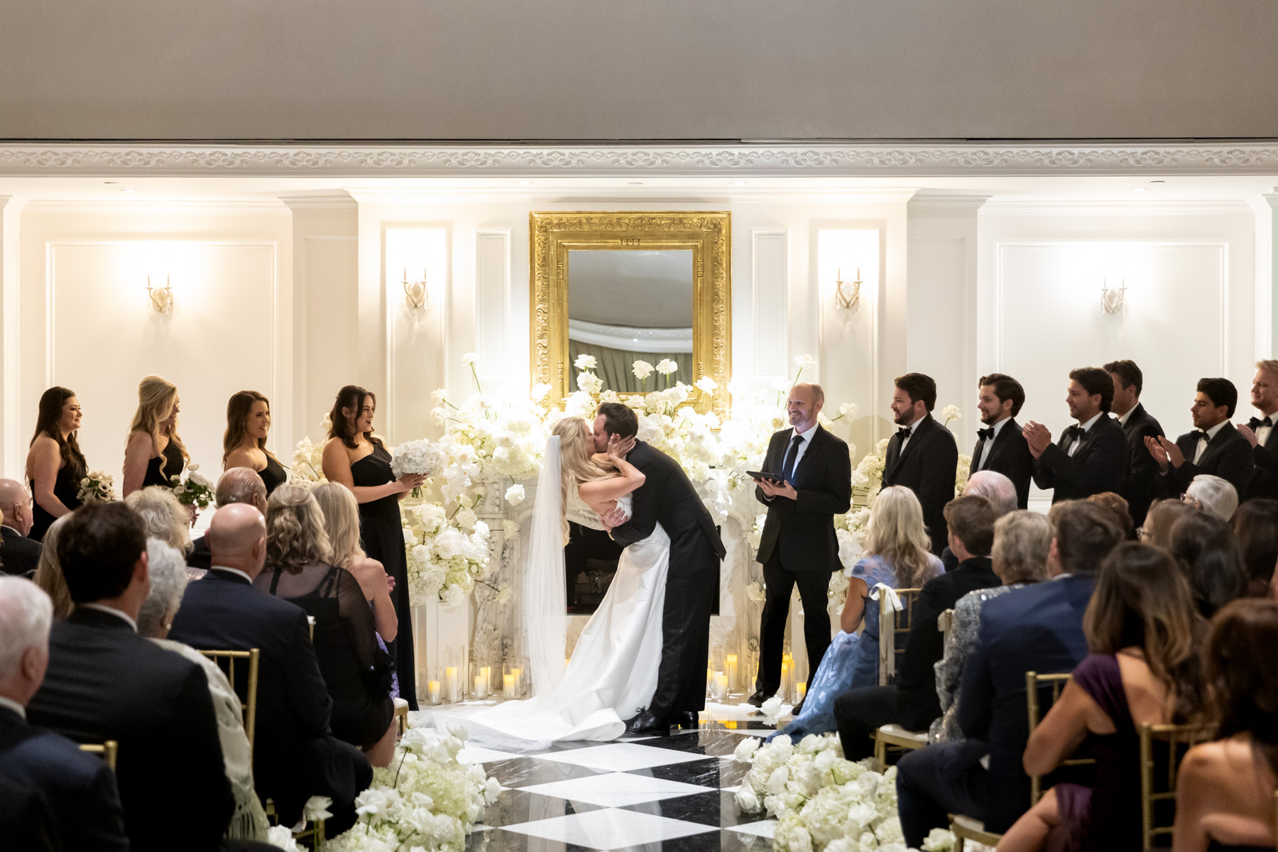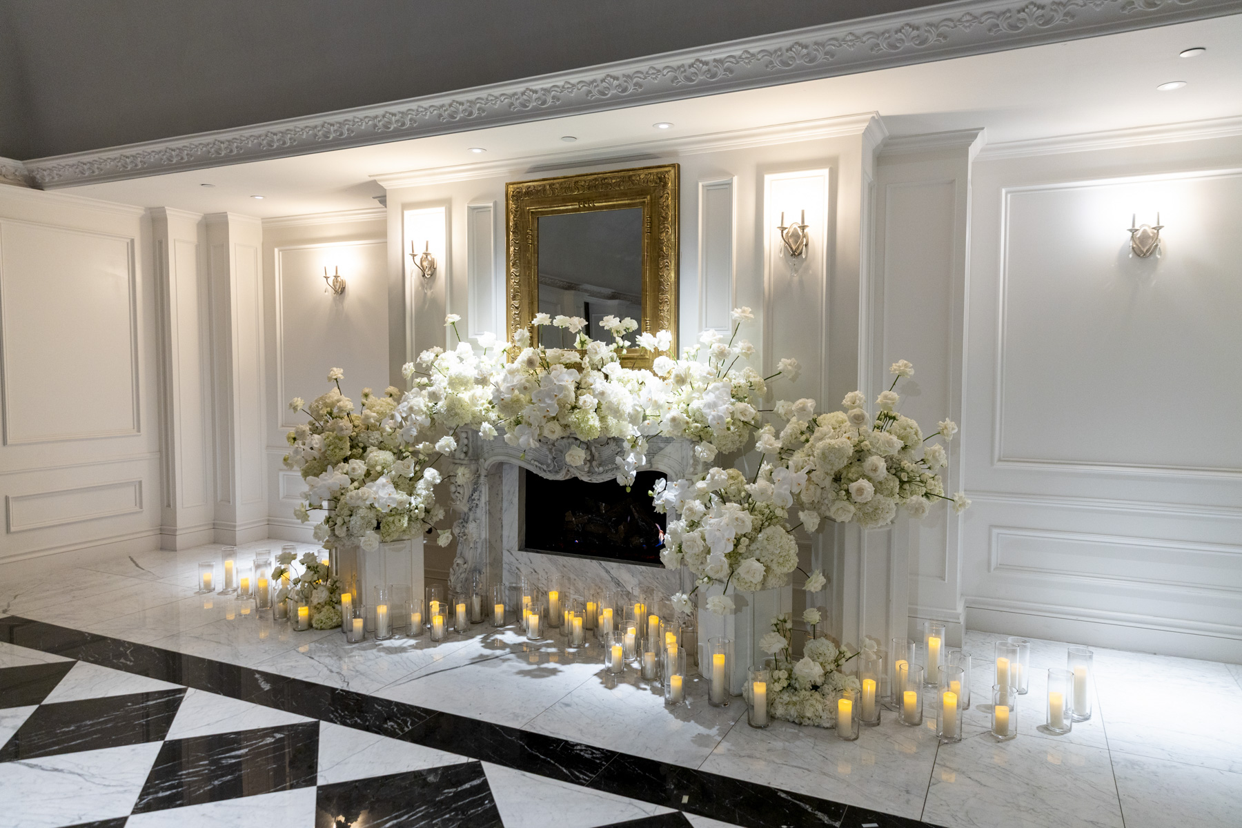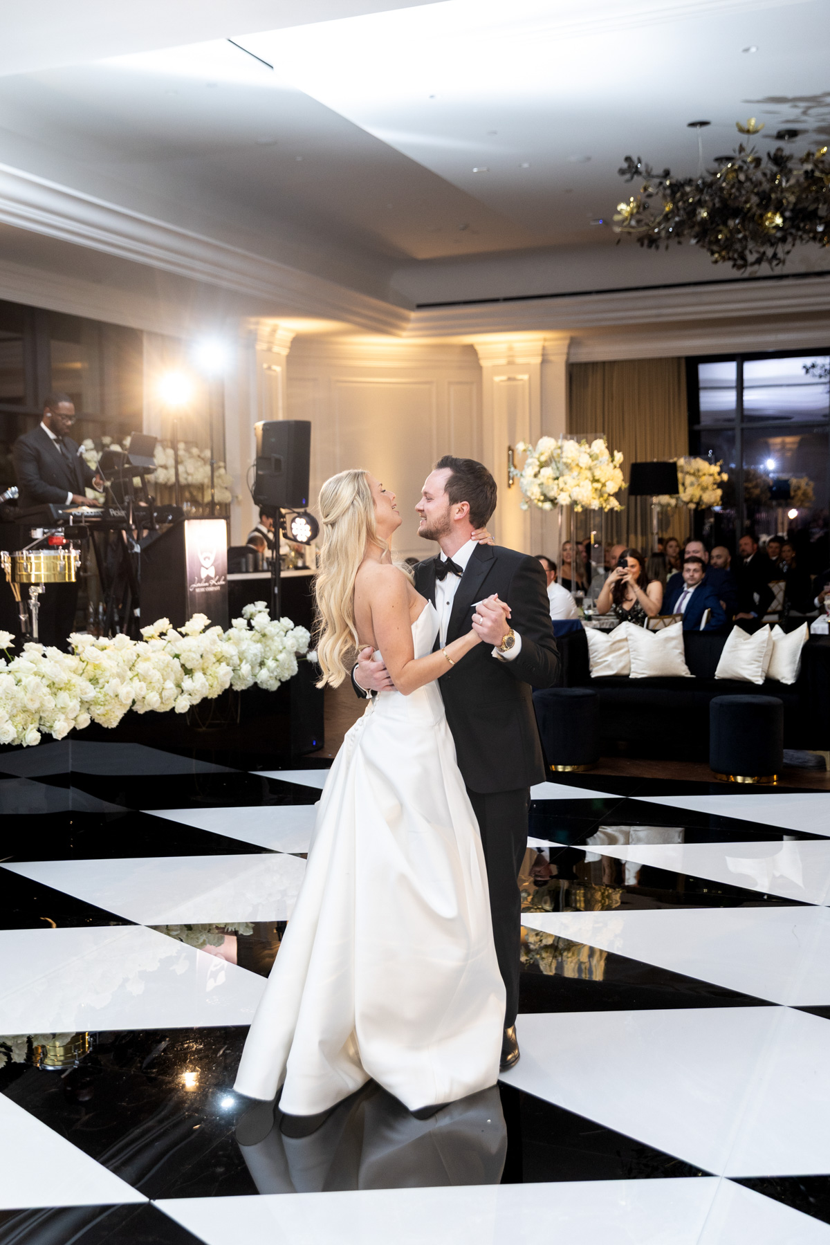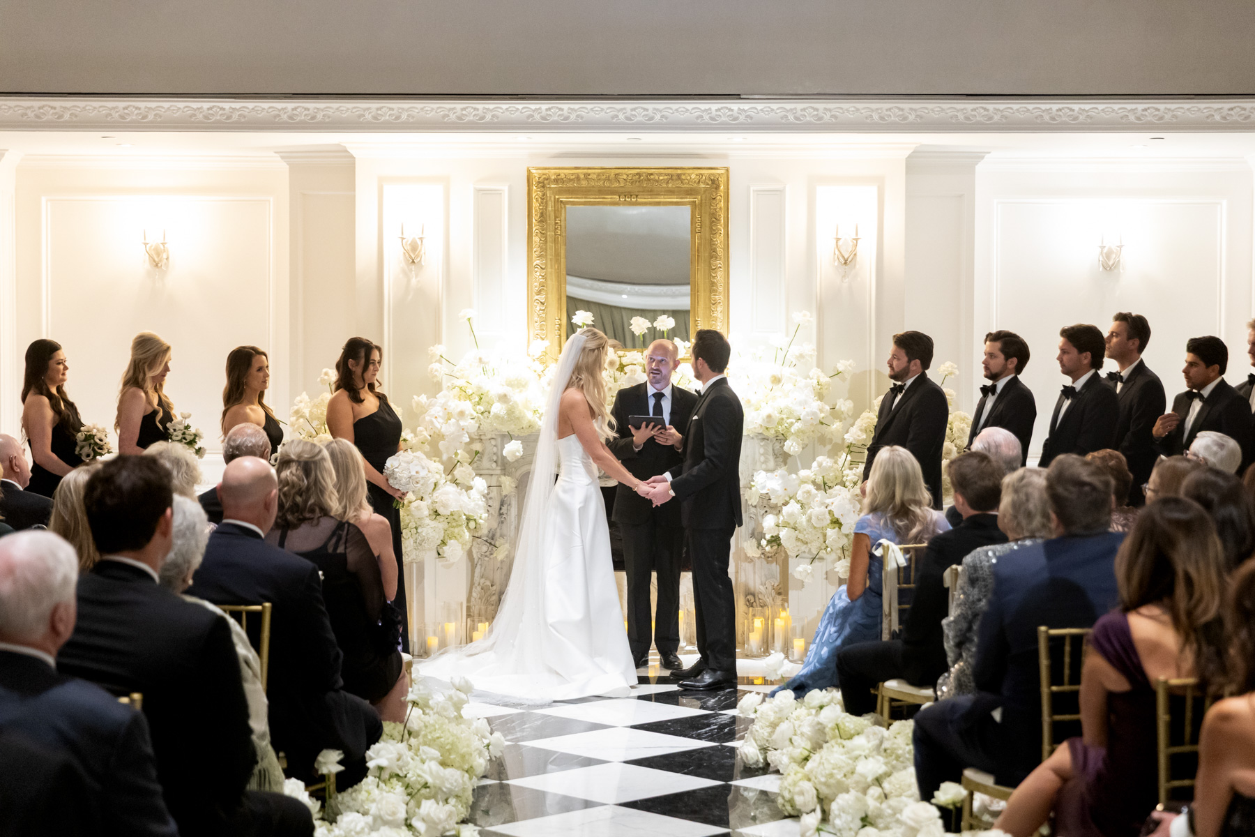 Working closely with her mom and planner, the design came together around a classic black-and-white palette with abundant candles and florals, creating a warm and romantic atmosphere perfect for a November wedding. “I was really excited to see everything come together,” Alexis said. “Our vision was romantic and elegant with lots of candles and flowers.”