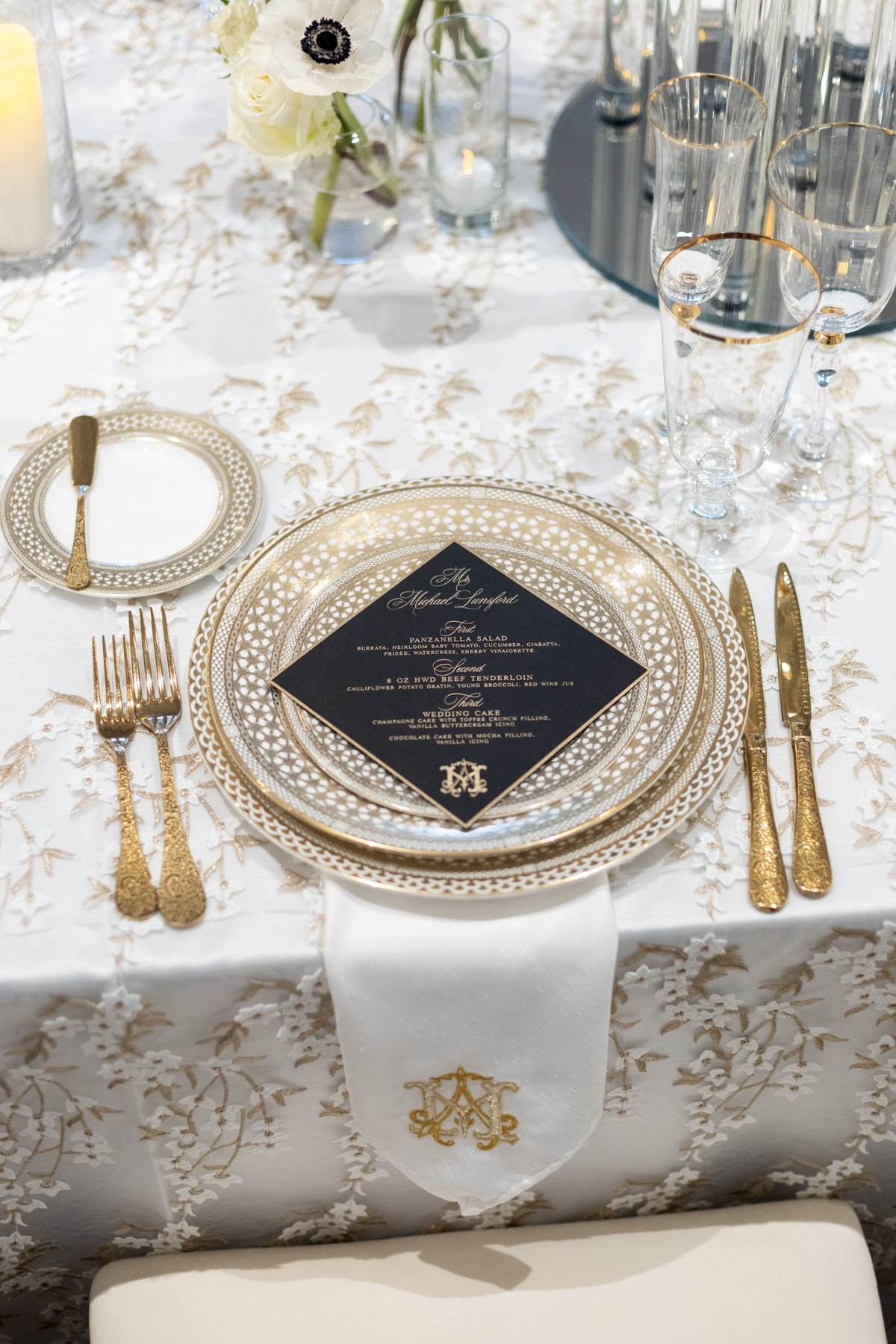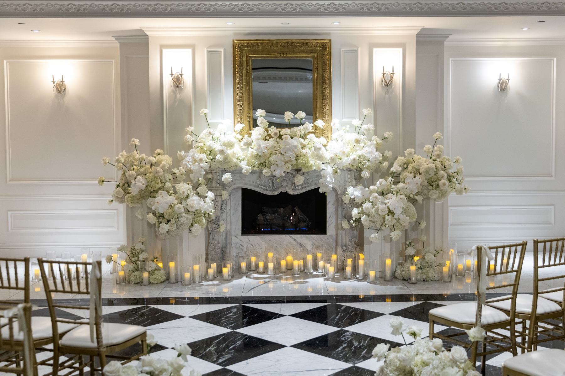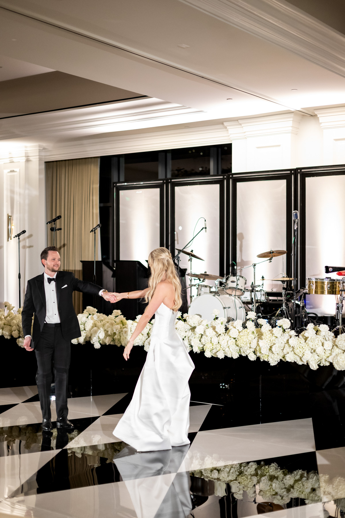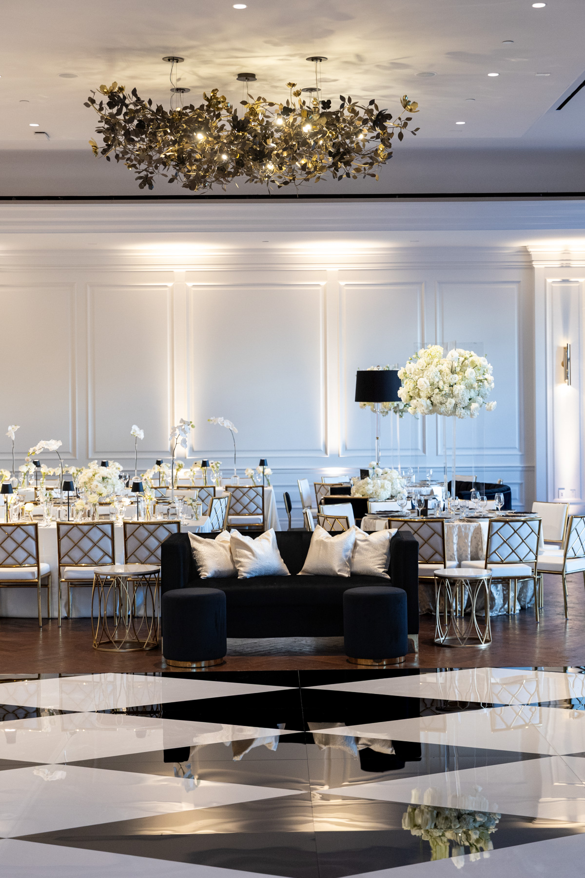 Working closely with her mom and planner, the design came together around a classic black-and-white palette with abundant candles and florals, creating a warm and romantic atmosphere perfect for a November wedding. “I was really excited to see everything come together,” Alexis said. “Our vision was romantic and elegant with lots of candles and flowers.”