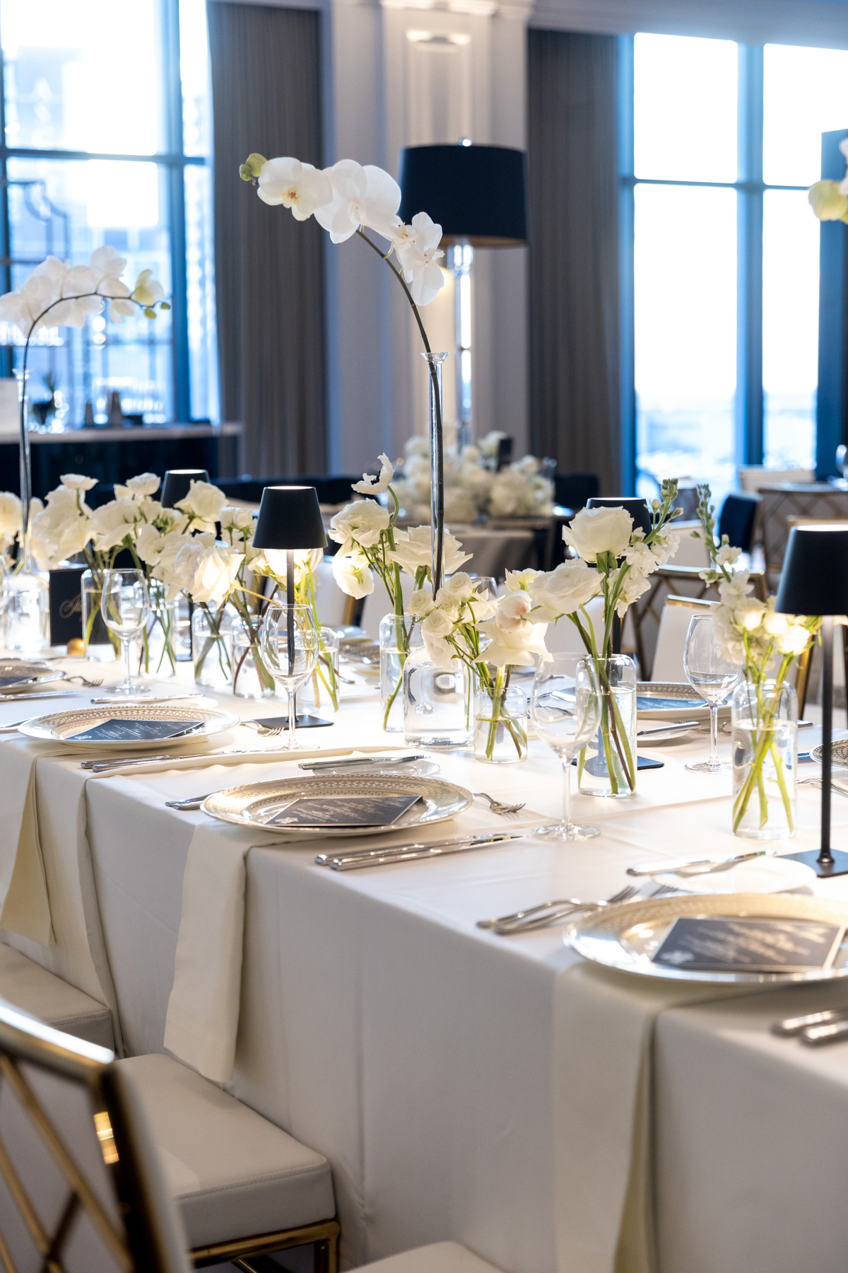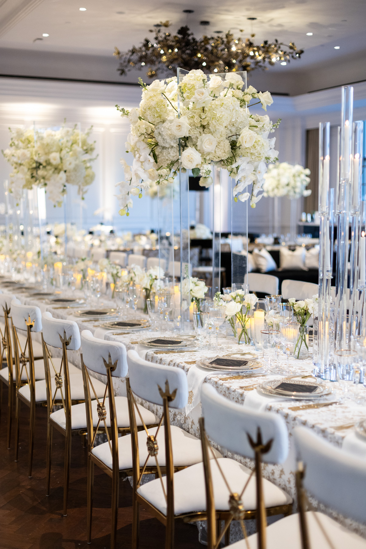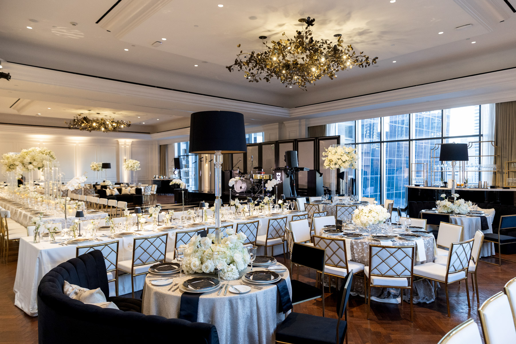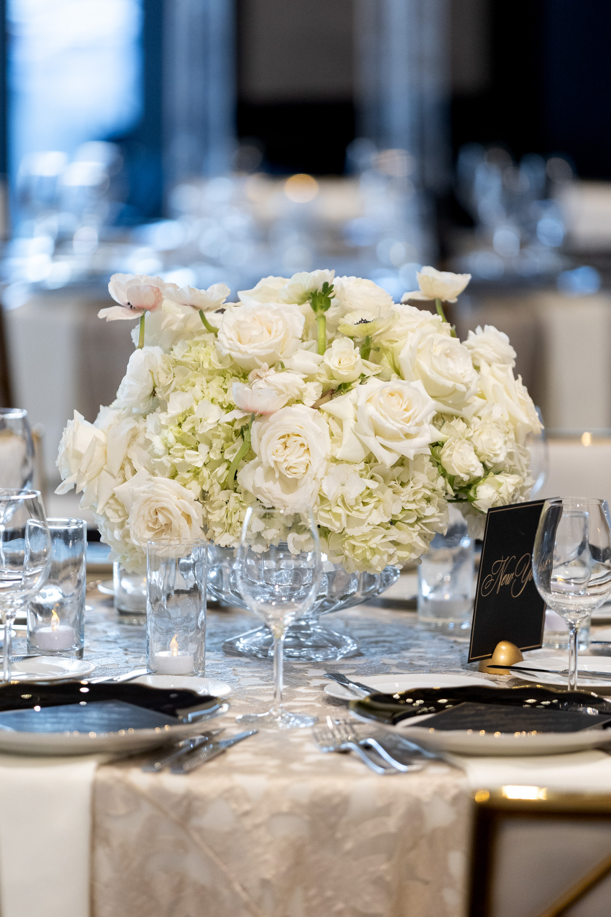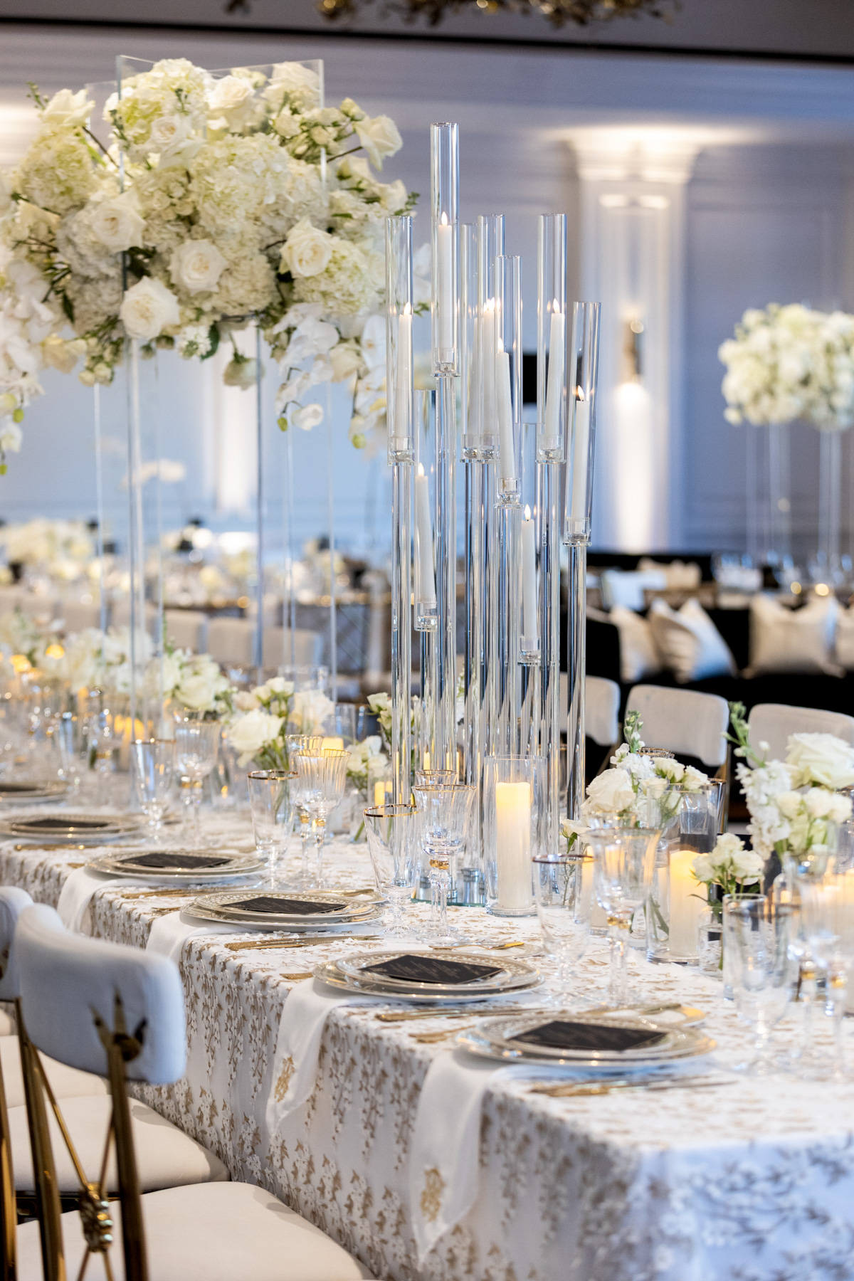 Working closely with her mom and planner, the design came together around a classic black-and-white palette with abundant candles and florals, creating a warm and romantic atmosphere perfect for a November wedding. “I was really excited to see everything come together,” Alexis said. “Our vision was romantic and elegant with lots of candles and flowers.”