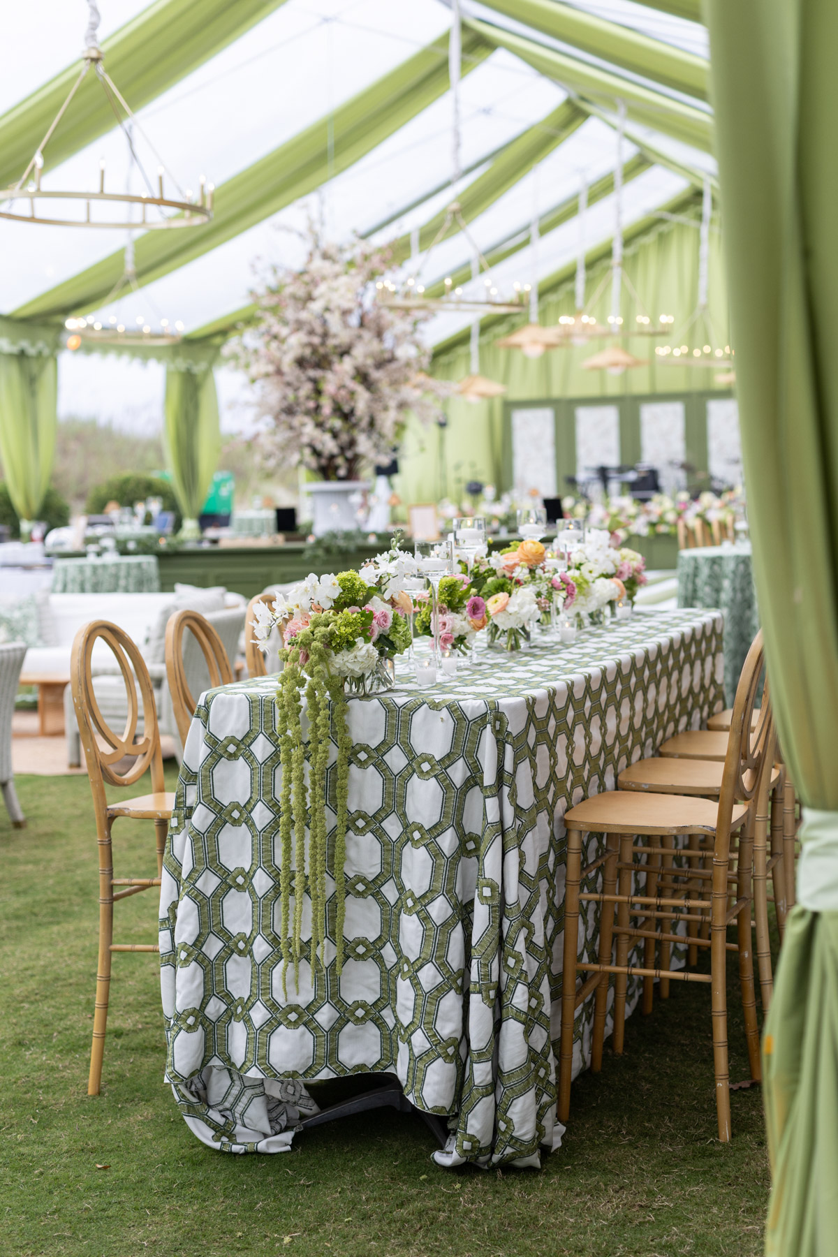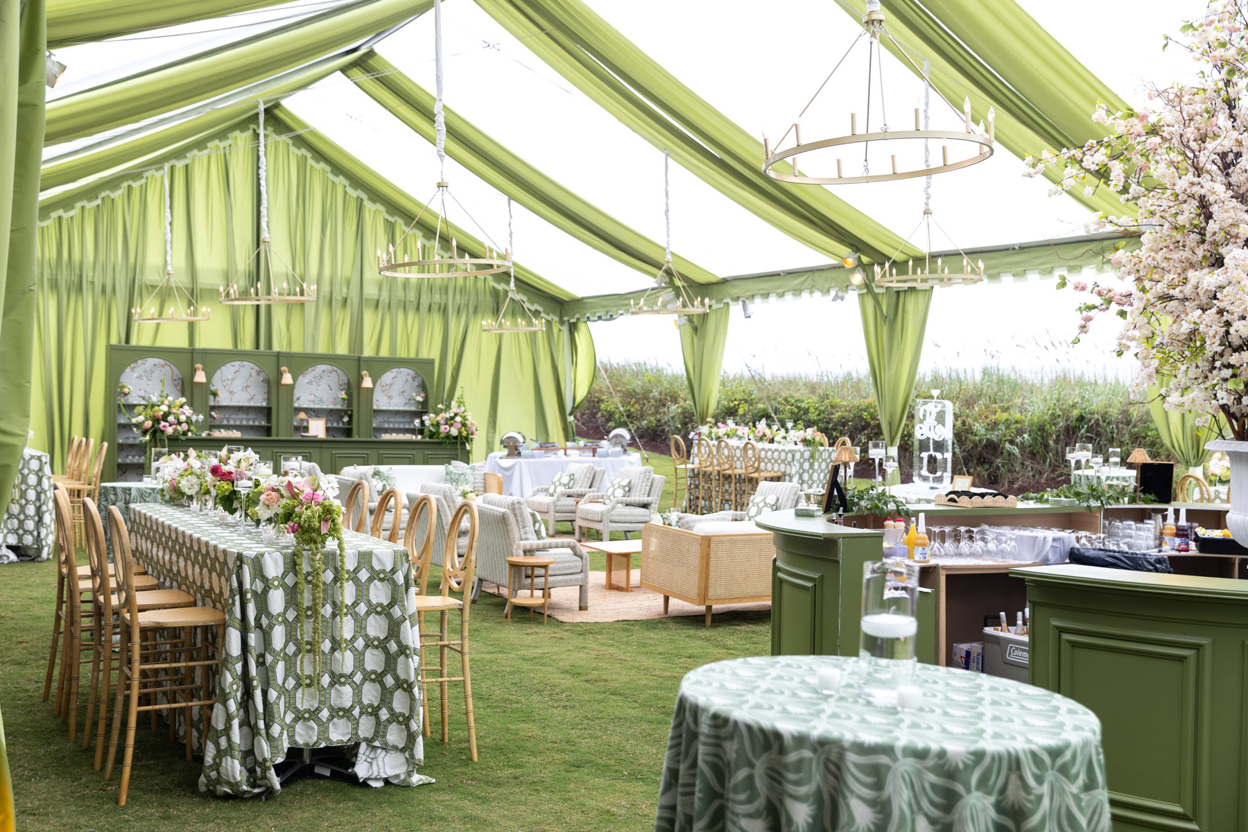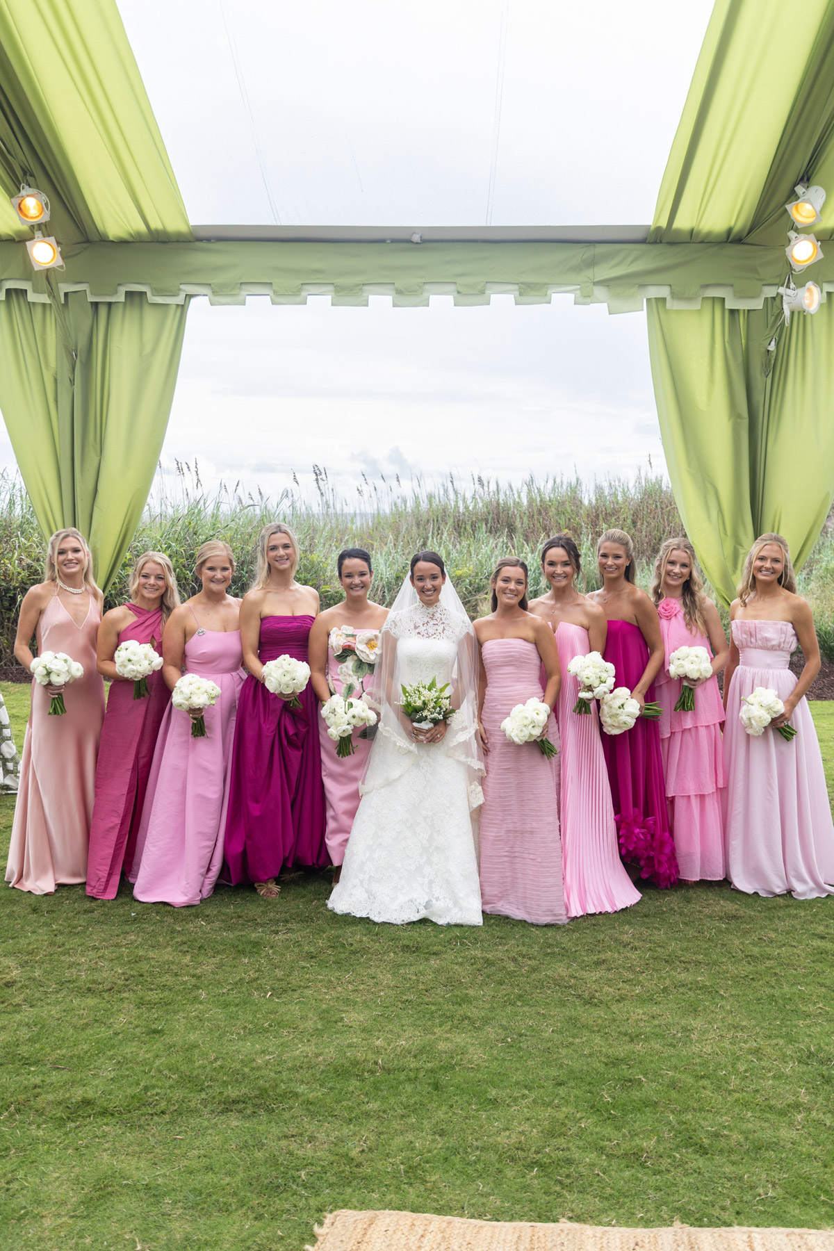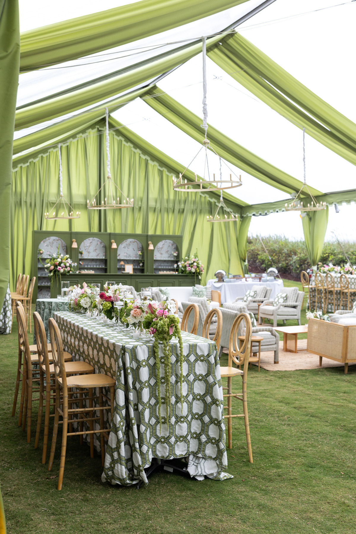 When the wedding day arrived, Allie spent the morning getting ready at the club with her bridesmaids, wanting their experience to feel relaxed and fun after hours of early glam. She slipped away every so often to peek into the reception tent, still in disbelief that the months of planning had transformed into something even more magical in person.