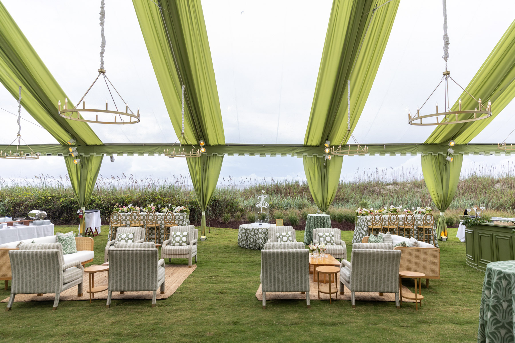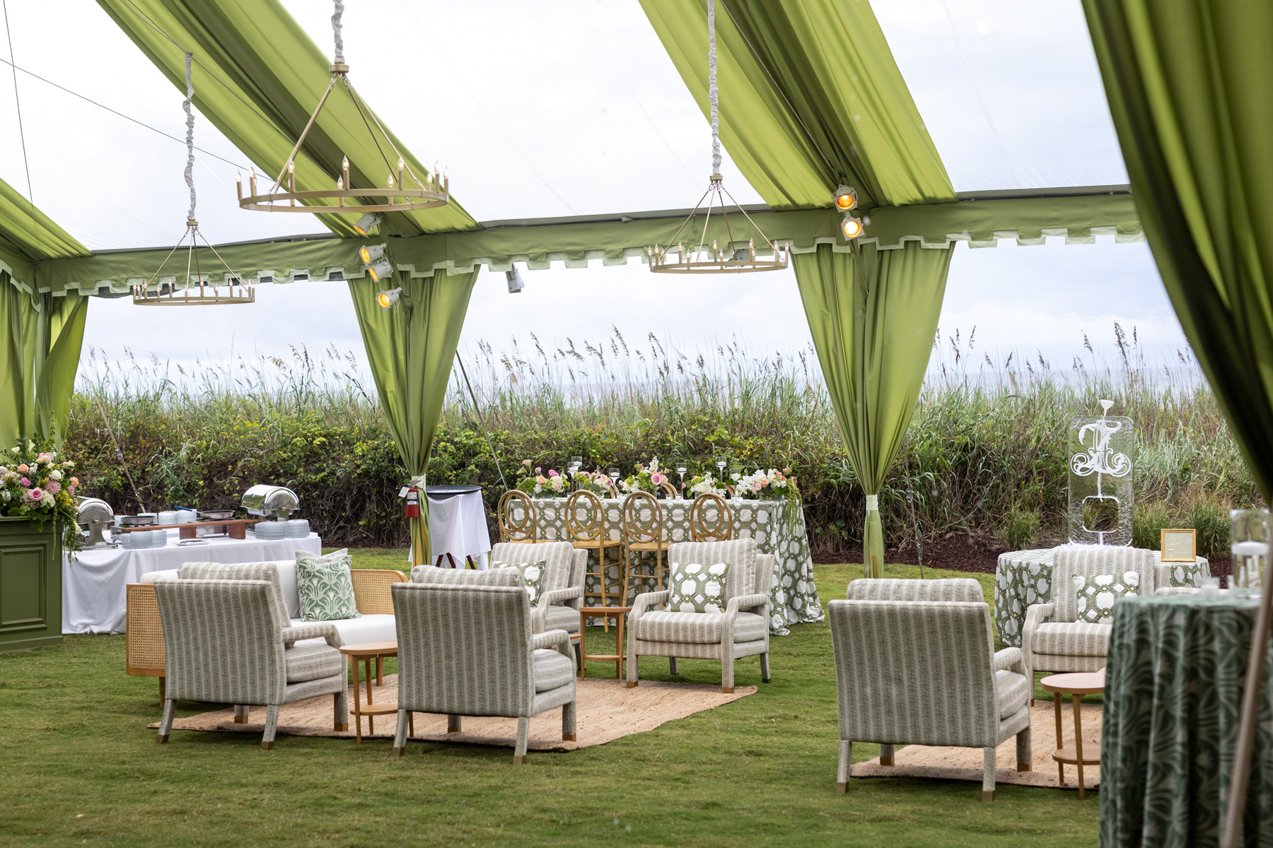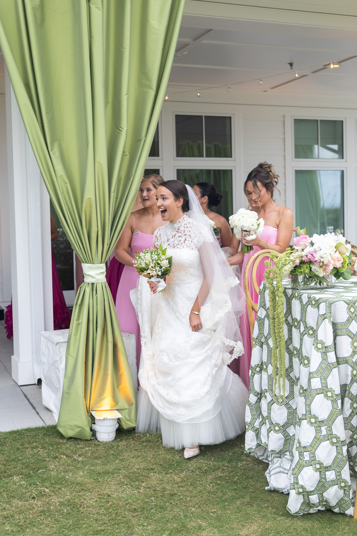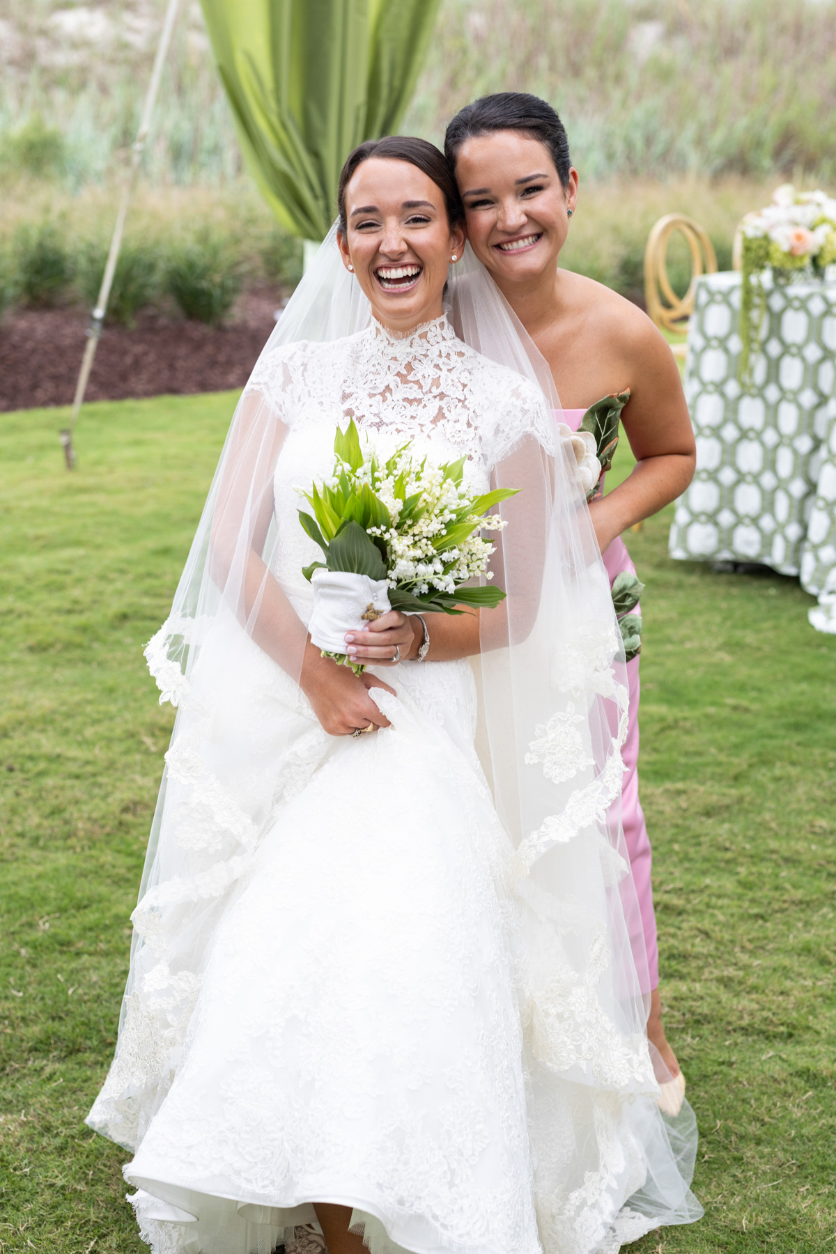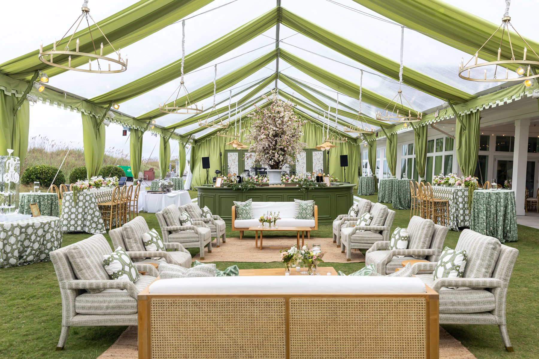 When the wedding day arrived, Allie spent the morning getting ready at the club with her bridesmaids, wanting their experience to feel relaxed and fun after hours of early glam. She slipped away every so often to peek into the reception tent, still in disbelief that the months of planning had transformed into something even more magical in person.