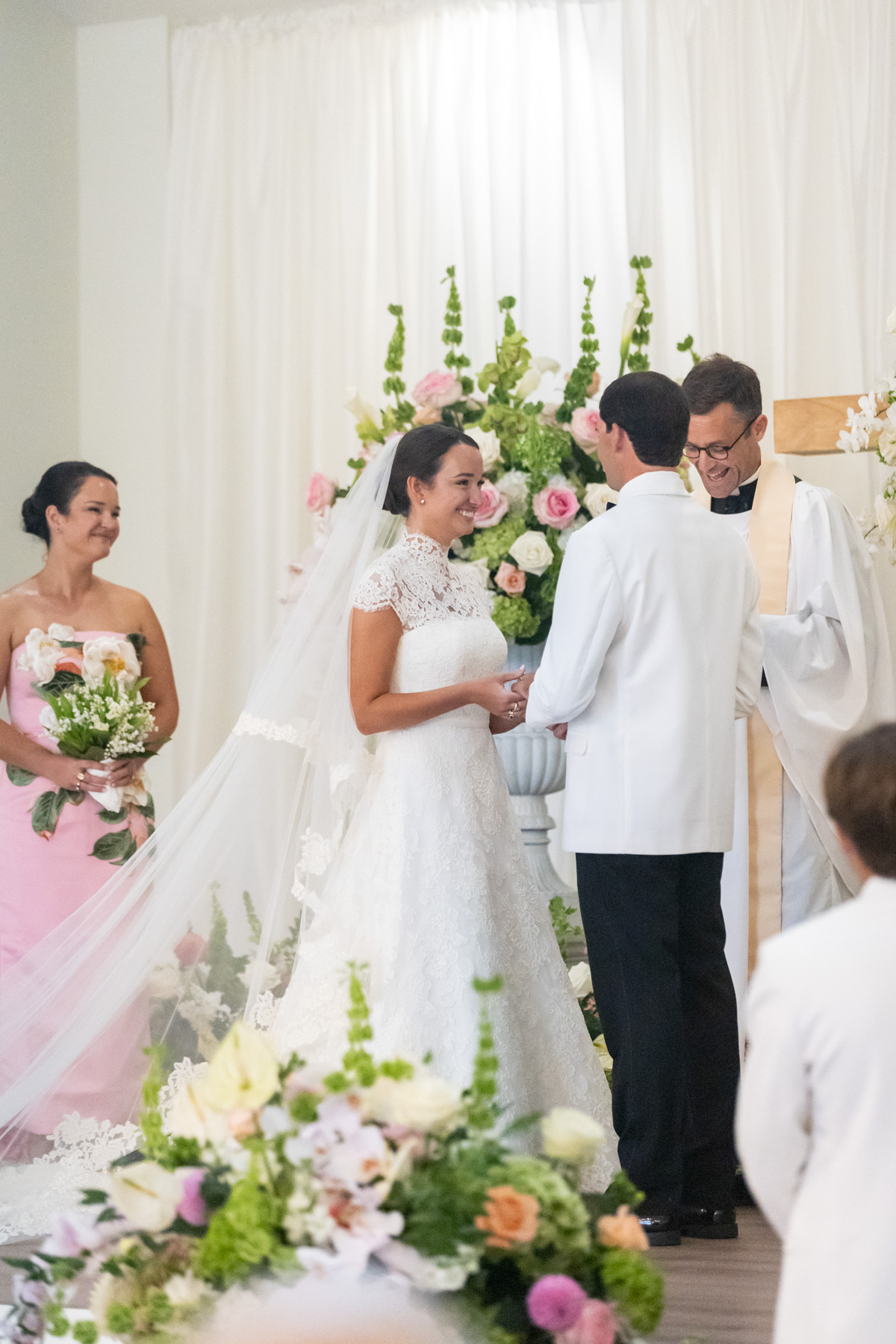 Allie shared emotional first looks with her brother and her dad, both moments she’ll cherish forever. She and Zach chose not to see each other beforehand, wanting that moment at the aisle to be the very first time. It was everything they hoped for: true, emotional, and deeply personal. Their priest invited them to turn and look out at the room during the ceremony, and seeing all of their friends and family, from every chapter of their lives, became one of the most powerful memories of the entire day.