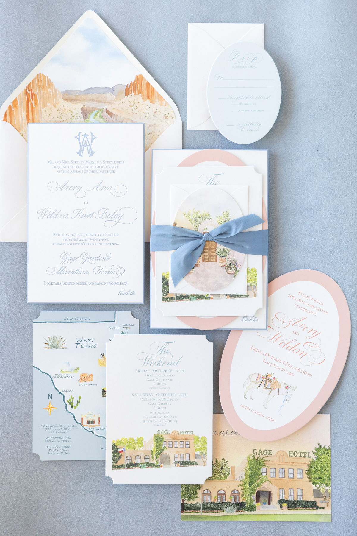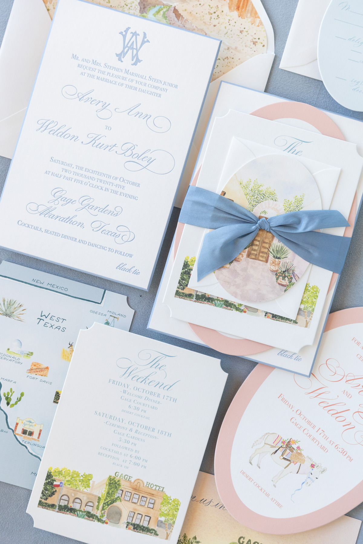 Avery and Weldon’s wedding at The Gage Hotel in Marathon, Texas, was chosen not just for its beauty, but for its meaning. It’s where Avery’s parents were married more than thirty years ago, a place Avery had returned to again and again growing up. The venue offered exactly what they wanted: a destination that encouraged guests to linger, gather, and truly experience the weekend together. With everyone staying in one hotel, the celebration stretched beyond a single day, allowing moments to breathe.