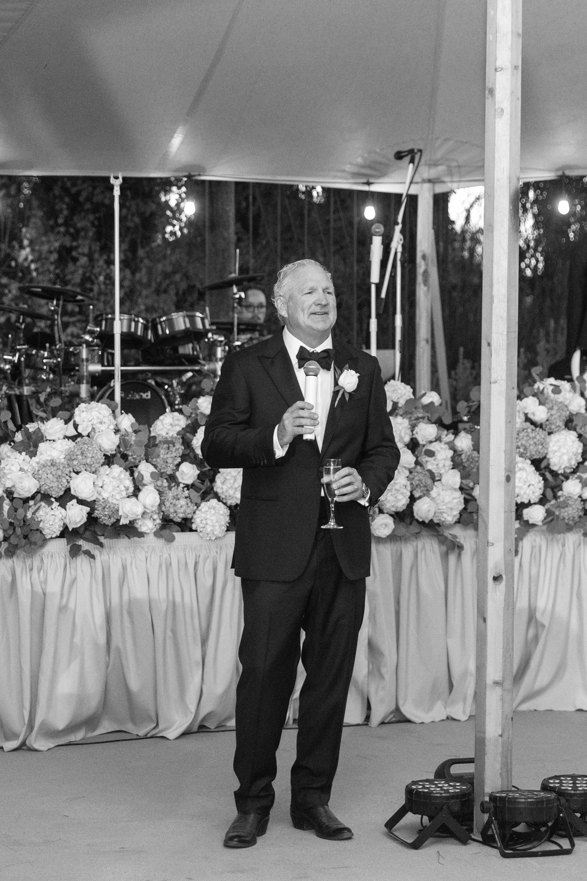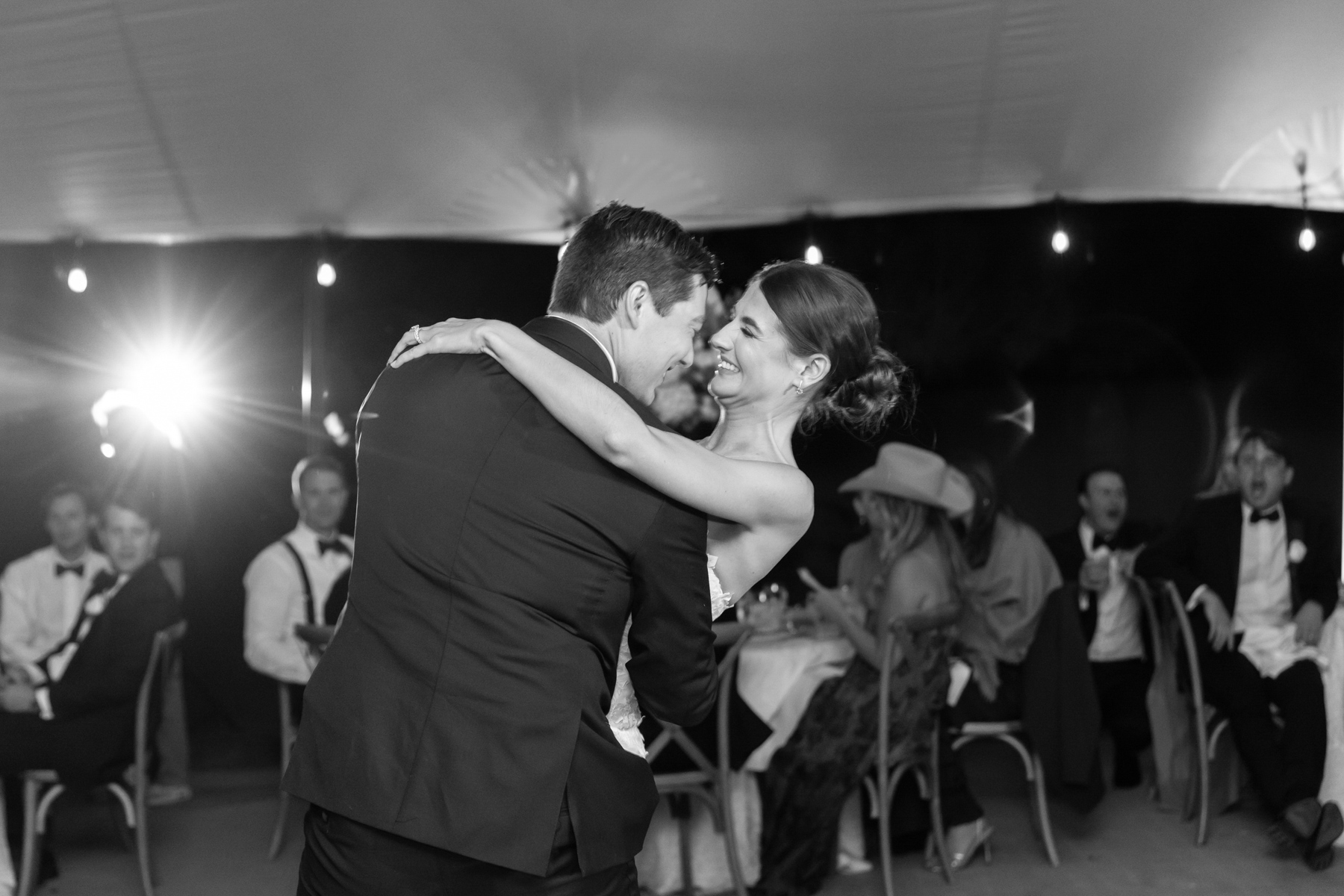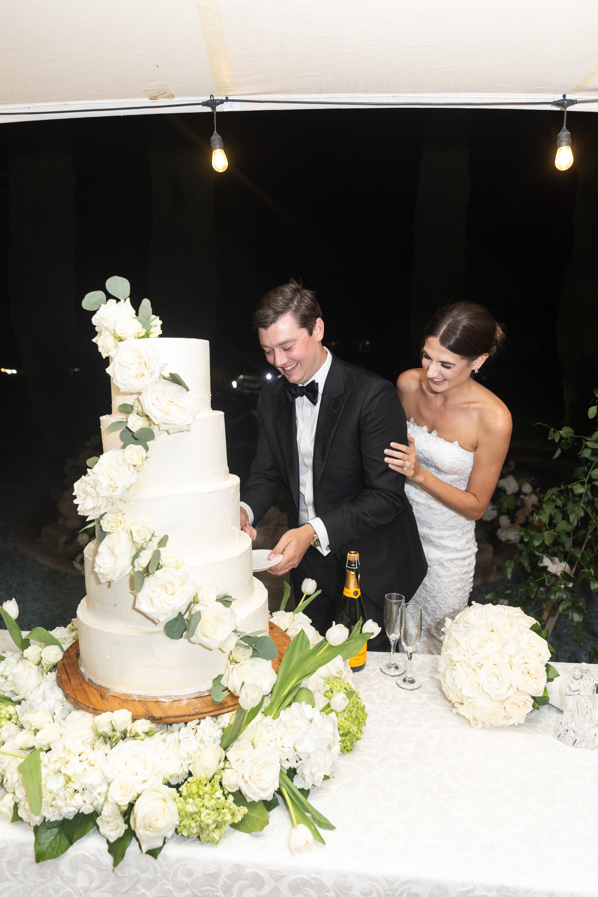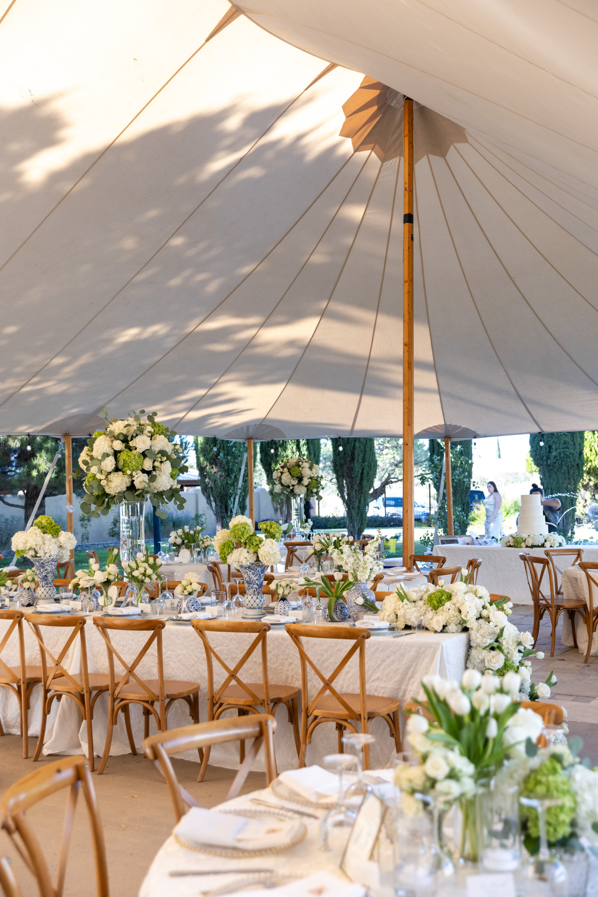 Avery’s taste leaned classic, and timeless. The floral palette centered on white blooms, particularly hydrangeas, layered with soft greenery to add depth without distraction. Blue-and-white chinoiserie appeared throughout the weekend, drawn directly from her mother’s own collection. At the head table, Avery’s parents’ wedding china was used once again, quietly tying generations together.