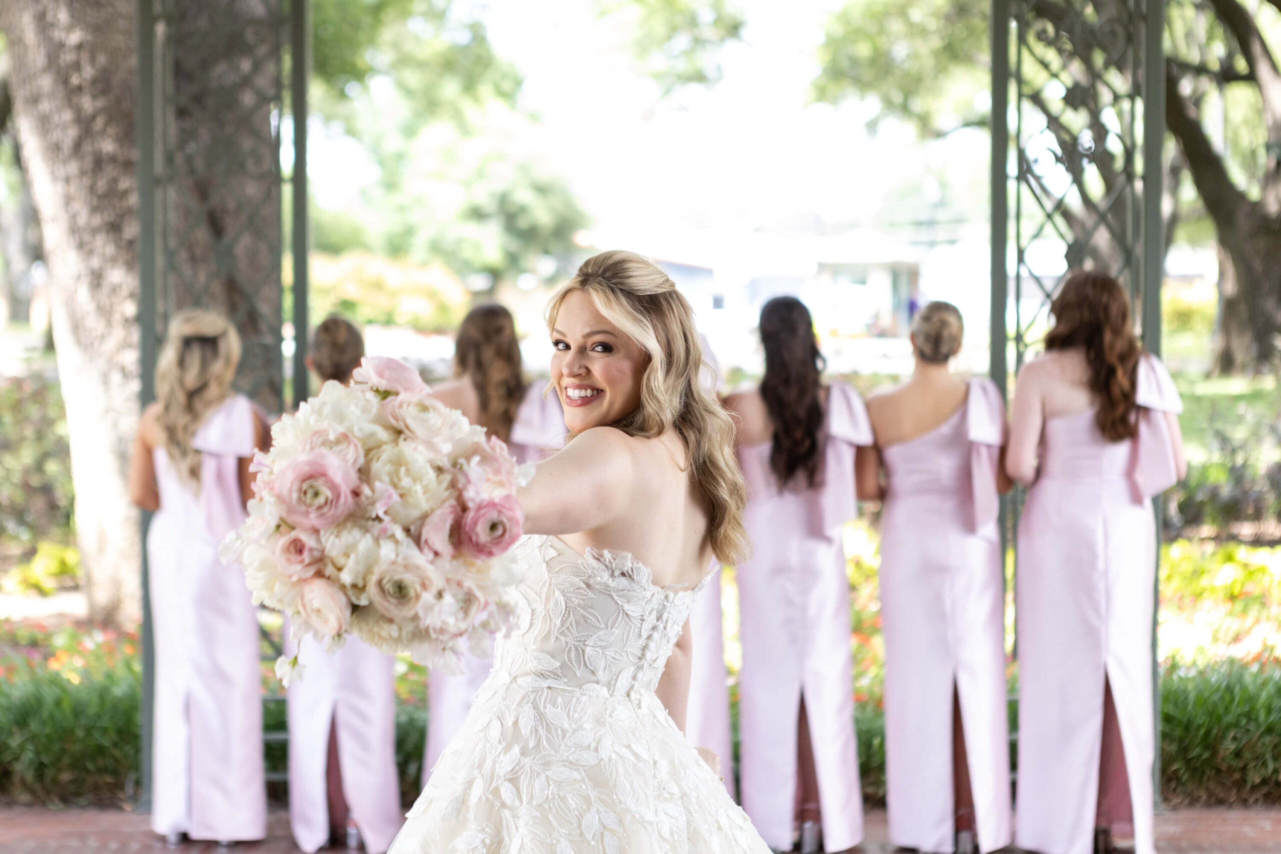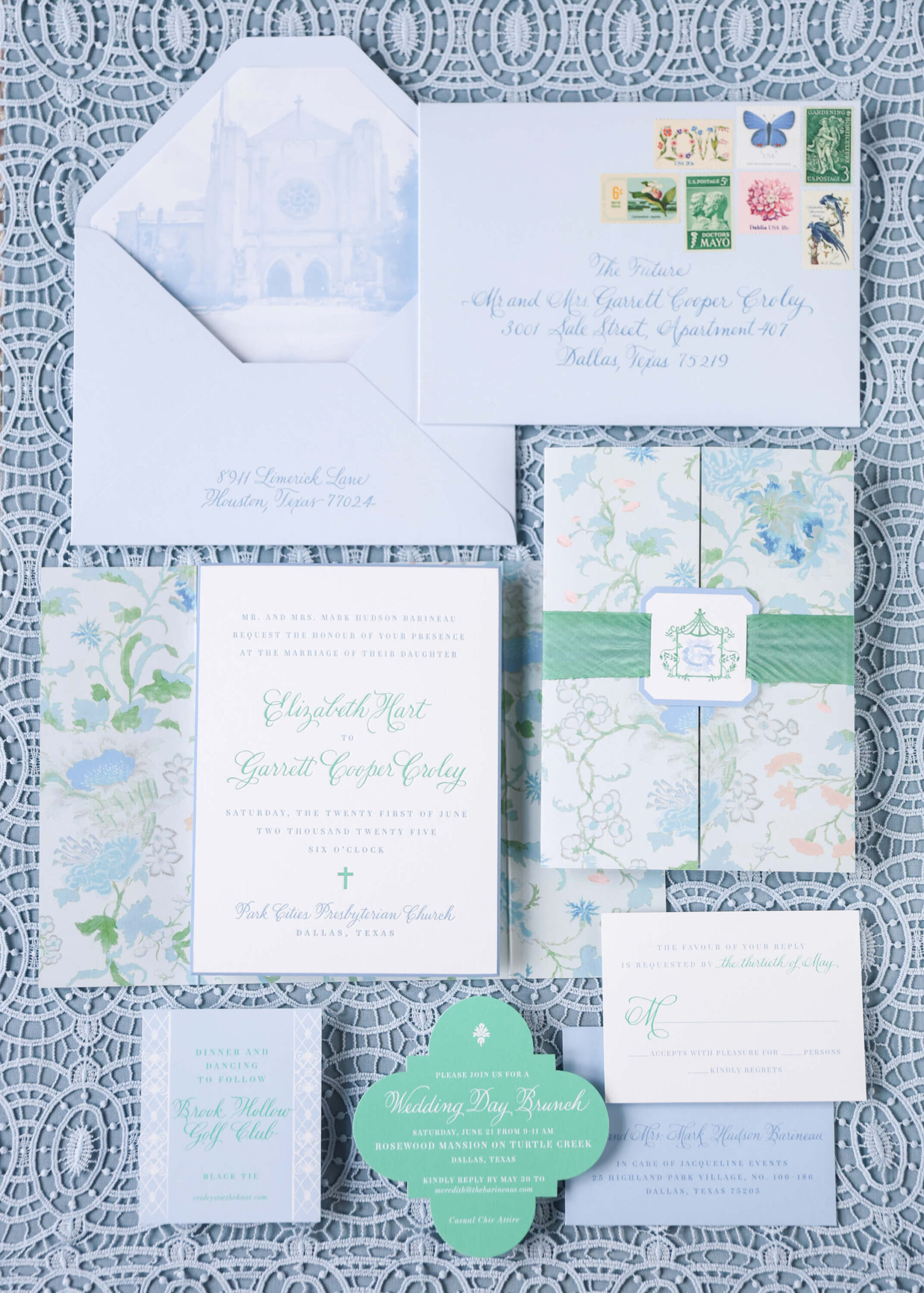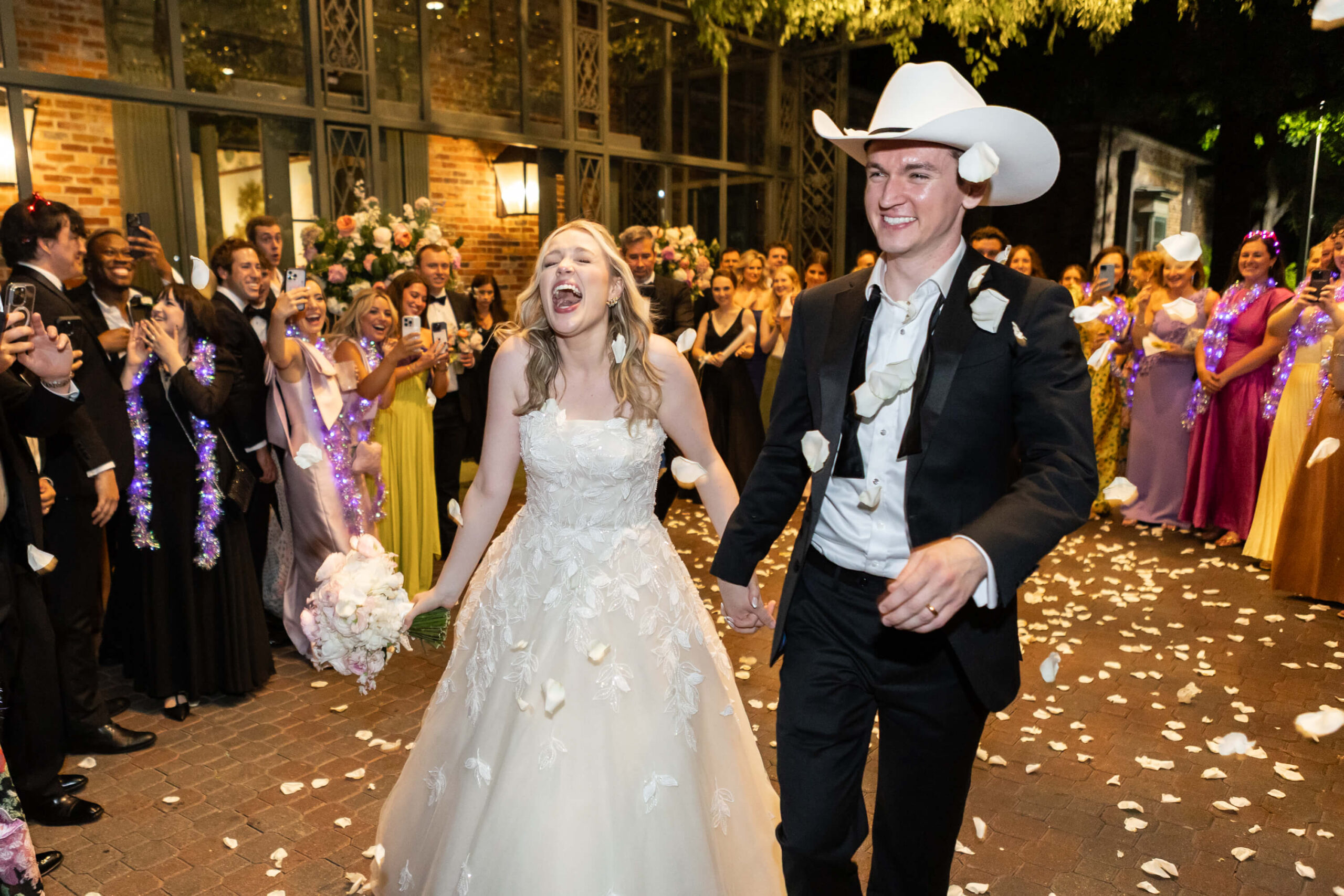 As the sun set on the summer solstice, Elizabeth and Garrett stepped away for golden hour portraits, taking in a quiet moment before their grand exit. Waiting for them was Garrett’s grandfather’s dark green 1950s Chevrolet pickup truck: a vehicle he had grown up helping restore, brought to Dallas on a transport truck just for the occasion. It was the perfect sendoff to a day filled with sentiment, style, and the kind of personal touches that made their wedding feel entirely, beautifully their own.