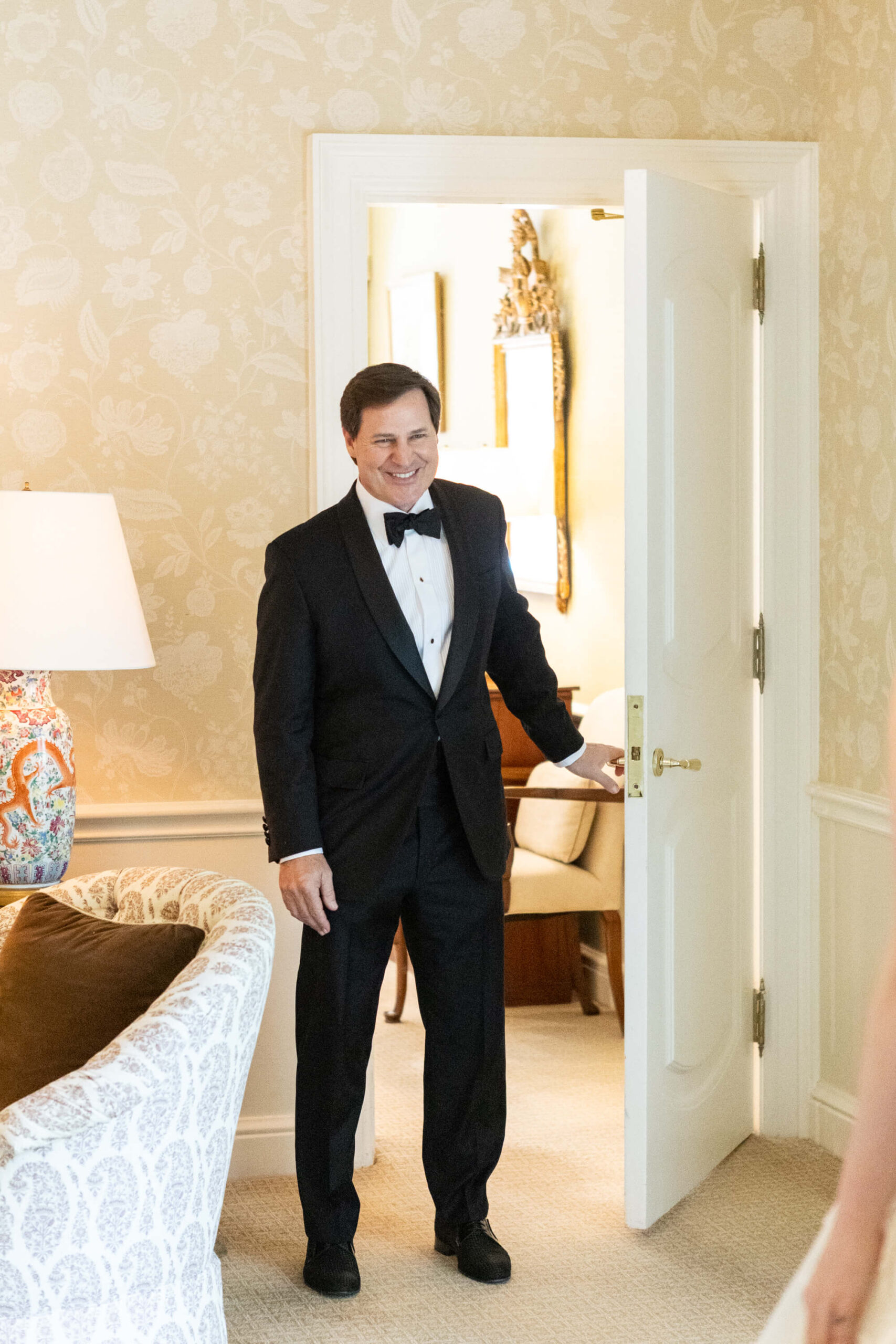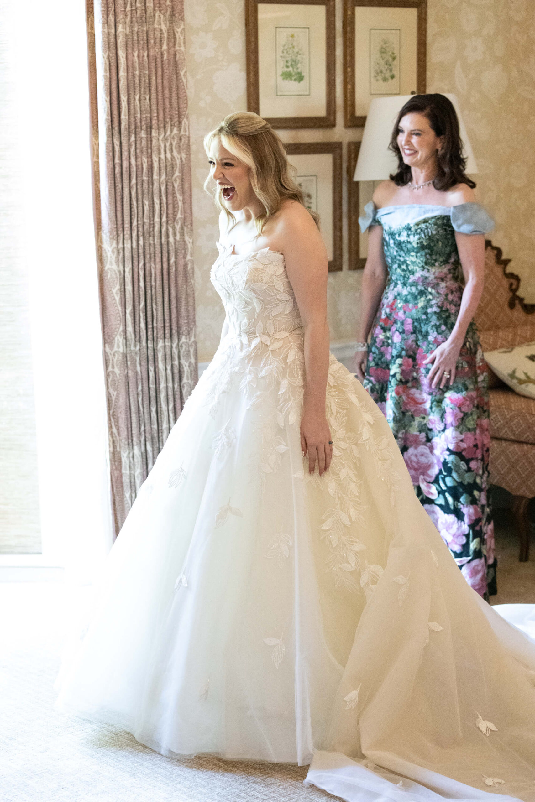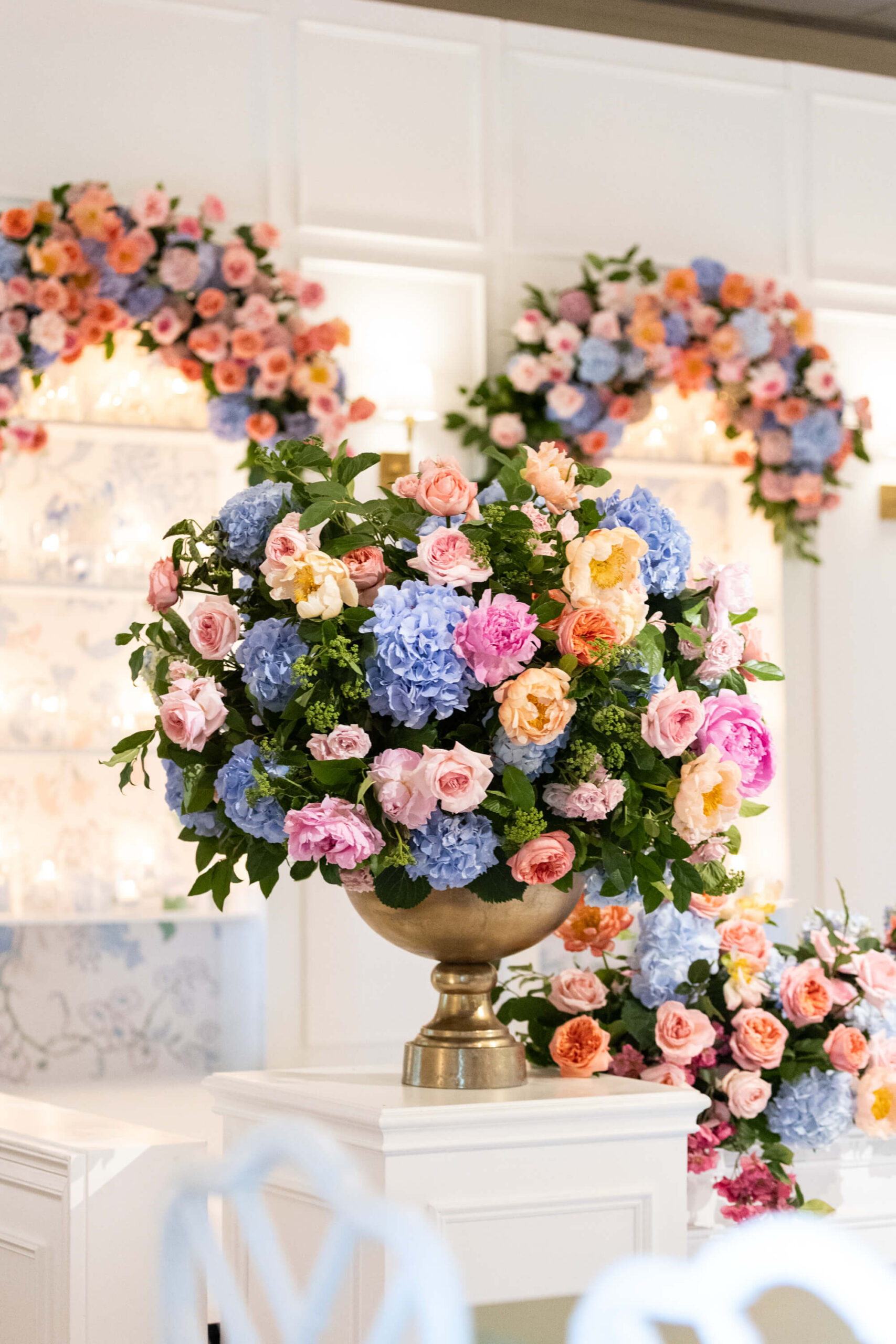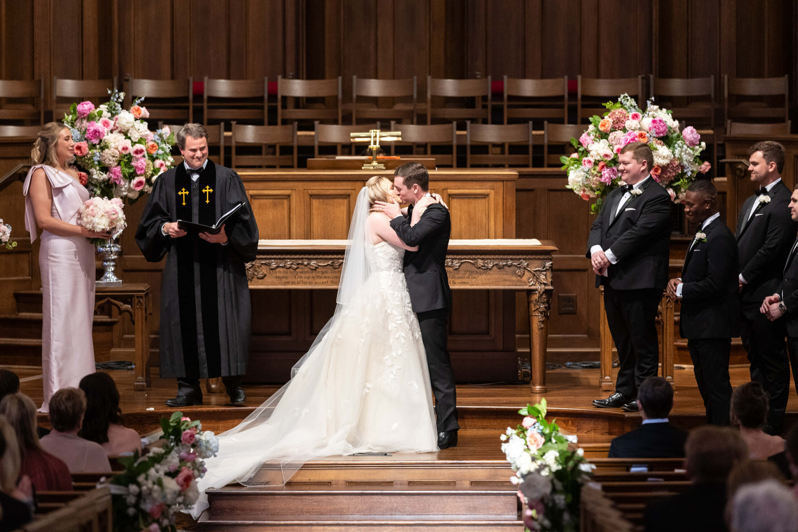The groom’s surprise “Dino Den” was a true showstopper: complete with tropical plants, a fog machine, themed cocktails, and a towering dinosaur cake. It was a playful tribute to Garrett’s lifelong love of dinosaurs and a moment of pure joy for the couple and their guests. Another highlight of the evening came when Elizabeth and Garrett took the stage for a surprise duet of “Guilty” by Barbra Streisand and Barry Gibb: an unexpected performance and a favorite memory for many.
