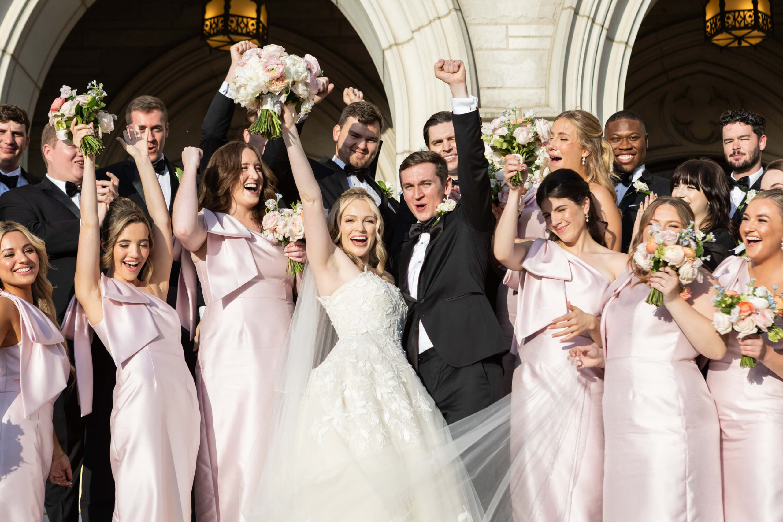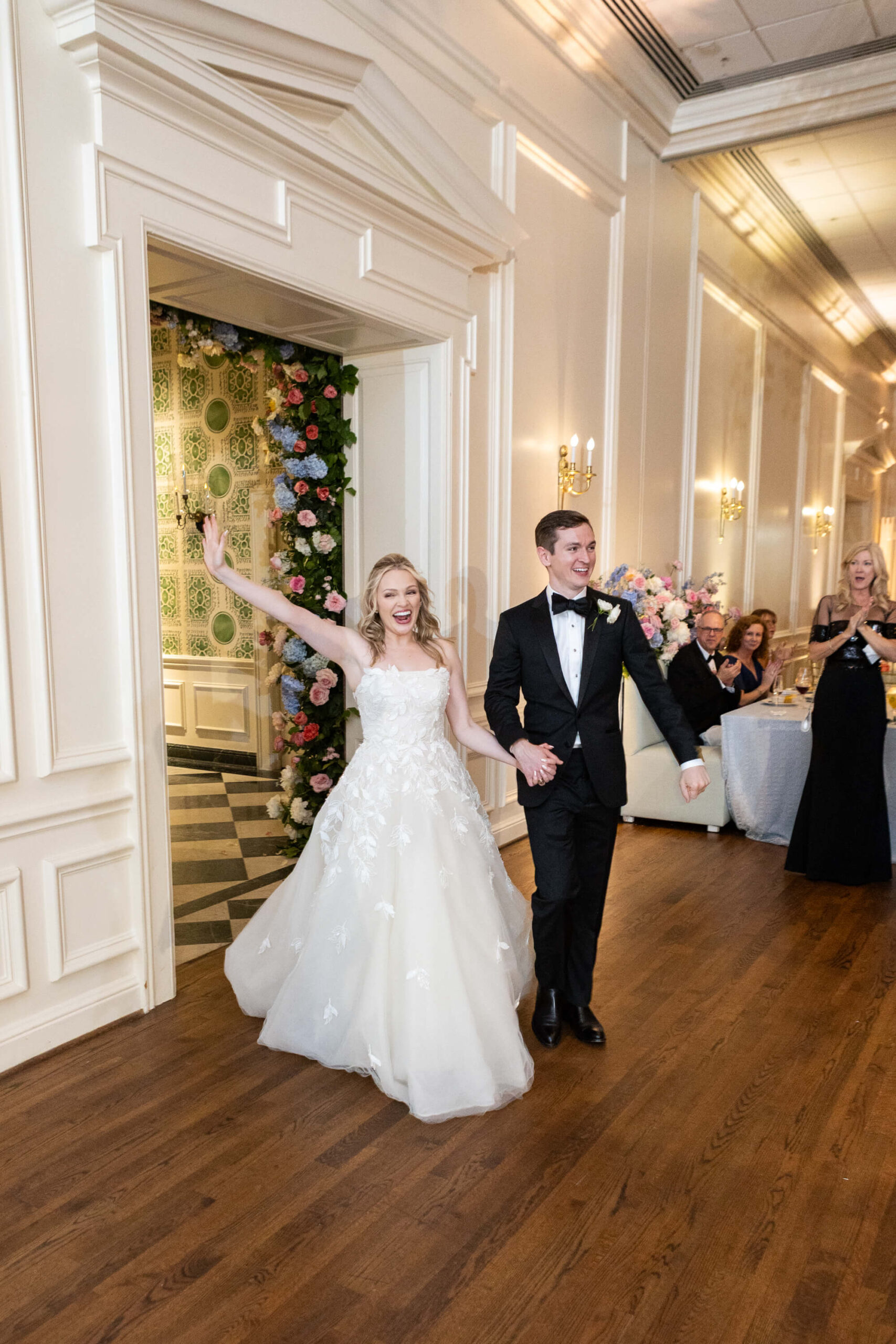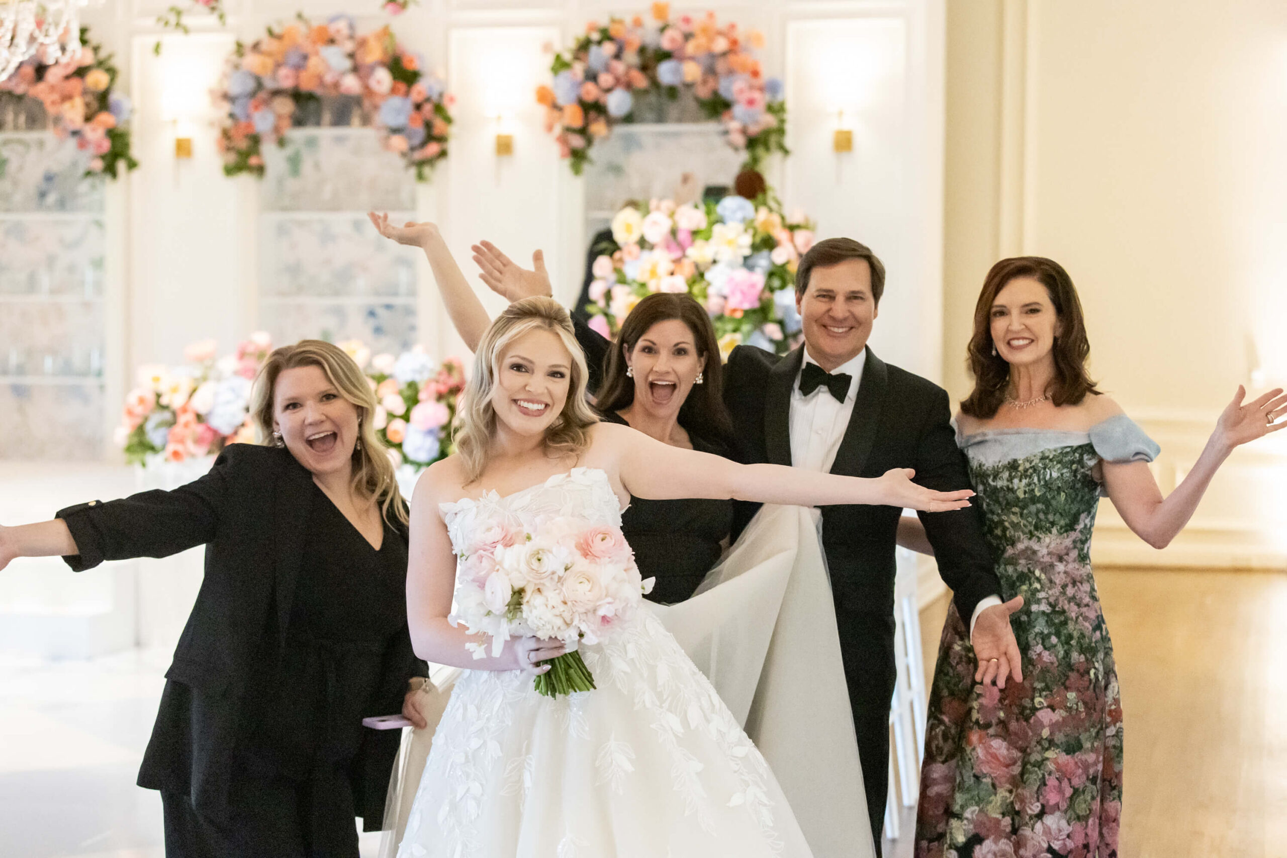 With Garrett’s demanding med school schedule, Elizabeth and her mother took the lead on planning early, ensuring every element felt intentional. The result? A vibrant, personality-filled day where no detail was too small to carry a story, like custom chopstick sleeves at the sushi station that read “Chopsticks Optional,” a cheeky nod to their second date.