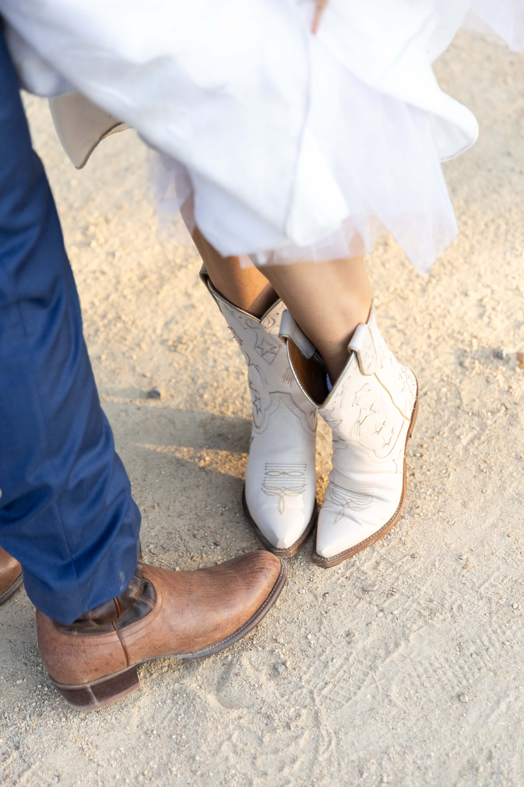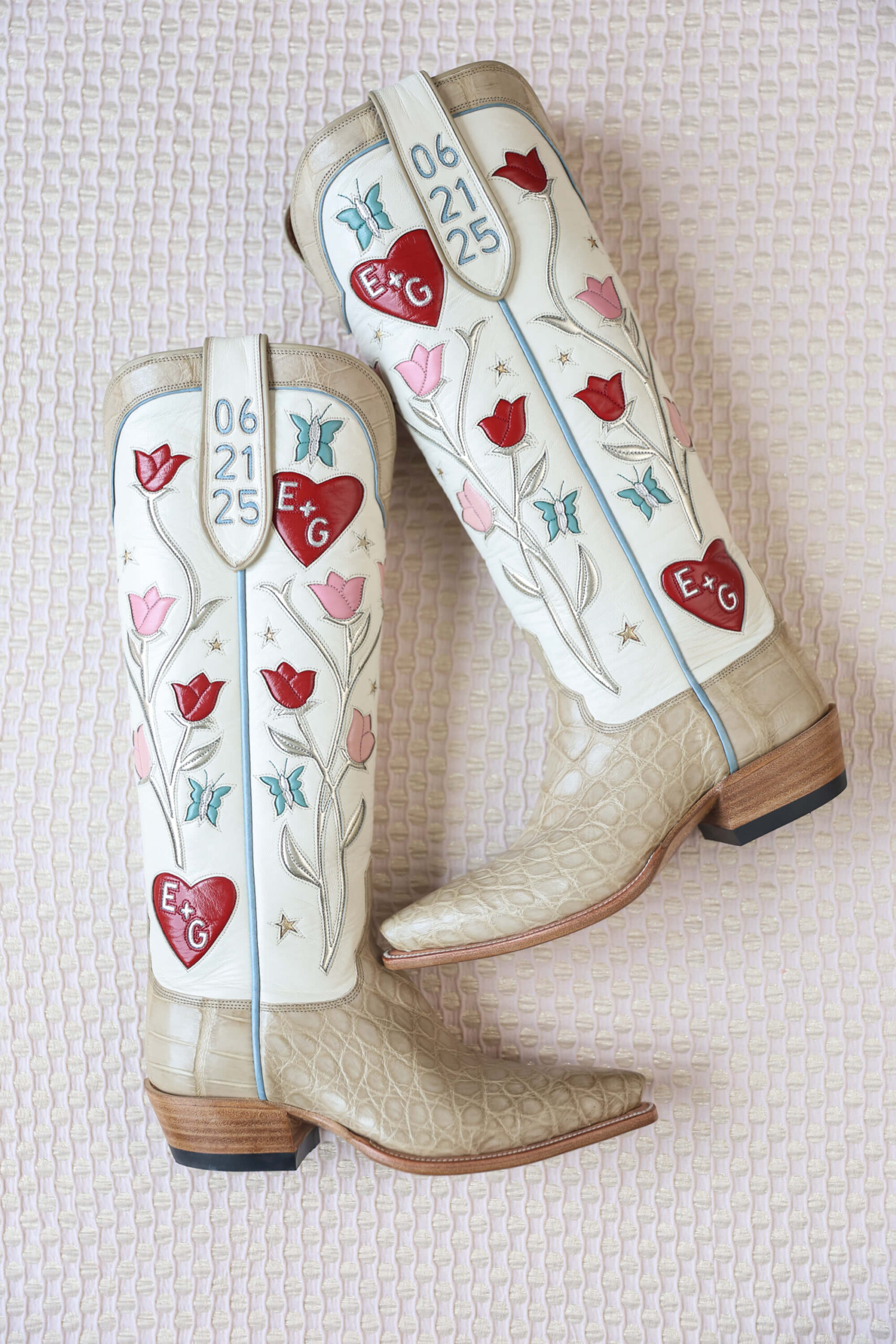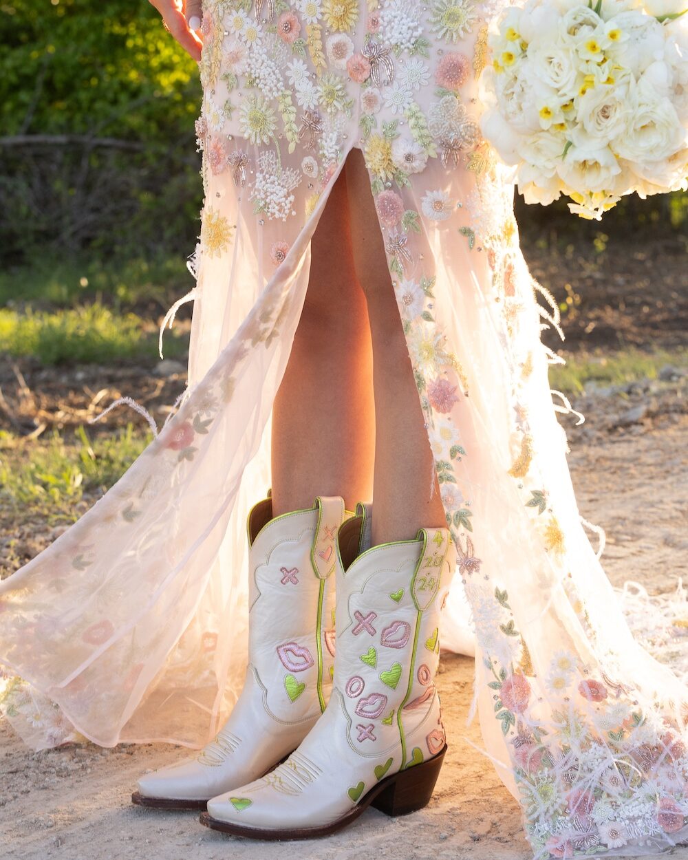 Beyond the aesthetic charm, there’s practicality in the switch. After hours spent in heels for portraits and ceremonies, trading stilettos for something a bit more grounded feels like a breath of fresh air. And let’s be honest, nothing says “I’m ready to celebrate” quite like a pair of boots made for dancing. From intimate ranch weddings to grand ballroom receptions, custom bridal boots add a layer of personality and a bit of playful polish to your look.