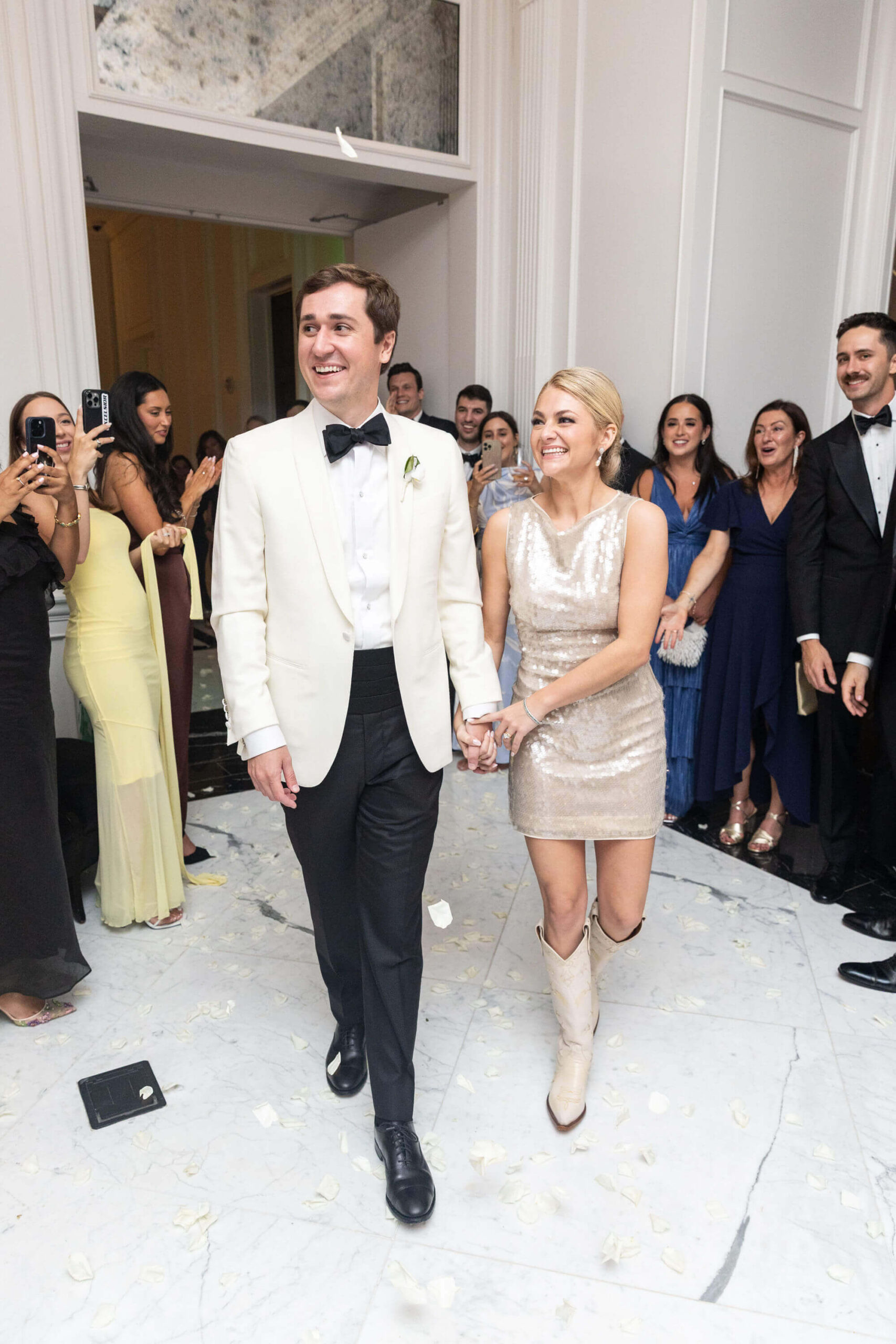 Gone are the days when the only option for wedding footwear was a towering heel destined for sore feet by the first dance. Today’s brides are redefining the wardrobe change, extending it beyond the gown to include a chic swap of shoes, a detail we can’t help but adore. A carefully chosen pair of boots, especially something custom, stitched with your initials, wedding date, or a meaningful motif, can be both a style statement and a sentimental keepsake. Equal parts elevated and effortless.