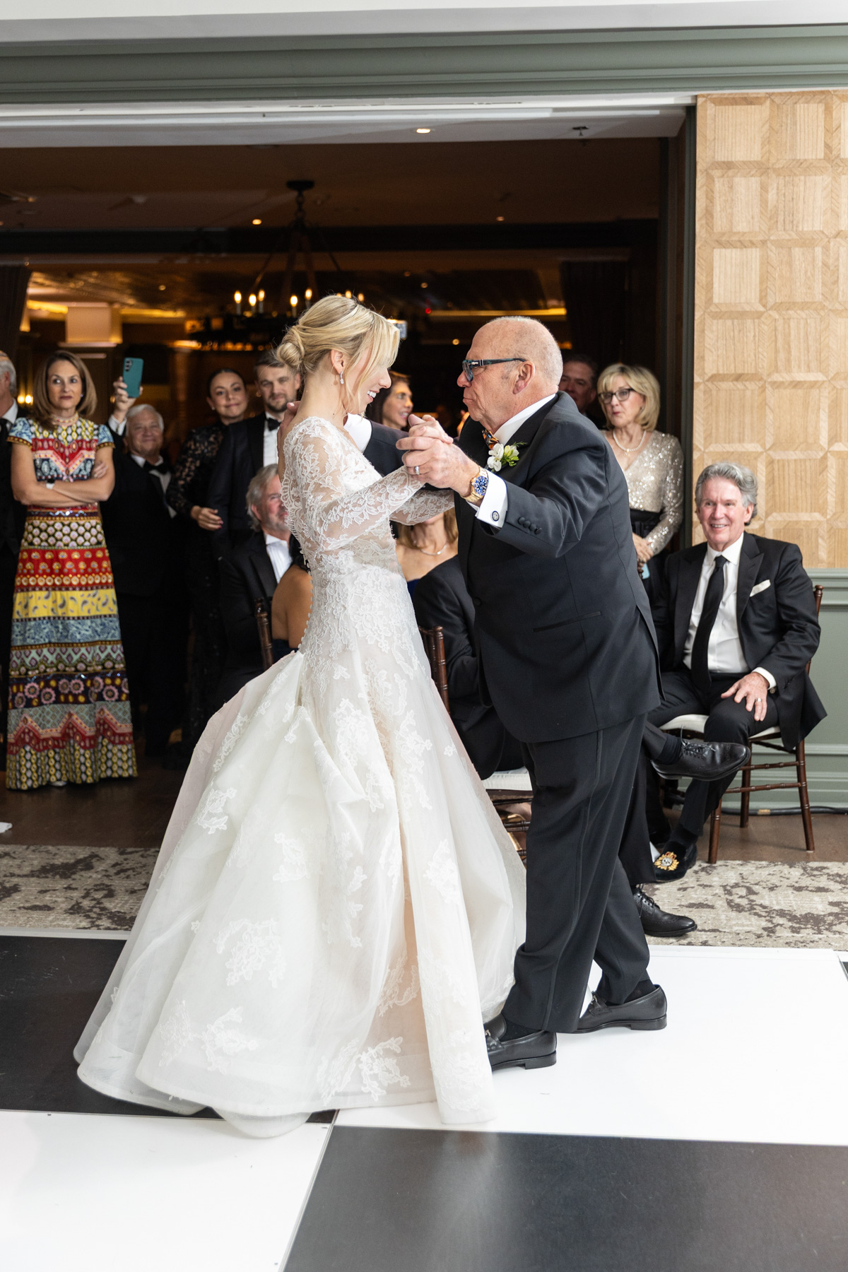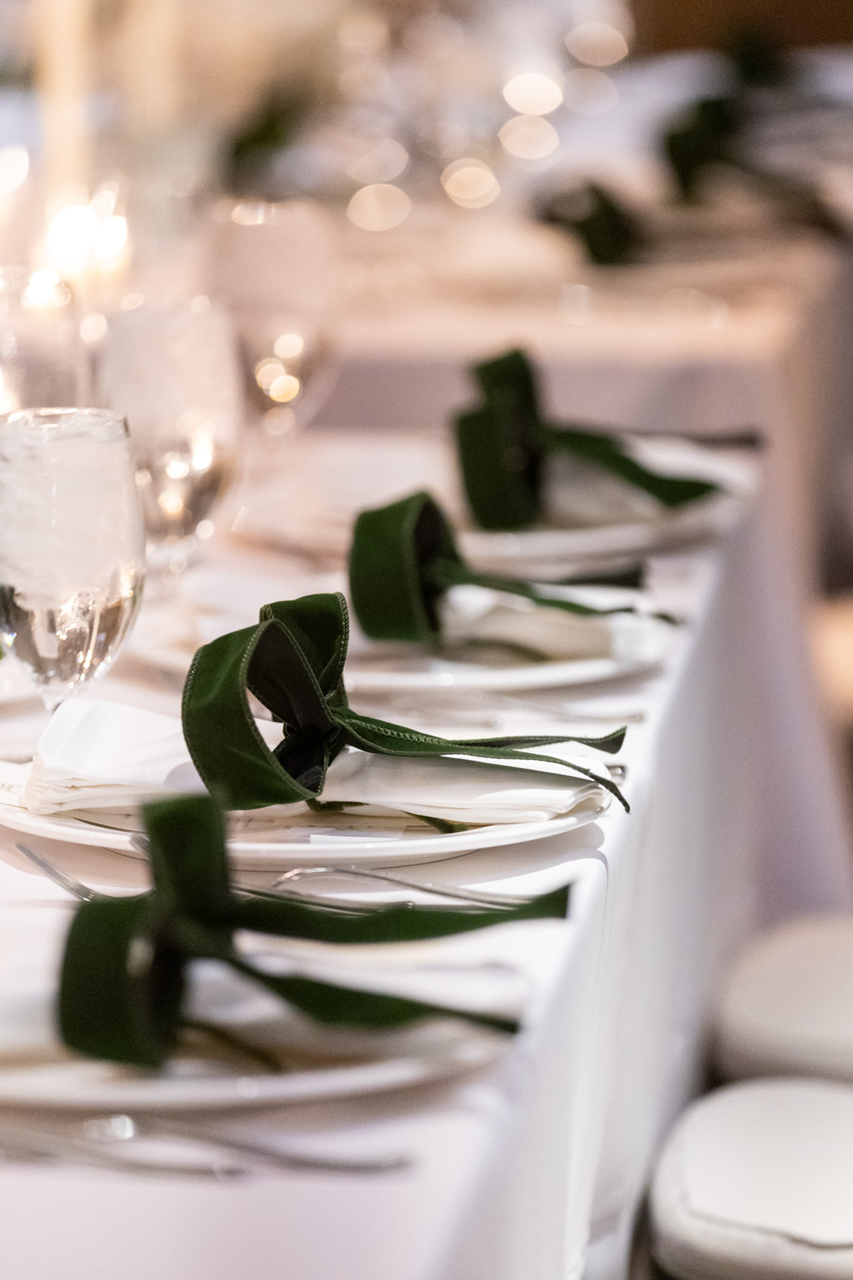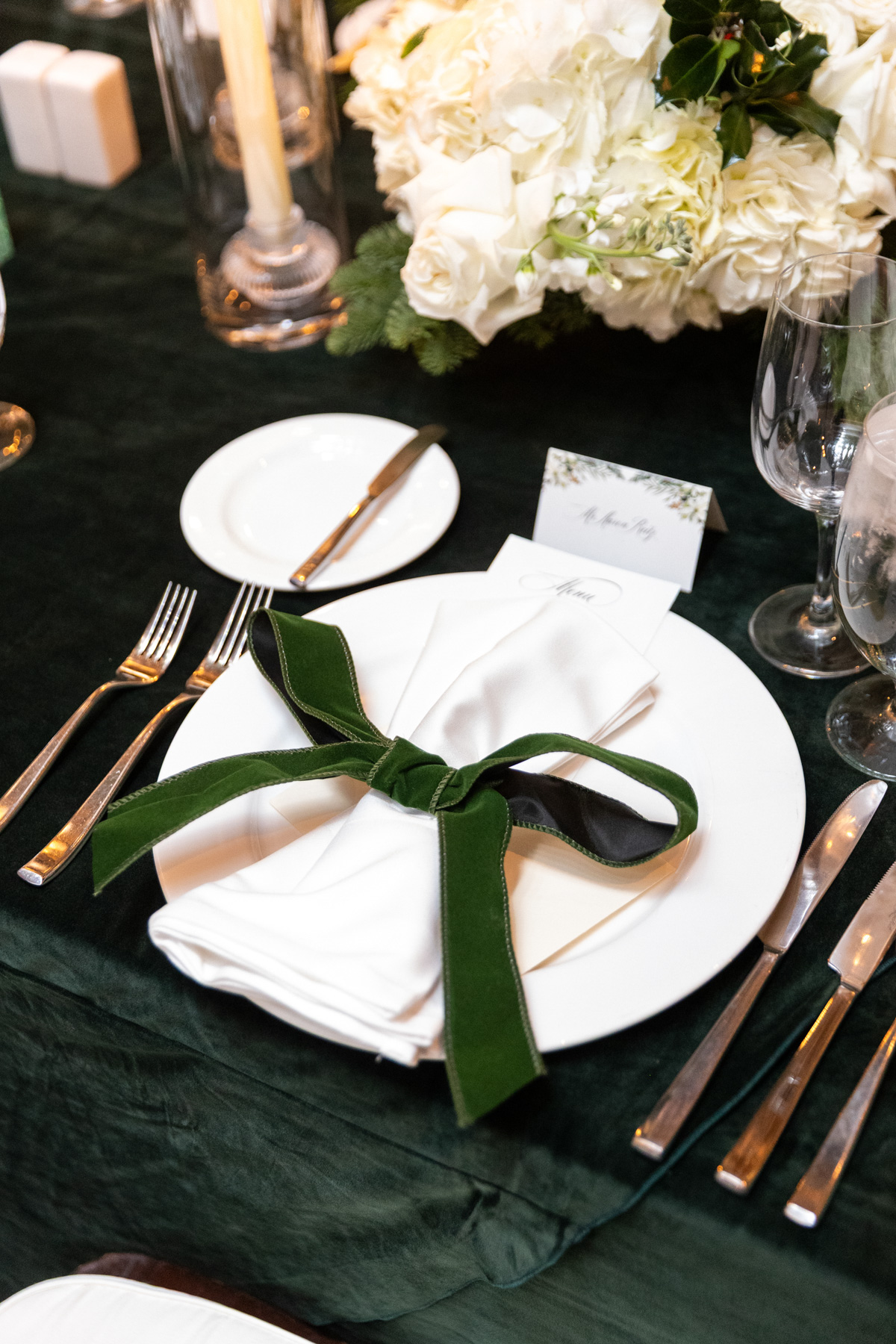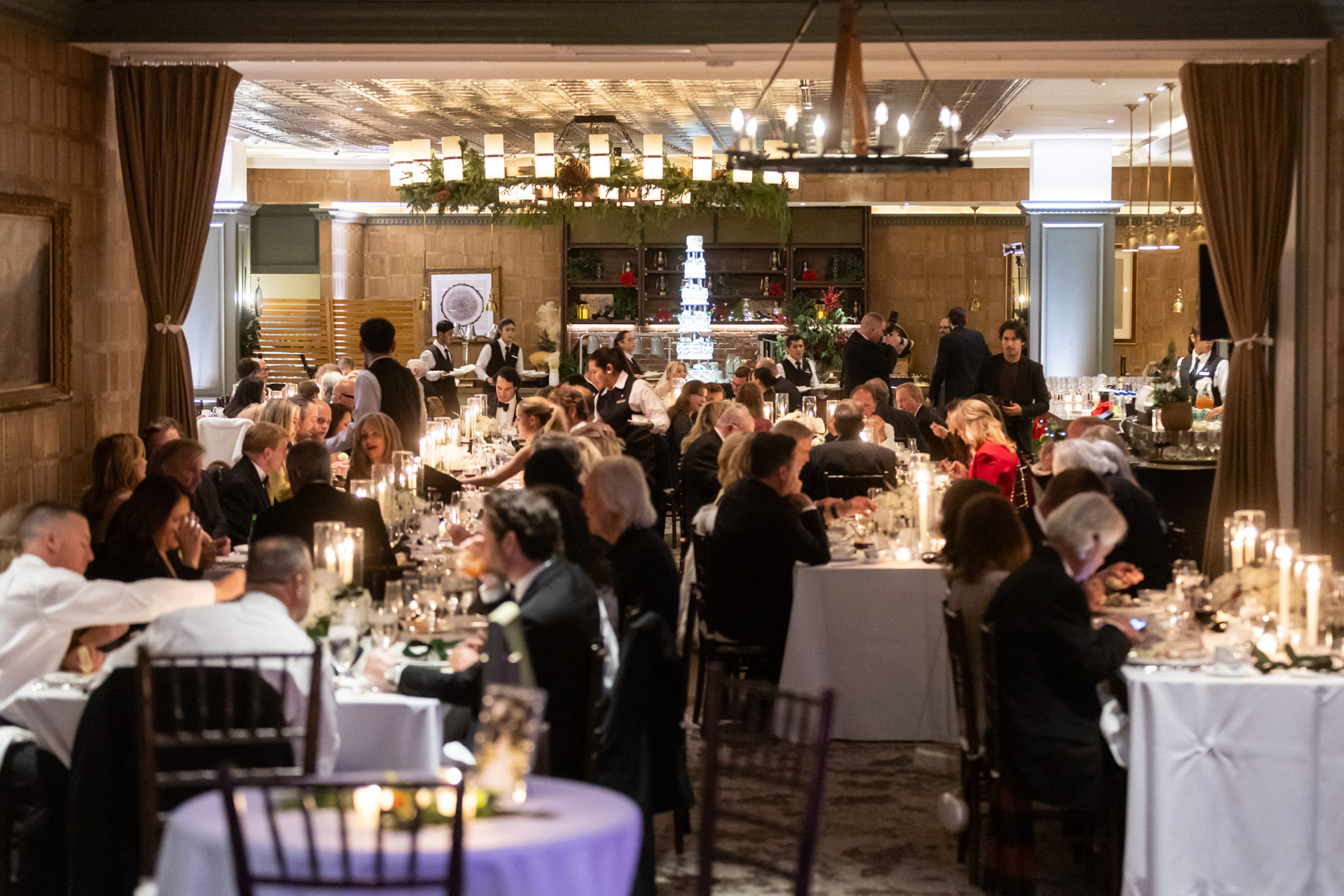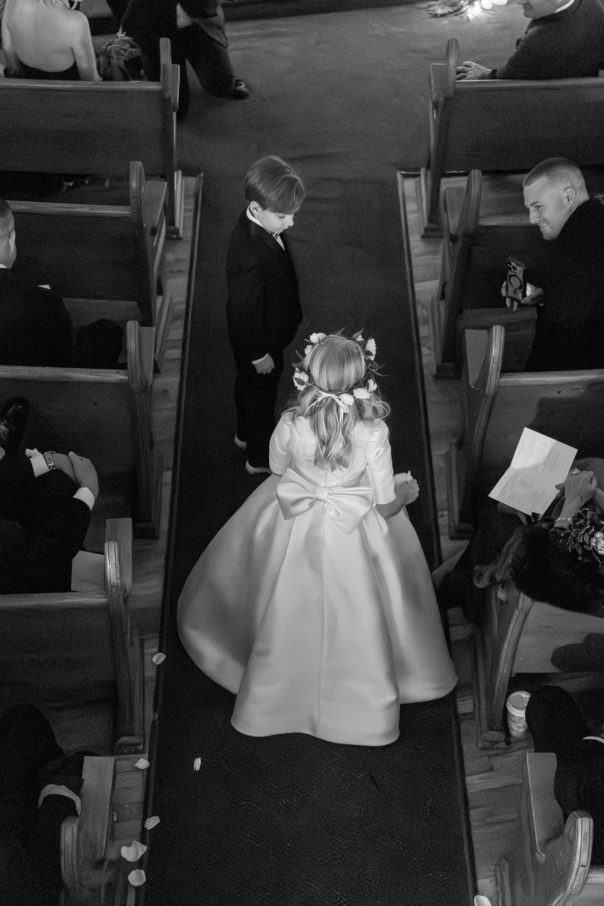 As snow continued to fall, the ceremony felt almost cinematic. Candlelight filled the church while music took center stage well before guests were seated. Two string quartets and a pianist created a full, orchestral sound, transforming the prelude into an experience of its own. Guests were invited to arrive early simply to listen, allowing the space to settle into a reverent, emotional atmosphere before the ceremony even began.