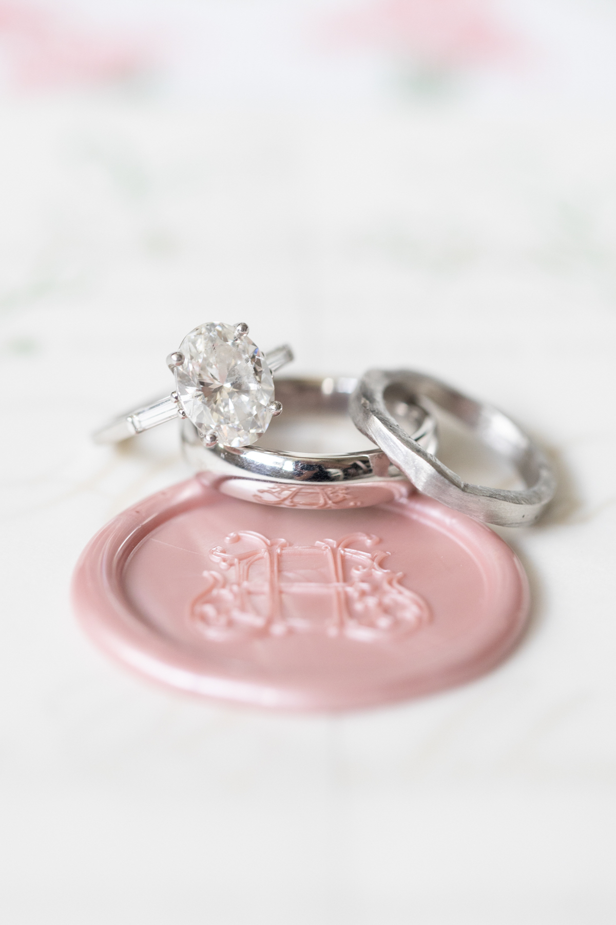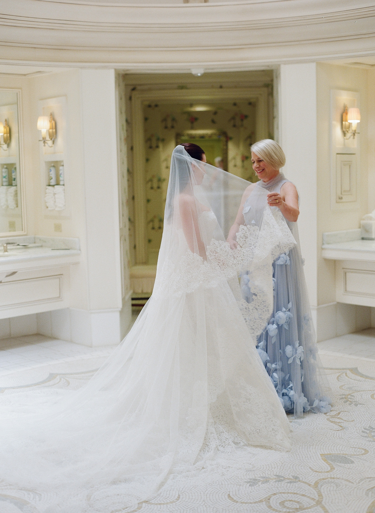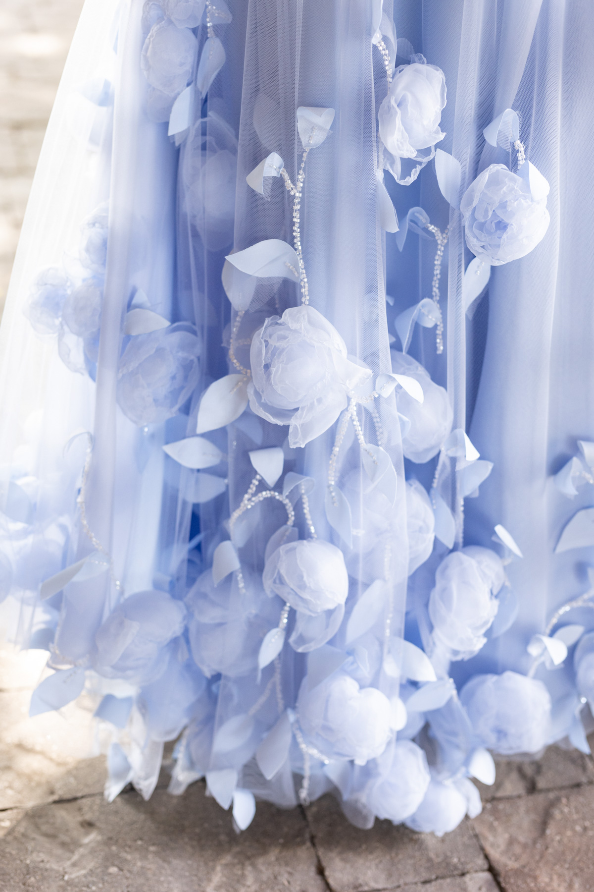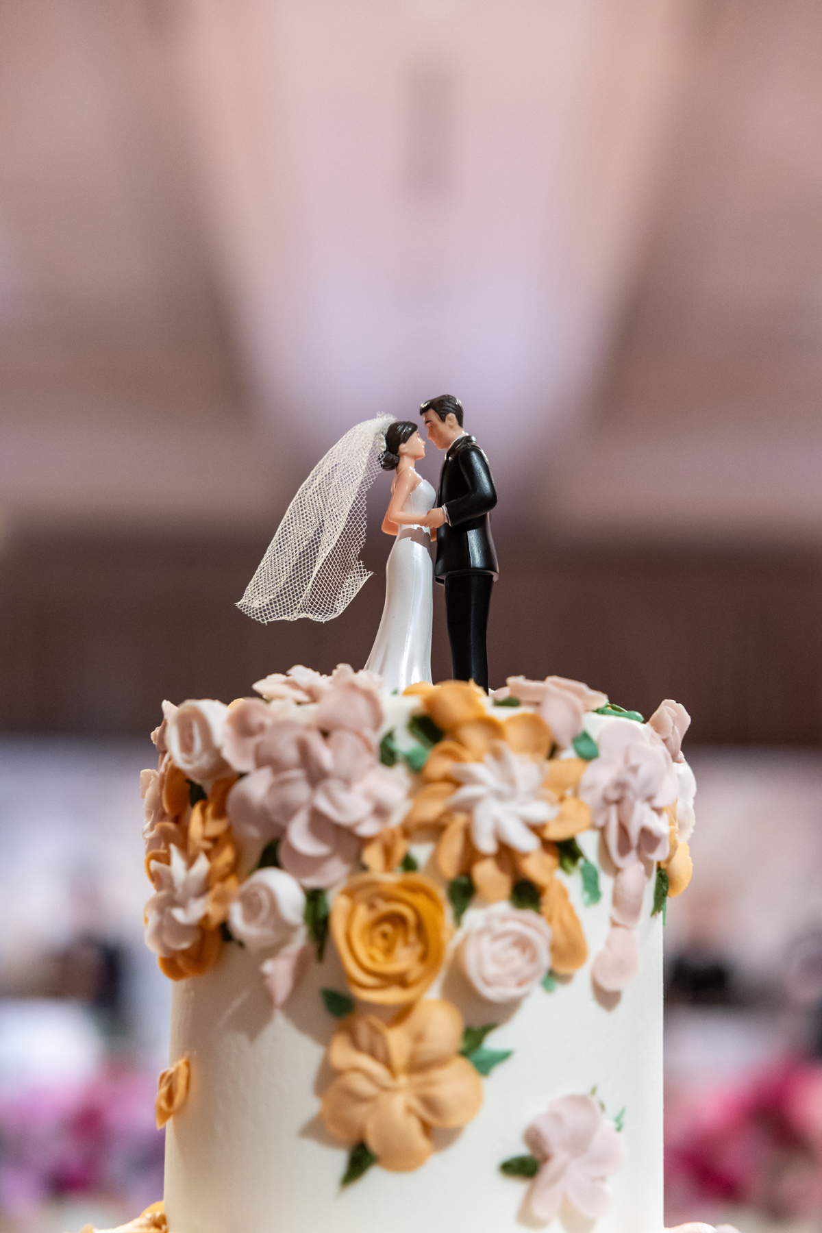 Every detail of the day carried personal meaning, starting with Helen’s wedding attire. Her “something old” was her wedding band, lovingly handmade by Eli himself. In the weeks leading up to their wedding, he melted down scrap platinum in their garage, incorporating the original setting from his mother’s engagement ring. Her “something new” was a custom Monique Lhuillier gown, inspired by elements from several designs she loved across the collection. The couple borrowed their cake-cutting set from Eli’s parents, while Helen’s mother, dressed in a stunning blue gown, became her “something blue.”