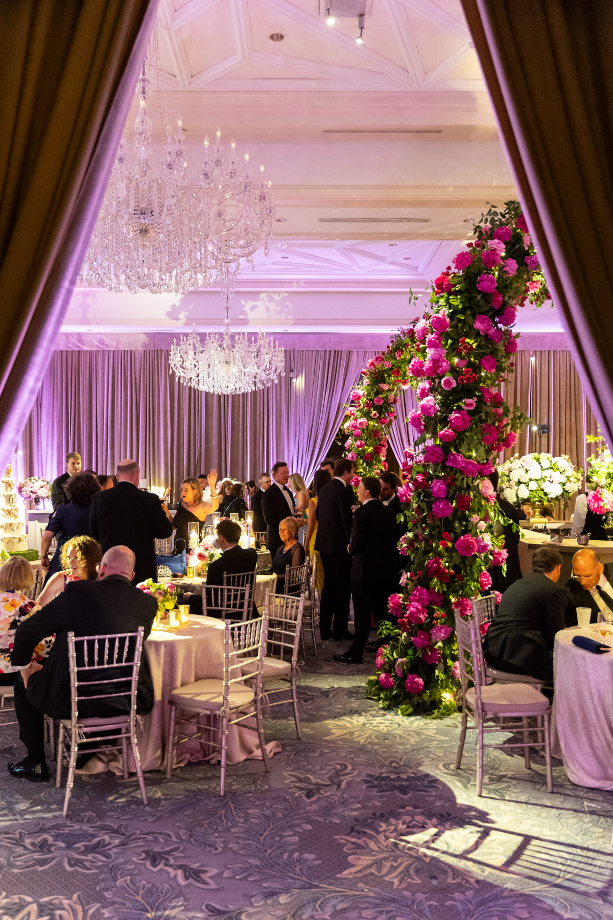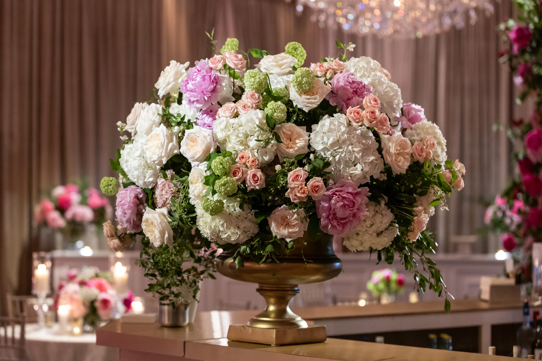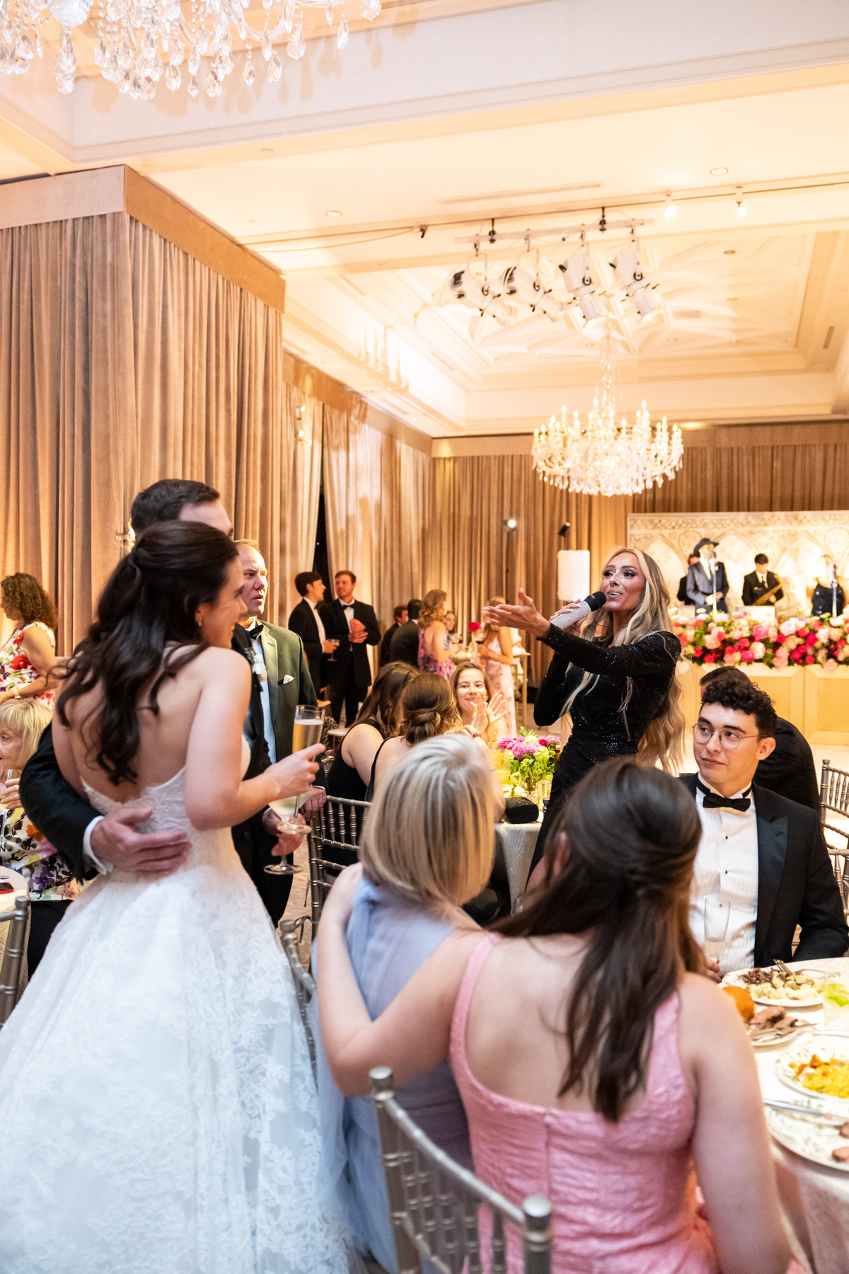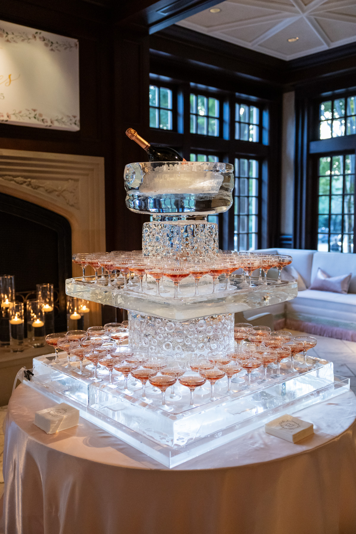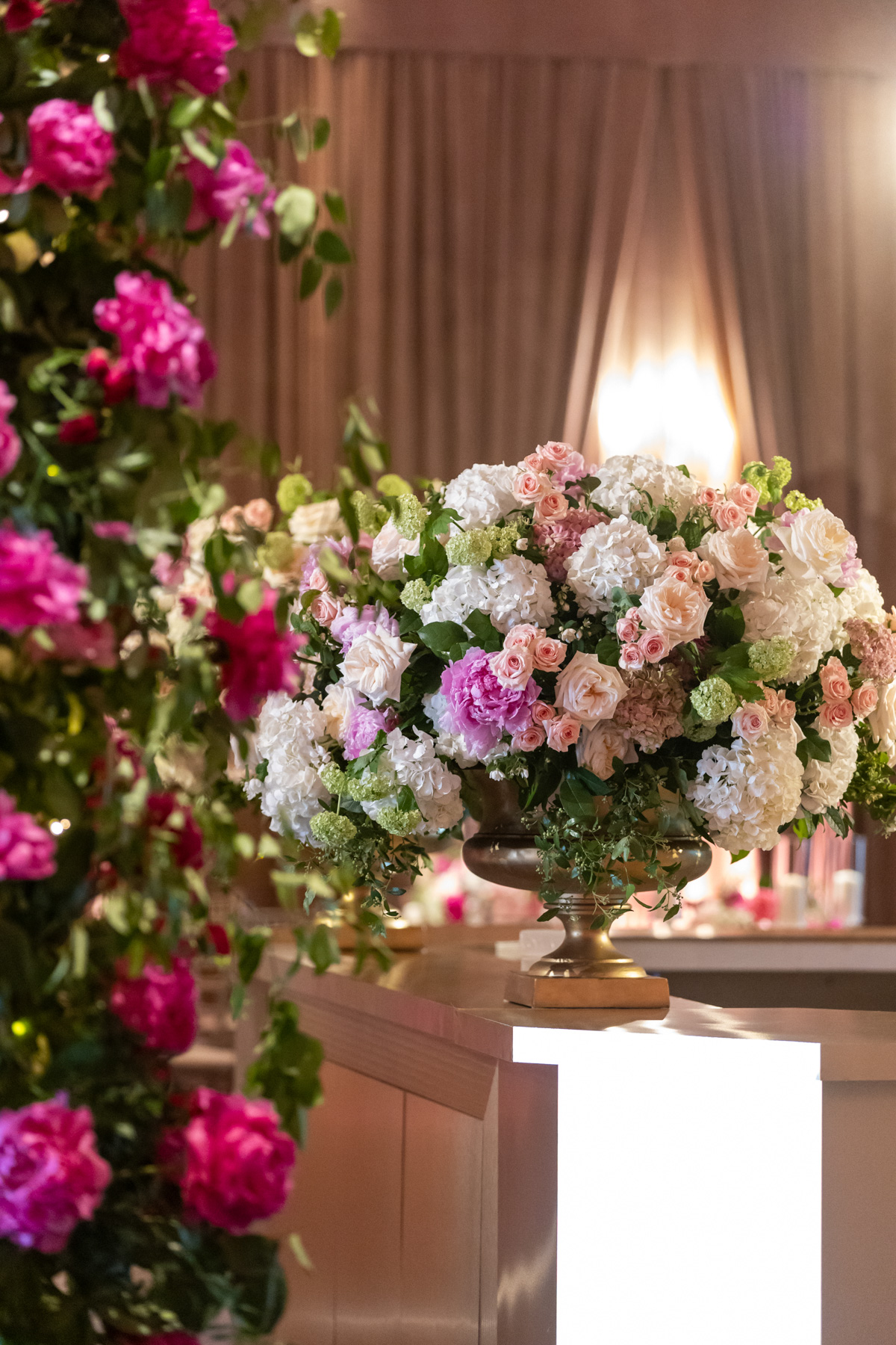 Helen and Eli also infused their love story into the design in unexpected ways. One of Helen’s favorite elements was the band backdrop, which she personally sketched to mirror the cloister at Mont-Saint-Michel, the breathtaking French abbey where Eli proposed. The architectural motif became a subtle yet striking focal point of the reception, weaving their engagement story into the heart of their celebration.