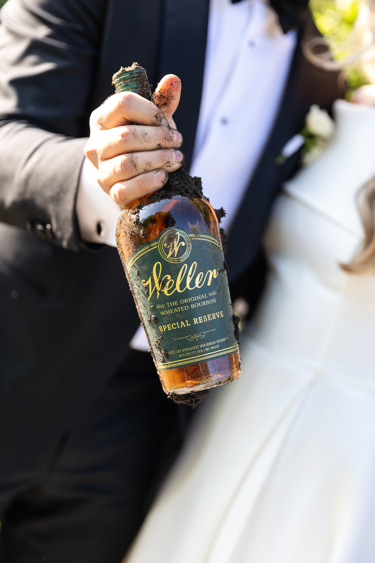A few years later, Ford proposed during a weekend trip to Buffalo Trace Distillery, a nod to their shared love of whiskey and the memory of their first old-fashioned together. He arranged a private overlook tour, where he got down on one knee surrounded by sweeping views of the distillery grounds. Jessica and Ford then buried a bottle of bourbon on-site following the Southern “bury the bourbon” tradition, honoring both their engagement story and Ford’s love of whiskey.