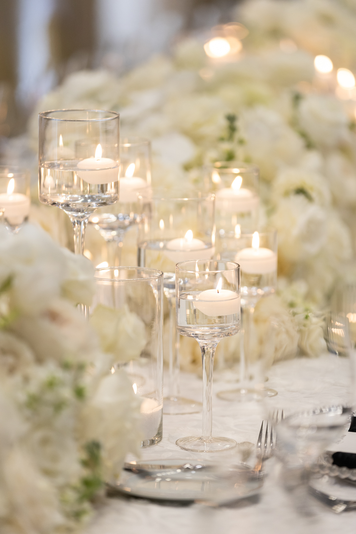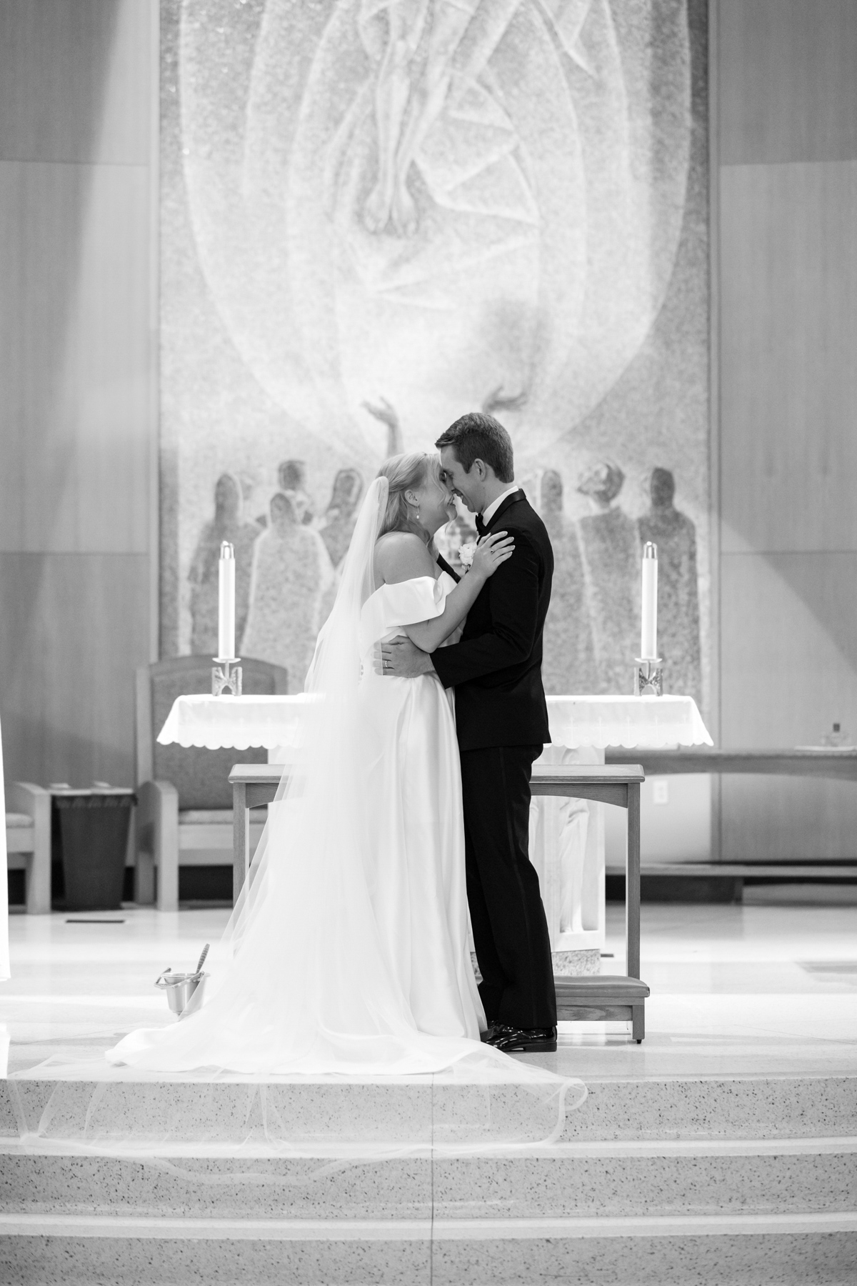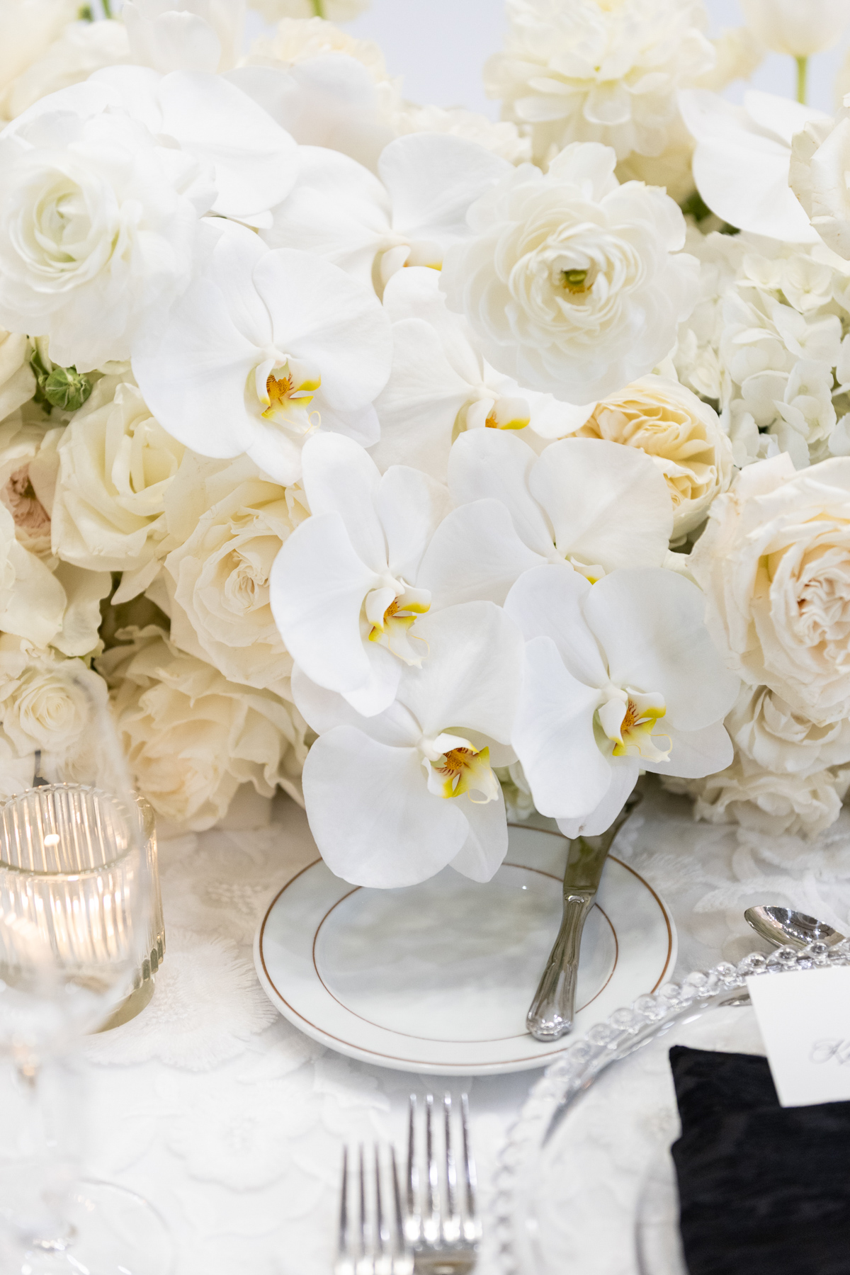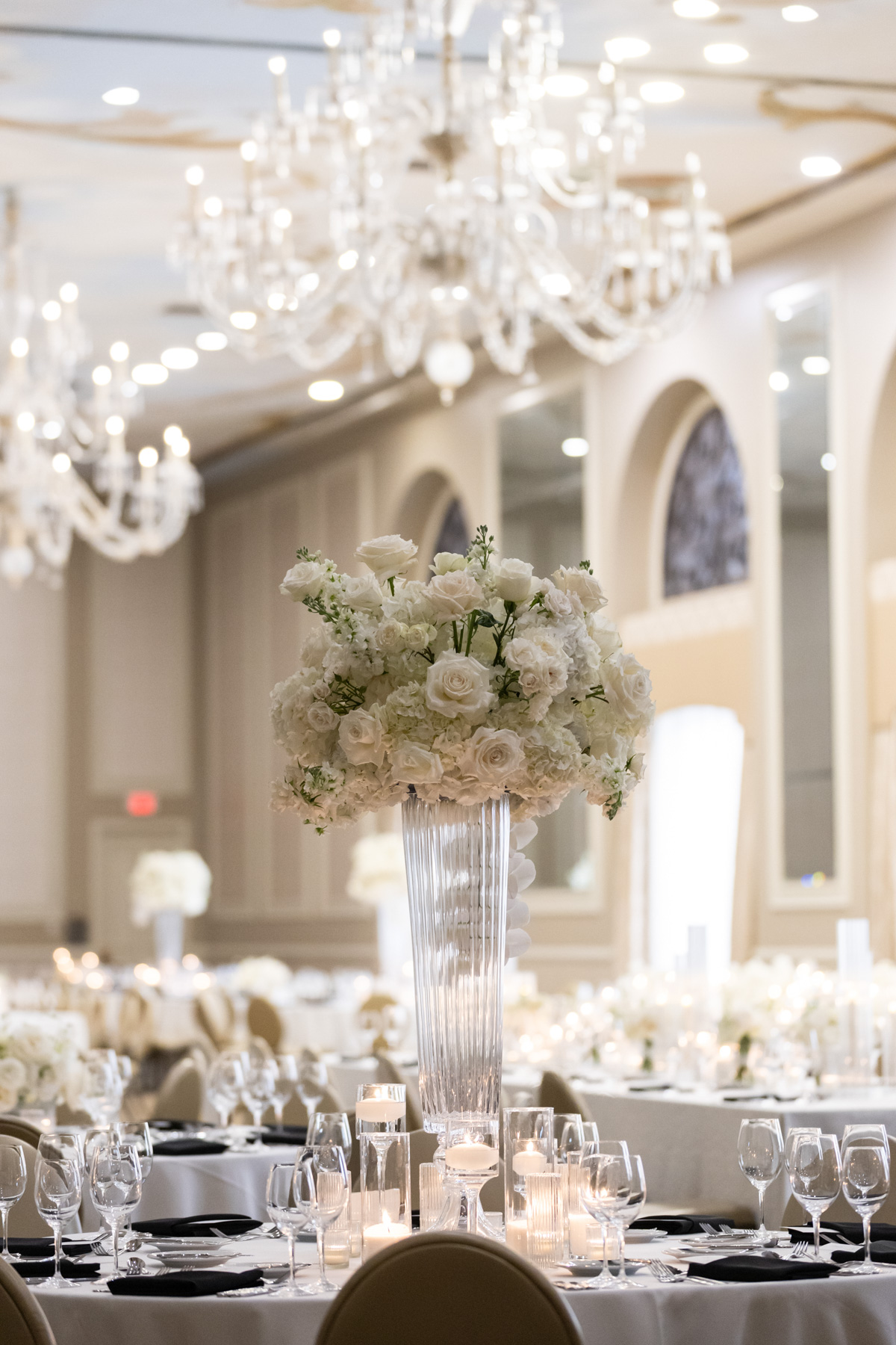 When it came to design, Kaitlyn embraced a classic black-and-white palette with soft candlelight and lush white florals. Though she considered incorporating her favorite color, blue, she ultimately leaned into timeless simplicity. Her bridesmaids, dressed in sleek black gowns, looked effortlessly elegant against the backdrop of The Adolphus ballroom.