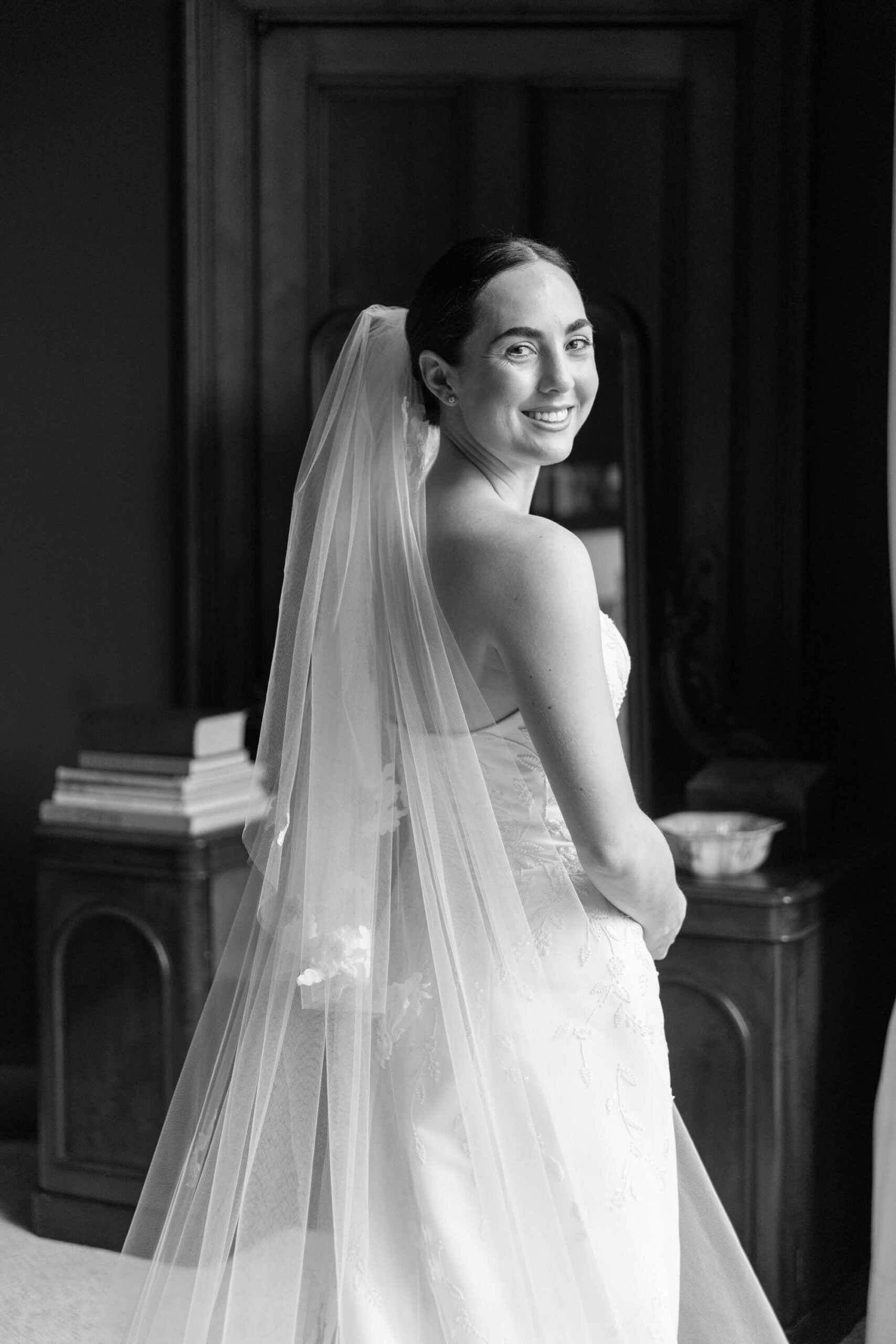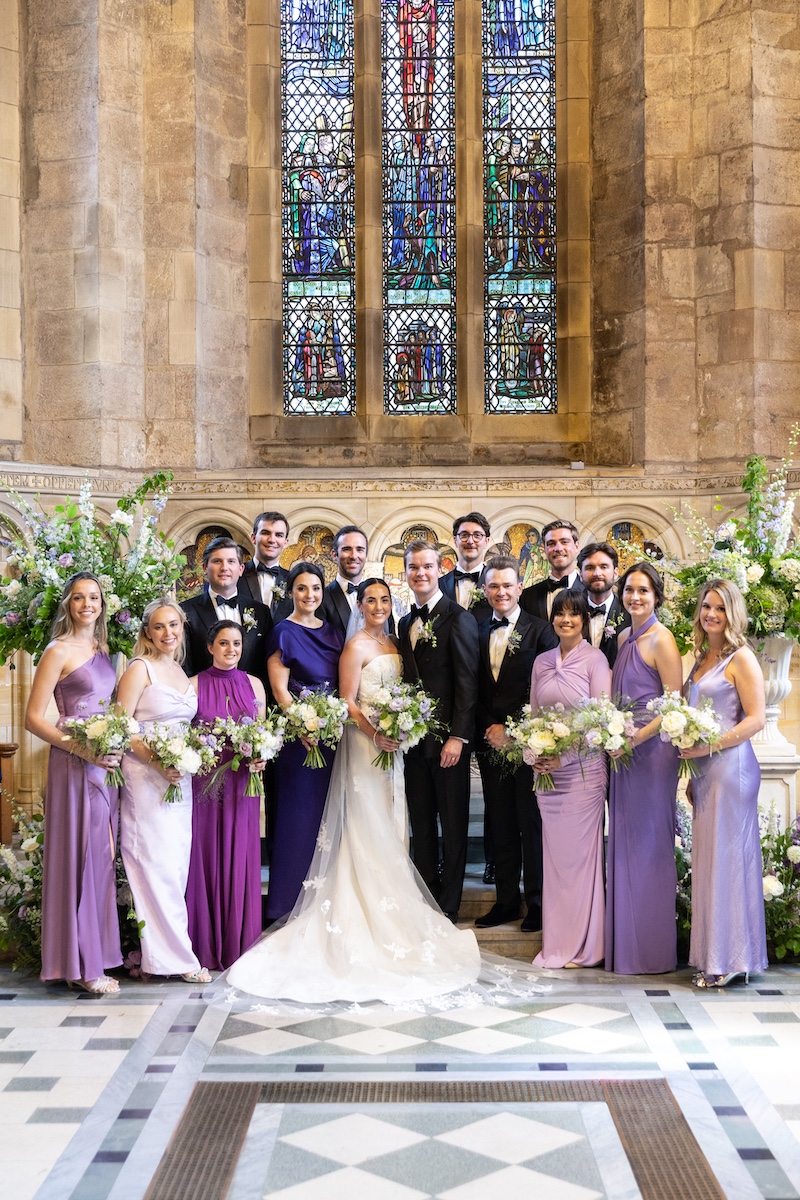 The couple began their day in the ancient St. Salvator’s Chapel at the University of St. Andrews, Laura Catherine’s alma mater. Beneath soaring Gothic arches and the golden glow of candlelight, Laura Catherine walked the aisle wearing her sister’s veil and grandmothers pearl bracelet. Here, modern love found its place among centuries of tradition, a reverent nod to history and the places that have shaped them.
