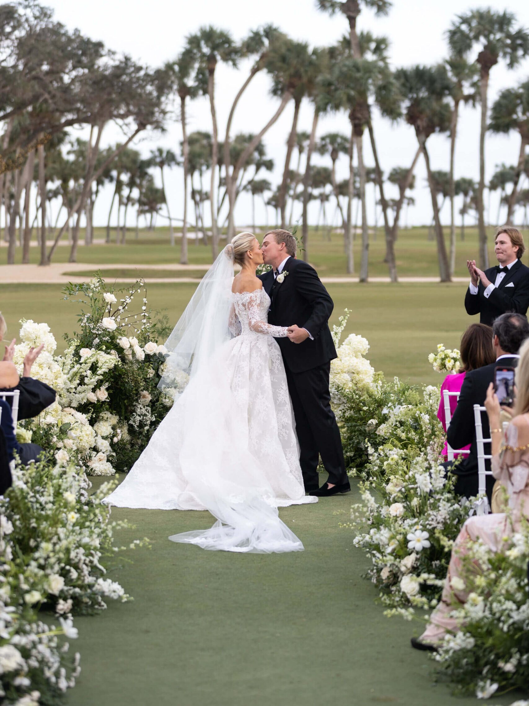 Lauren and Tommy’s wedding at Riomar Country Club in Florida was the culmination of a love story that began in high school. The couple dated on and off through college before moving to Charleston together, where he proposed at the tree house on his family’s grapefruit grove, the same spot where his parents got engaged.