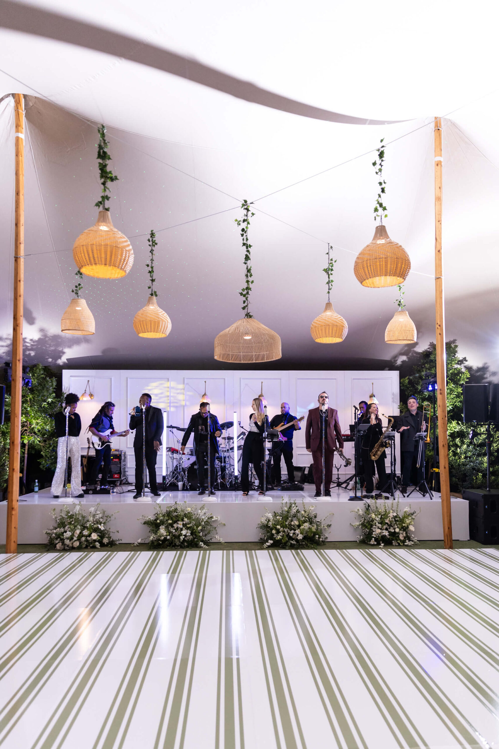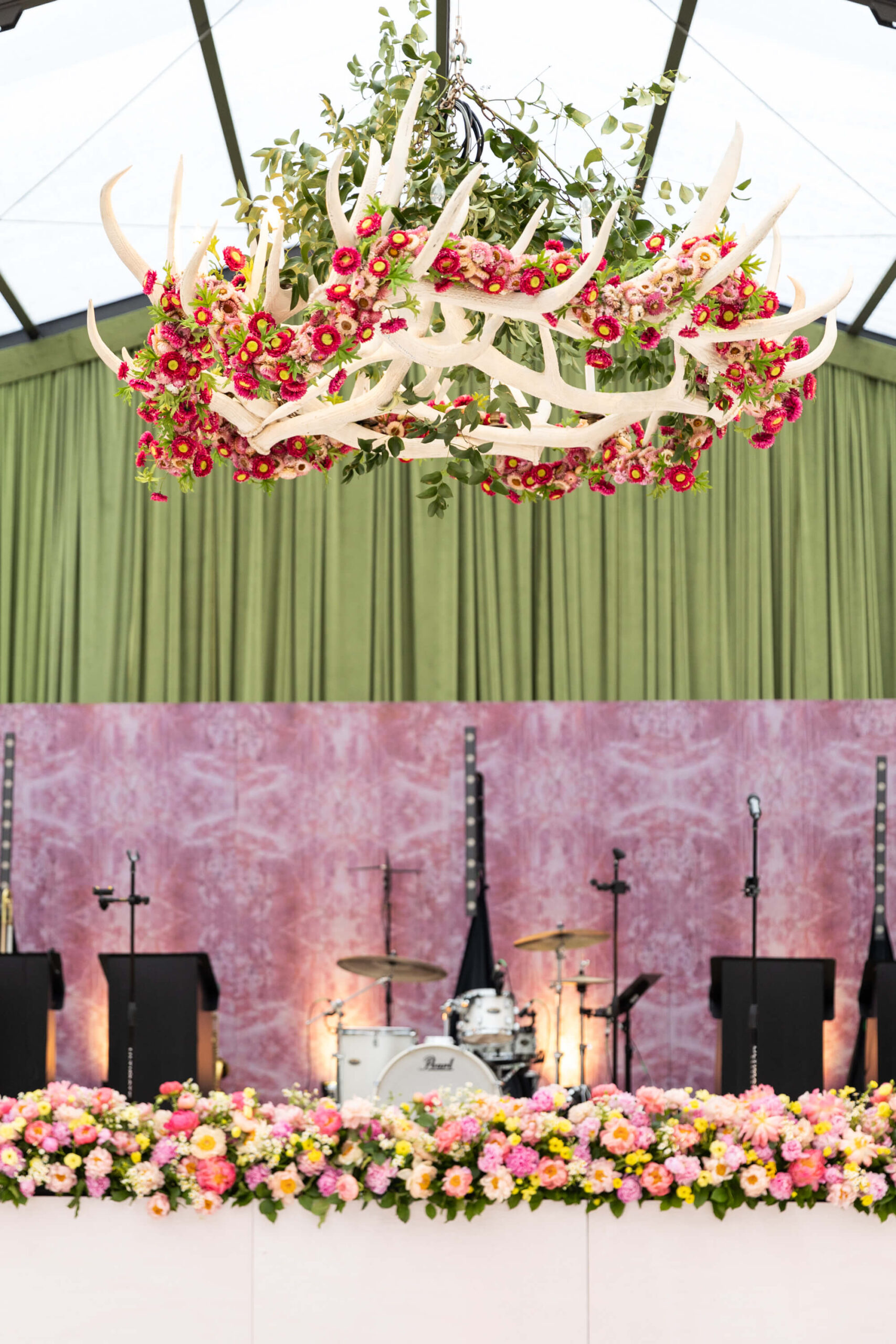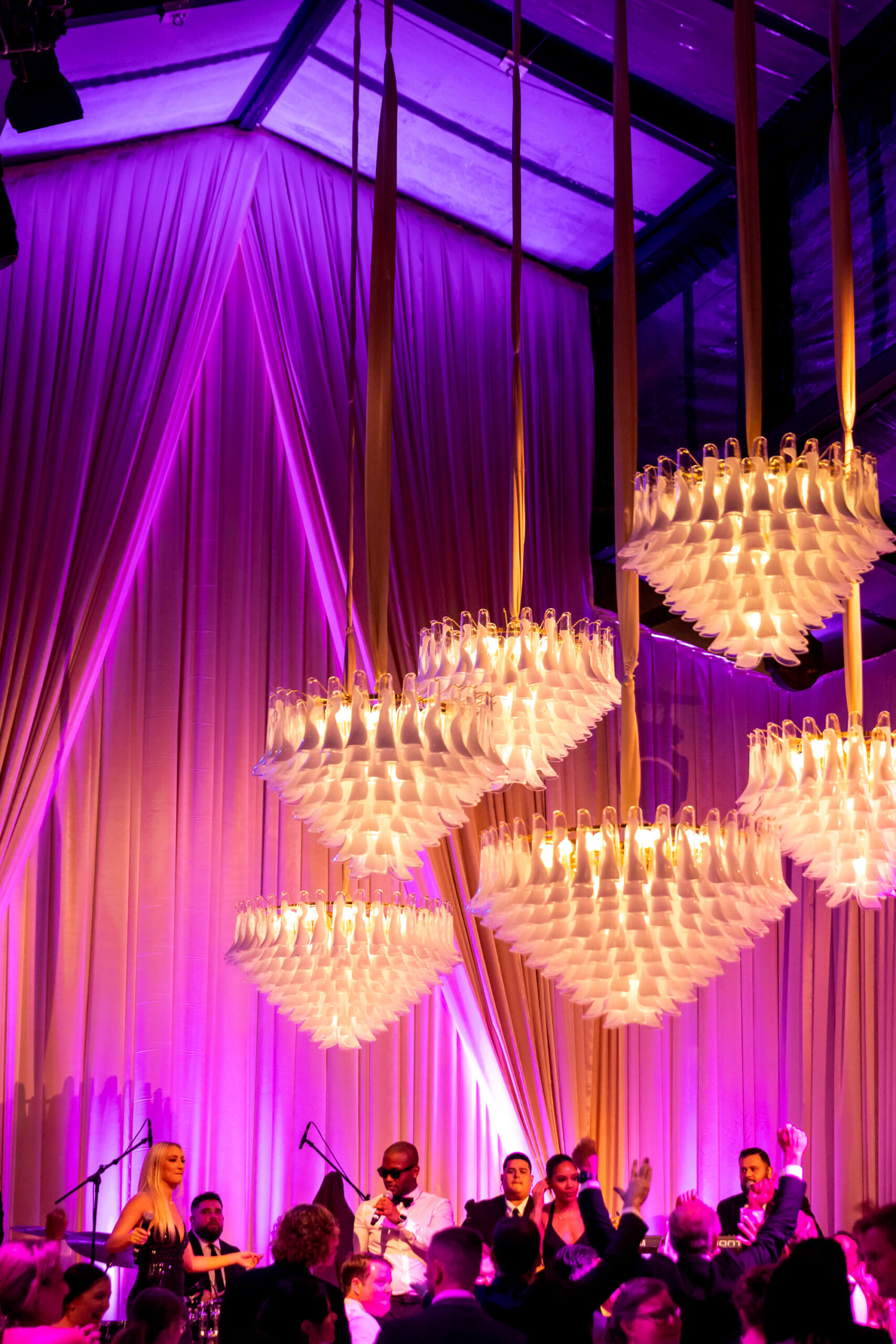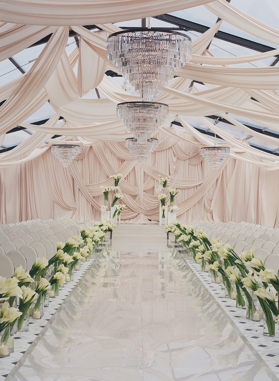 Chandeliers have become far more than classic ceiling décor, they’re sculptural centerpieces. Crystal tiers bring timeless romance, while modern, minimalist silhouettes strike a sleek, editorial note. Suspended over a dance floor, clustered above long dinner tables, or dripping with greenery in a tent, chandeliers instantly add luxury and dimension to a space.