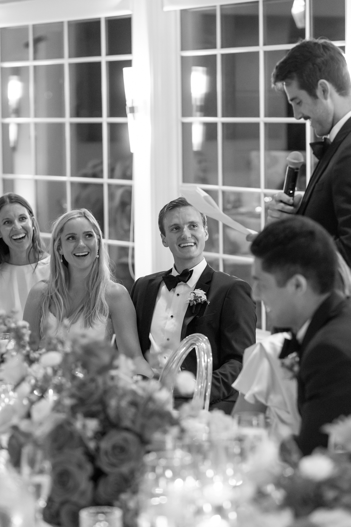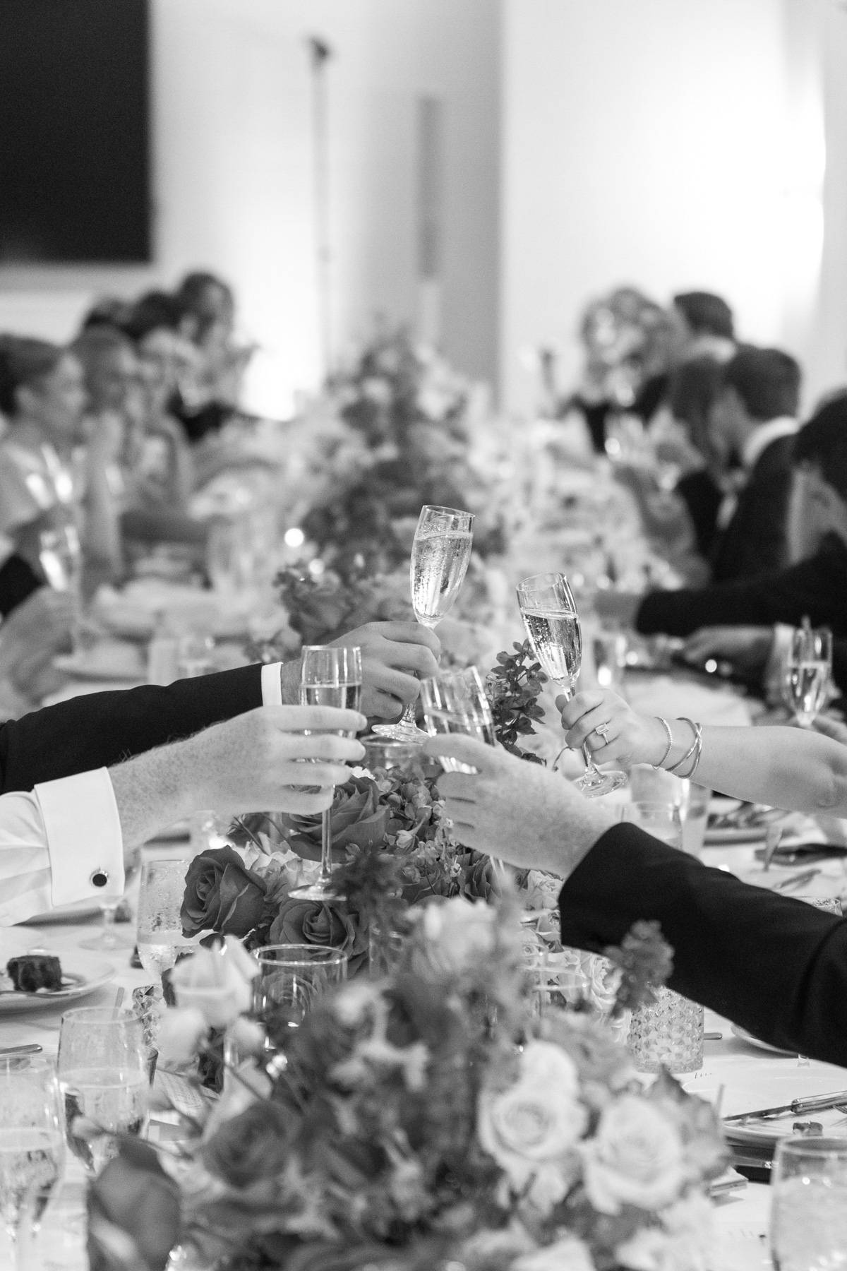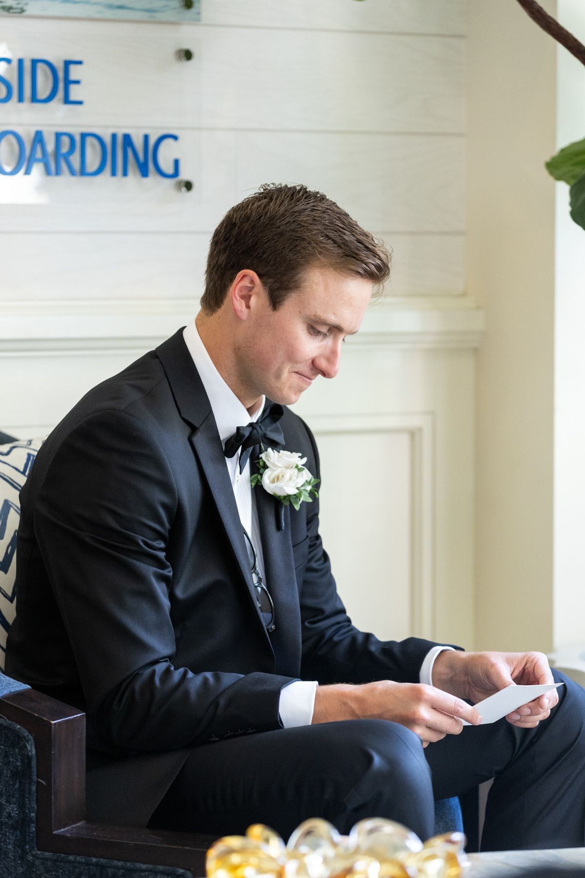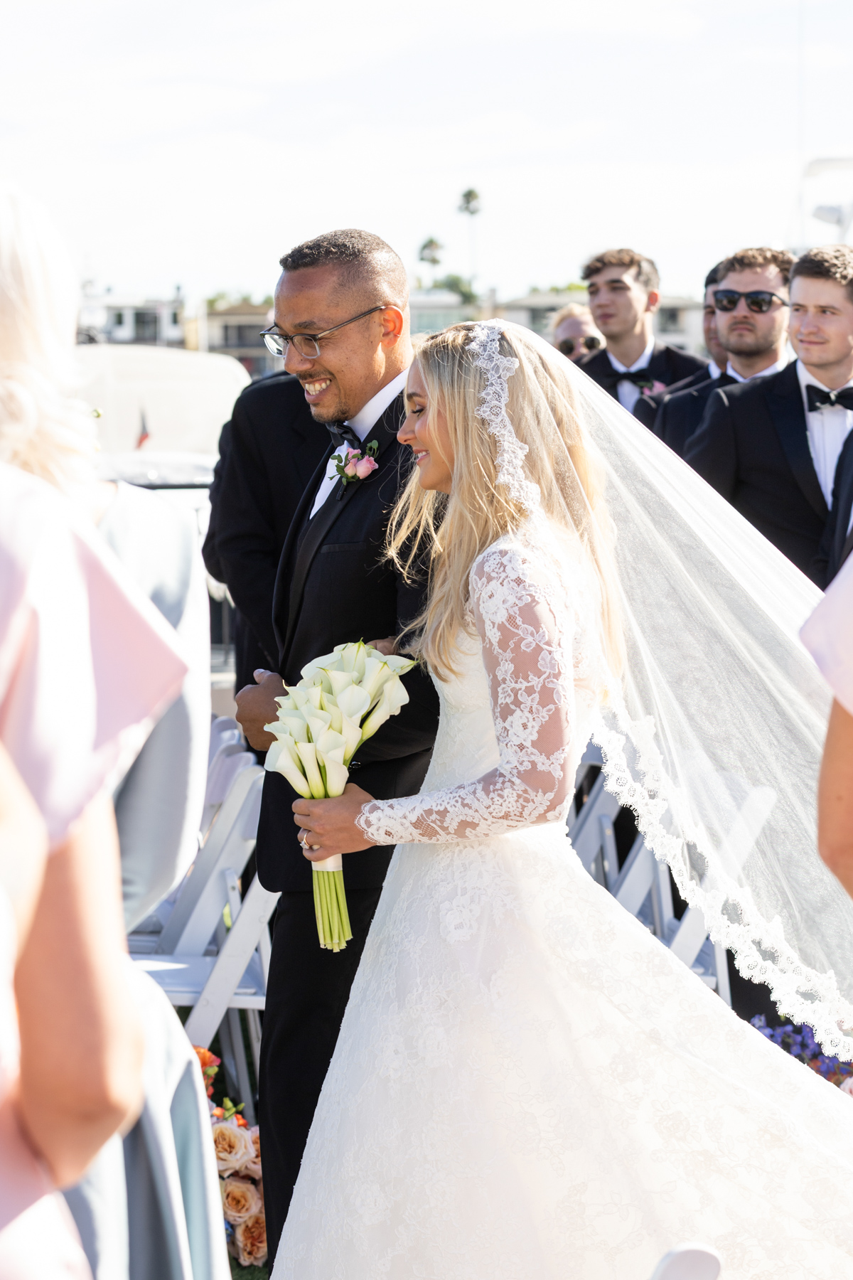 The wedding weekend was filled with intentional moments. The rehearsal dinner welcomed more than 100 guests overlooking the bay, where friends and family shared heartfelt speeches that left the couple feeling deeply loved and supported. The next day, their ceremony was a powerful hour and fifteen minutes of worship, communion, and vows: a true reflection of the couple’s heart for God. As their friends led worship, the music spilled out over the bay, with boats pulling up just to listen, creating an unforgettable atmosphere of joy and reverence.