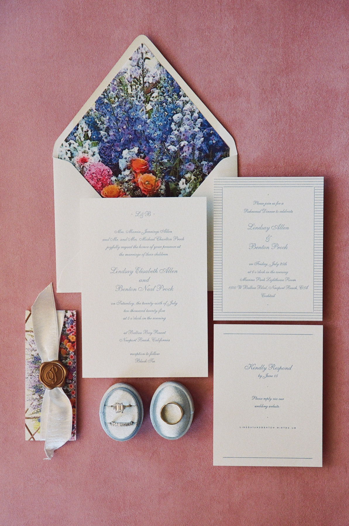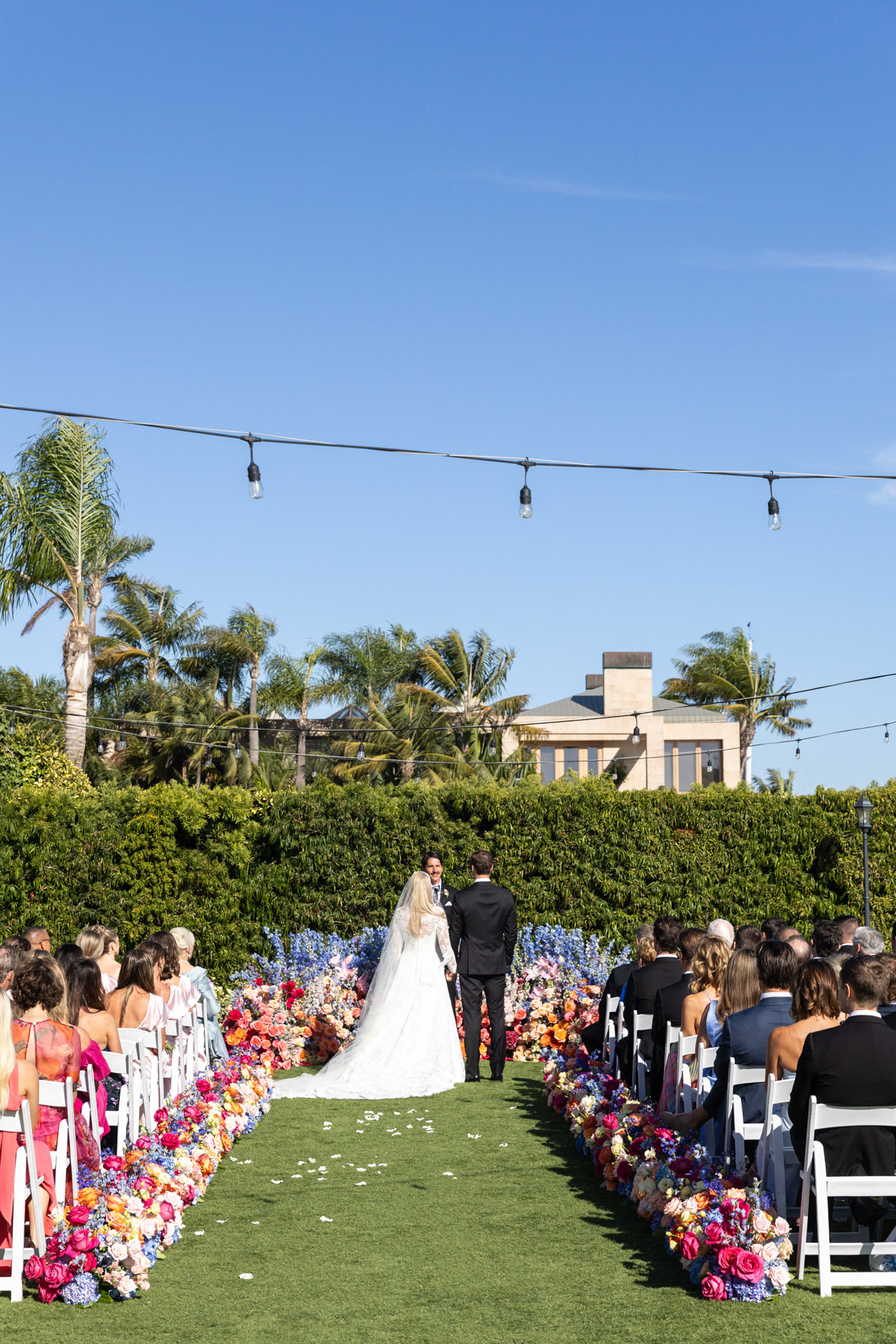 Within months of Lindsay and Benton reconnecting they knew they had found their forever. From the start of planning, Lindsay and Benton dreamed of a wedding that reflected not only their love for one another, but also their faith. They chose the Balboa Bay Resort in Newport Beach, with its stunning views of the water, as the perfect backdrop for their colorful, joy-filled celebration. Lindsay found her gown at Stanley Korshak, a timeless Carolina Castigliano design that felt like it was made just for her. To make it even more special, while on a trip to London she unexpectedly met the designer herself, who helped her choose a second dress for her rehearsal dinner.