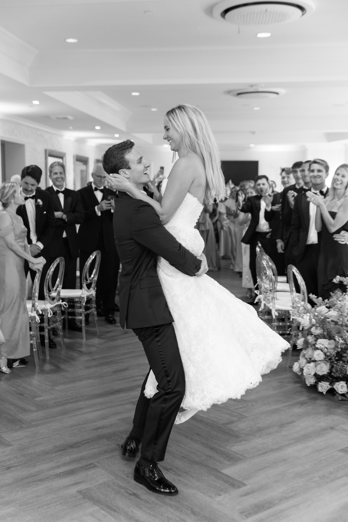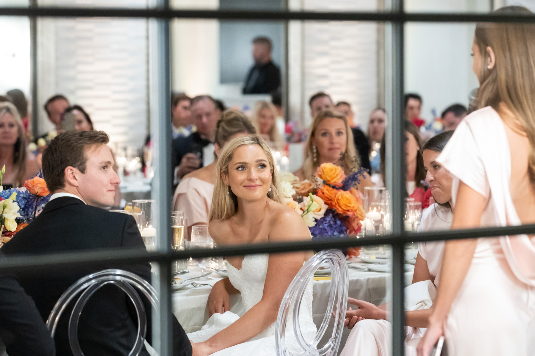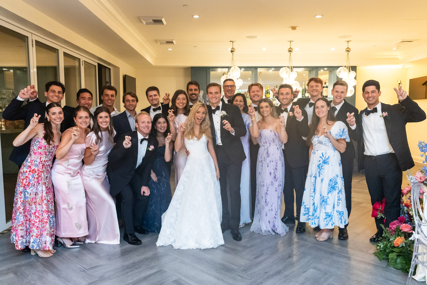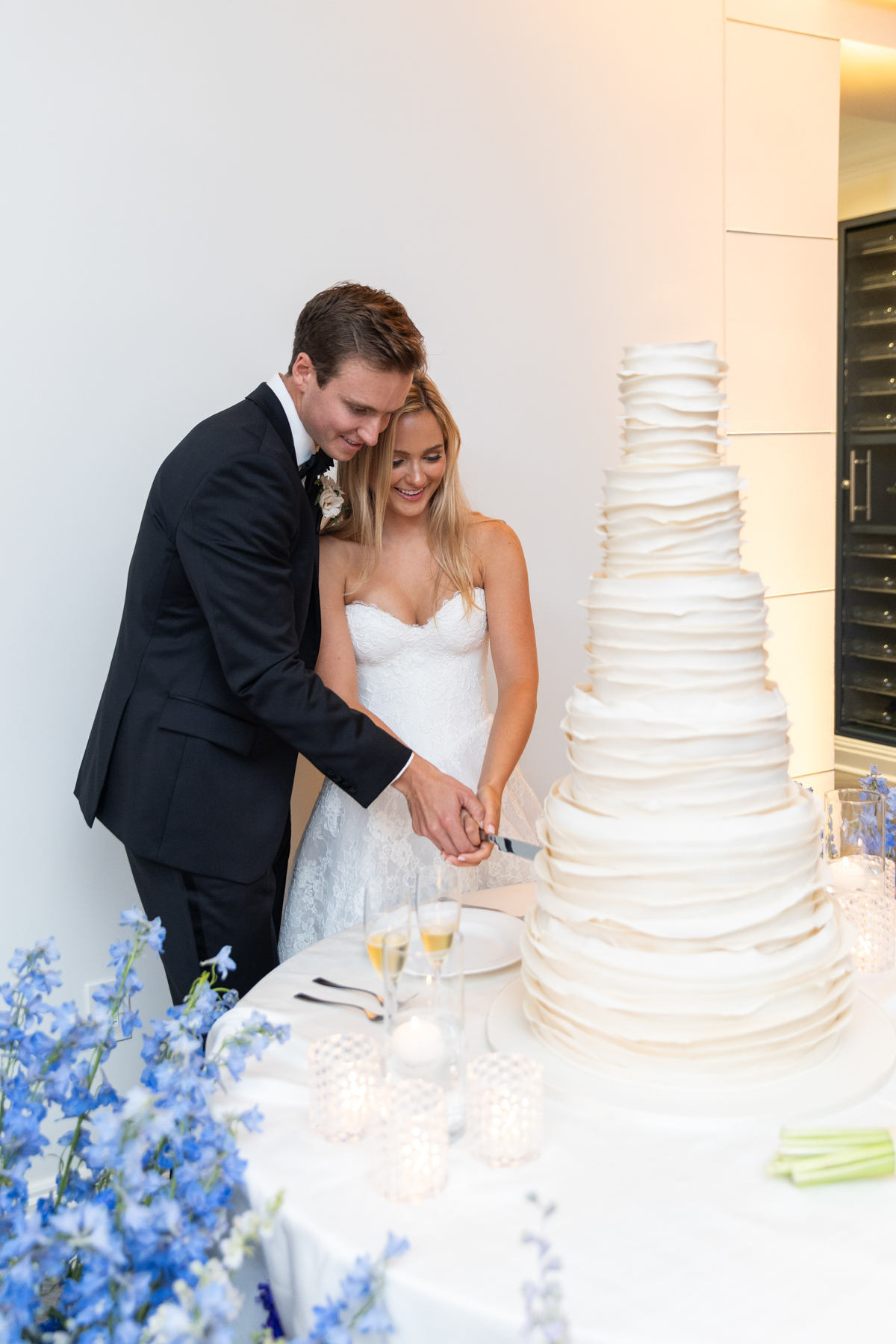 The reception carried the same spirit of celebration. Guests were welcomed with a stunning floral design that transformed the room into a vibrant garden by the water. Benton and Lindsay shared a choreographed first dance he designed just for them, filling the room with laughter and joy. The evening was made complete with a textured cake as beautiful as it was delicious: almond with Bavarian cream and chocolate hazelnut with Oreo cream.