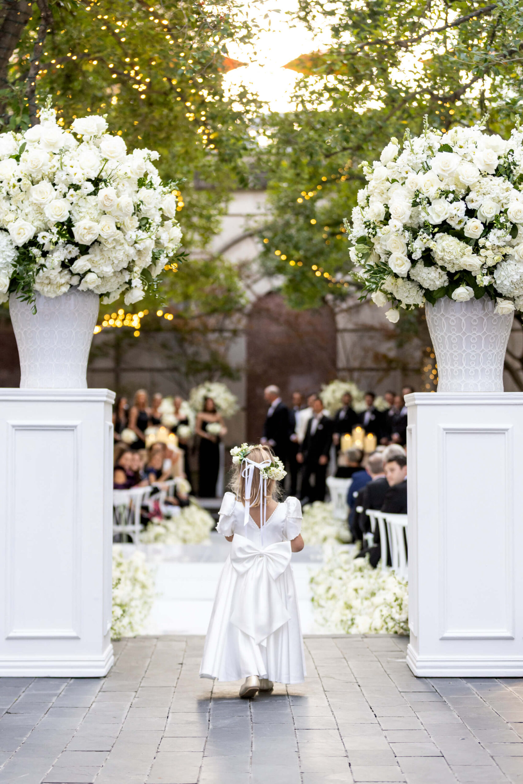 Classic smocked dresses, soft tulle skirts, crisp little suits, velvet jackets, floral headbands, these small sartorial choices add sweetness and sophistication to your processional. Consider subtle nods to your palette through sashes, bow ties, hair ribbons, or shoes for a look that feels intentionally tied to your day.