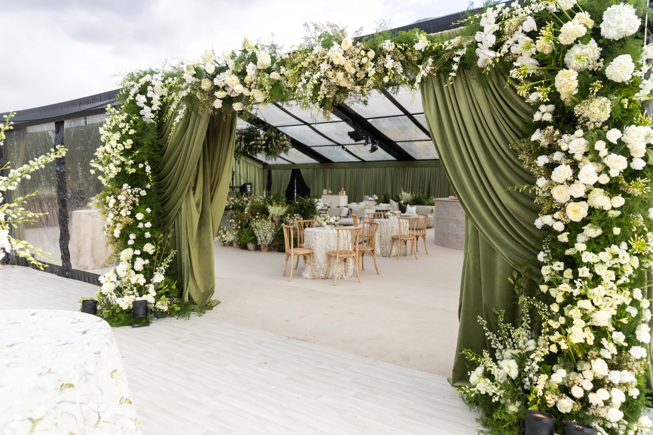 The first impression of the celebration to come, the entrance to your reception tent marks the beginning of the second act of your wedding day. It’s where design, ambiance, and anticipation come together to welcome guests into an evening they’ll never forget.