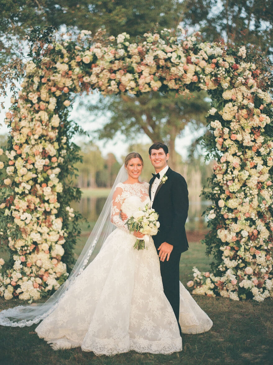 The couple opted to host their wedding on her family’s farm in Canton, MS. Built in 1840, it was a very familiar space, to be filled with many familiar faces. The grandiose nature of this venue was perfectly fitting for Ann Elizabeth’s Monique Lhuillier gown. A strapless ballgown with a long sleeved lace overlay ensured Ann Elizabeth’s bridal look would withstand the test of time, just as their family’s farm would.