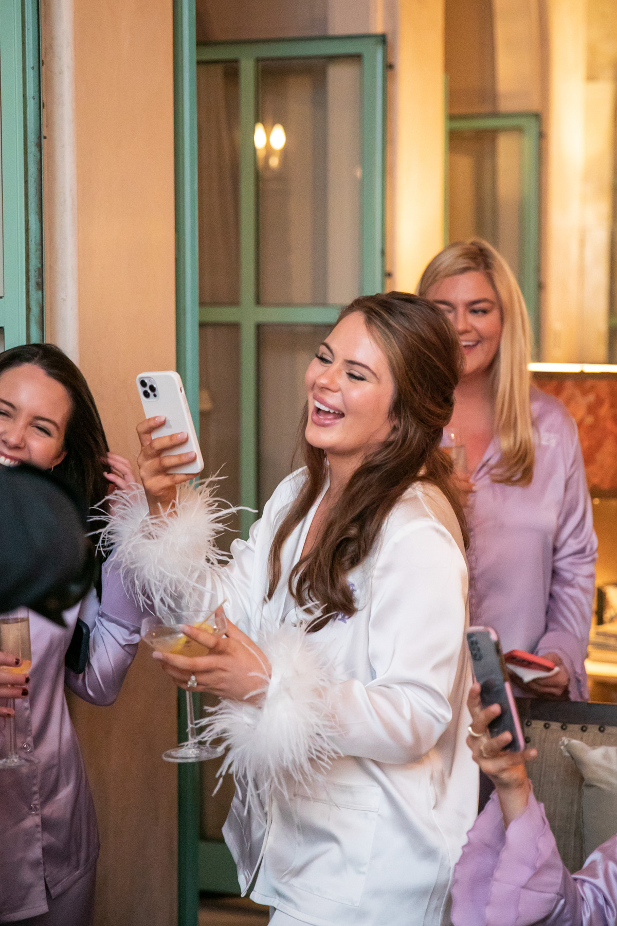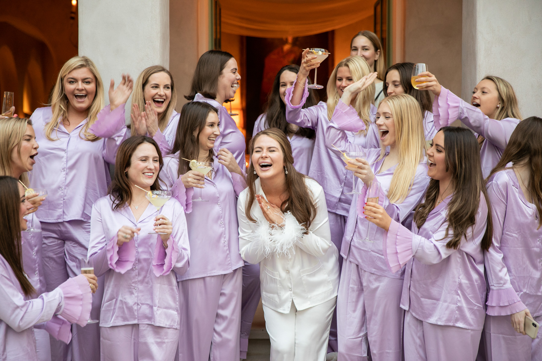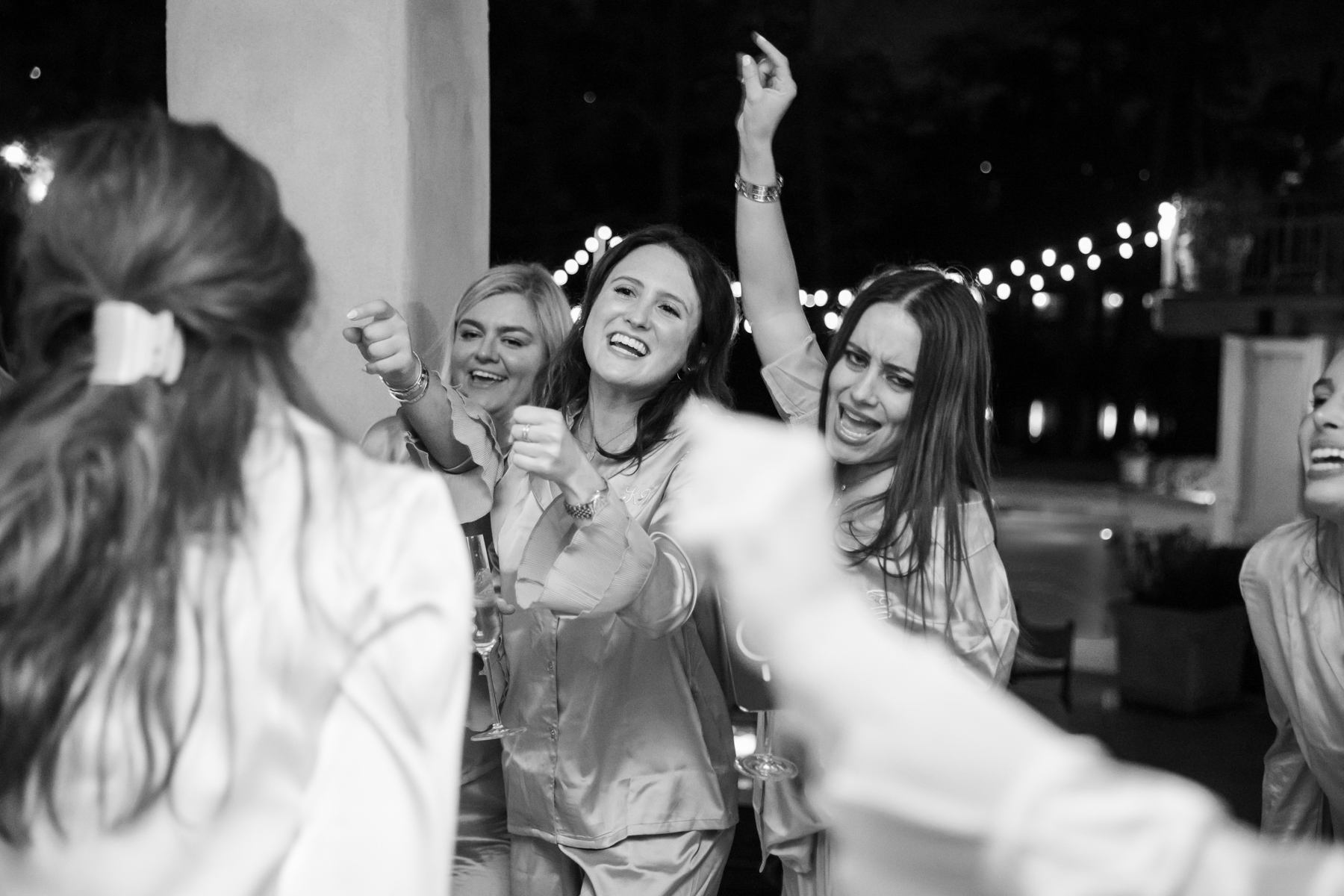 A wedding weekend can feel like one long production, so weaving in moments of spontaneity and joy is what makes it truly memorable. Enter the PJ DJ Party, a slumber‑party turned dance floor for the bridal crew that blends cozy vibes with unexpected flair. For Meredith, it was the perfect, unmistakably “her” way to step into the weekend- relaxed, joyful, and completely unforgettable.