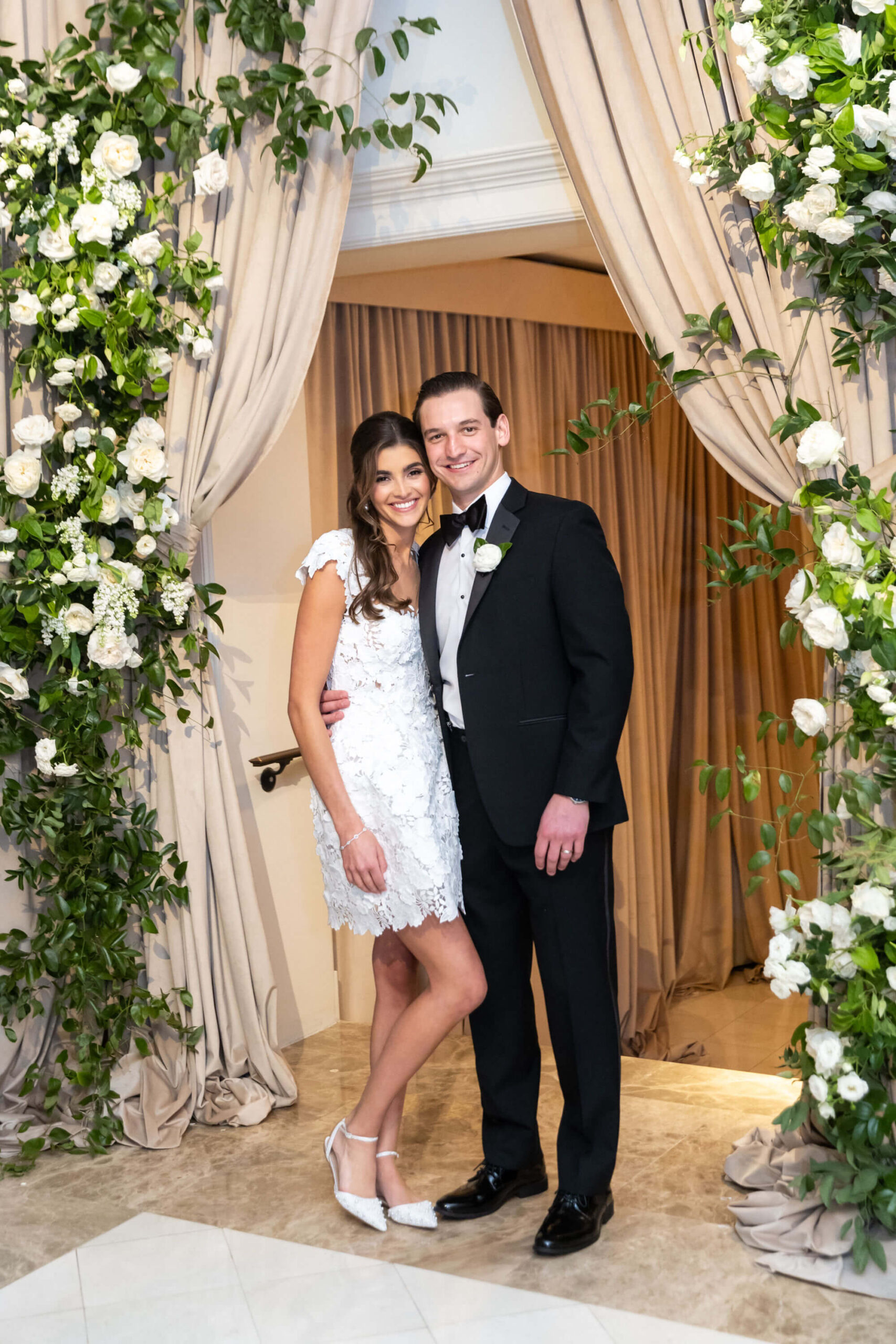 The second look has quickly become a staple in modern wedding style and we’re absolutely here for it. Equal parts practical and playful, the reception dress is where the bride trades in formal ceremony elegance for fashion-forward flair, a dance floor–friendly hemline, and a touch of sparkle that says we’re just getting started. We’ve seen second looks that left us speechless. Sleek silk minis. Feathered fringe. Backless numbers made for twirling. Each one a striking departure from the ceremony gown, yet still perfectly aligned with the bride’s overall vision.