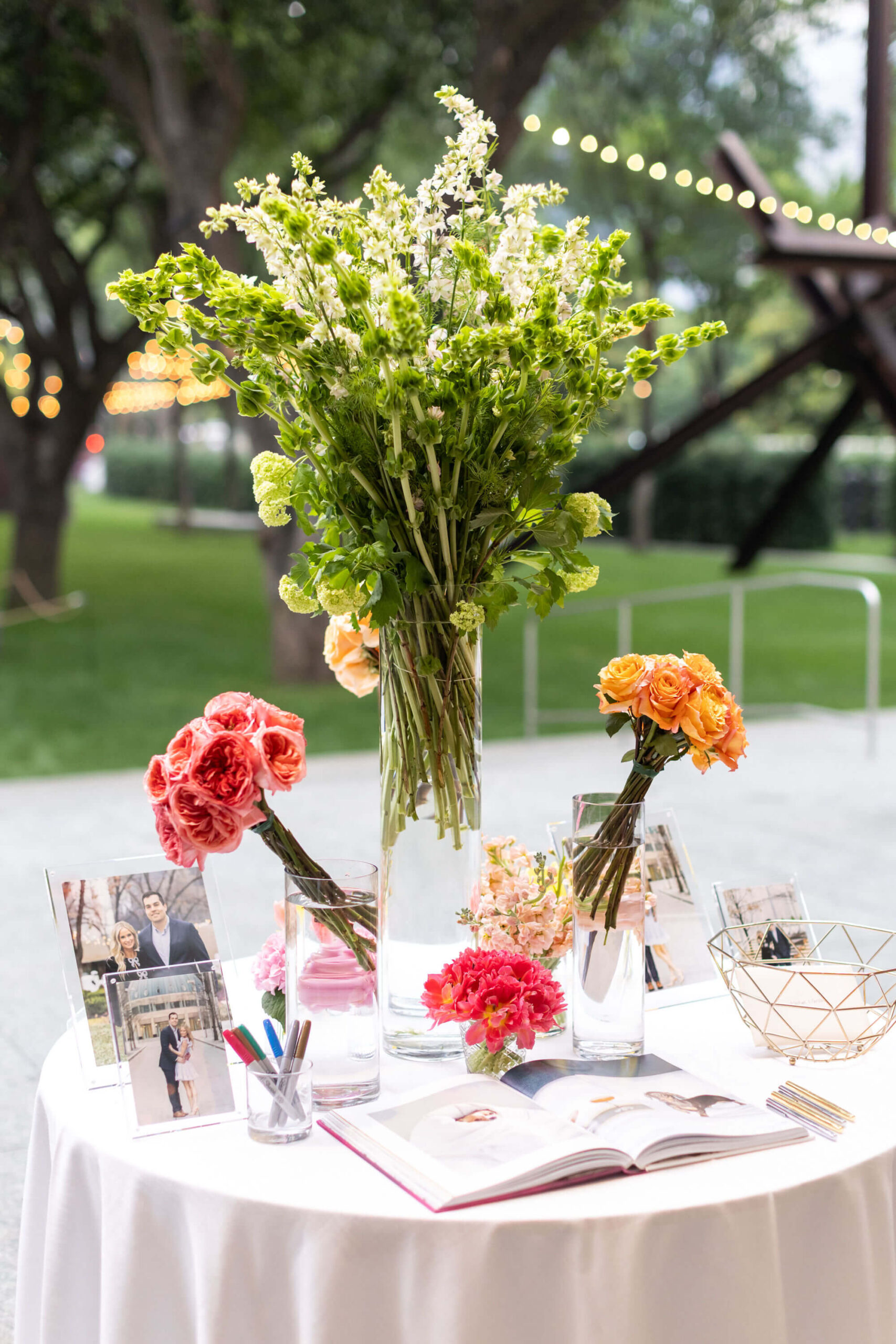 Take your engagement portraits and incorporate them into your guest book for a truly personalized touch. Guests can leave messages next to photos that tell the story of your love, turning the book into a beautiful, lifelong coffee table keepsake you’ll cherish forever. -
