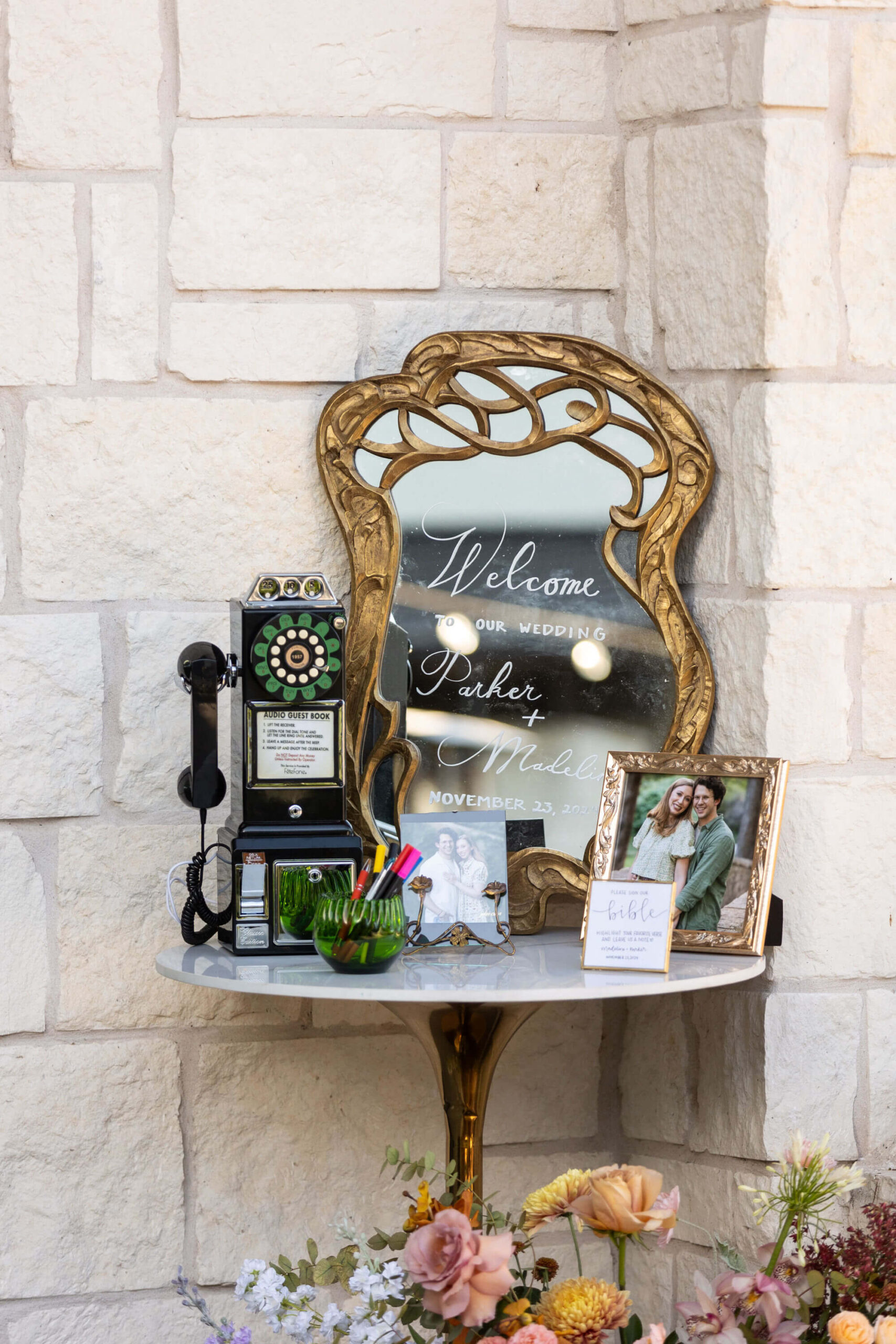 For couples looking for something extra unique, have guests sign a champagne bottle instead. It’s a fun, interactive twist that doubles as a display piece and a memorable memento you can open on a future anniversary. -